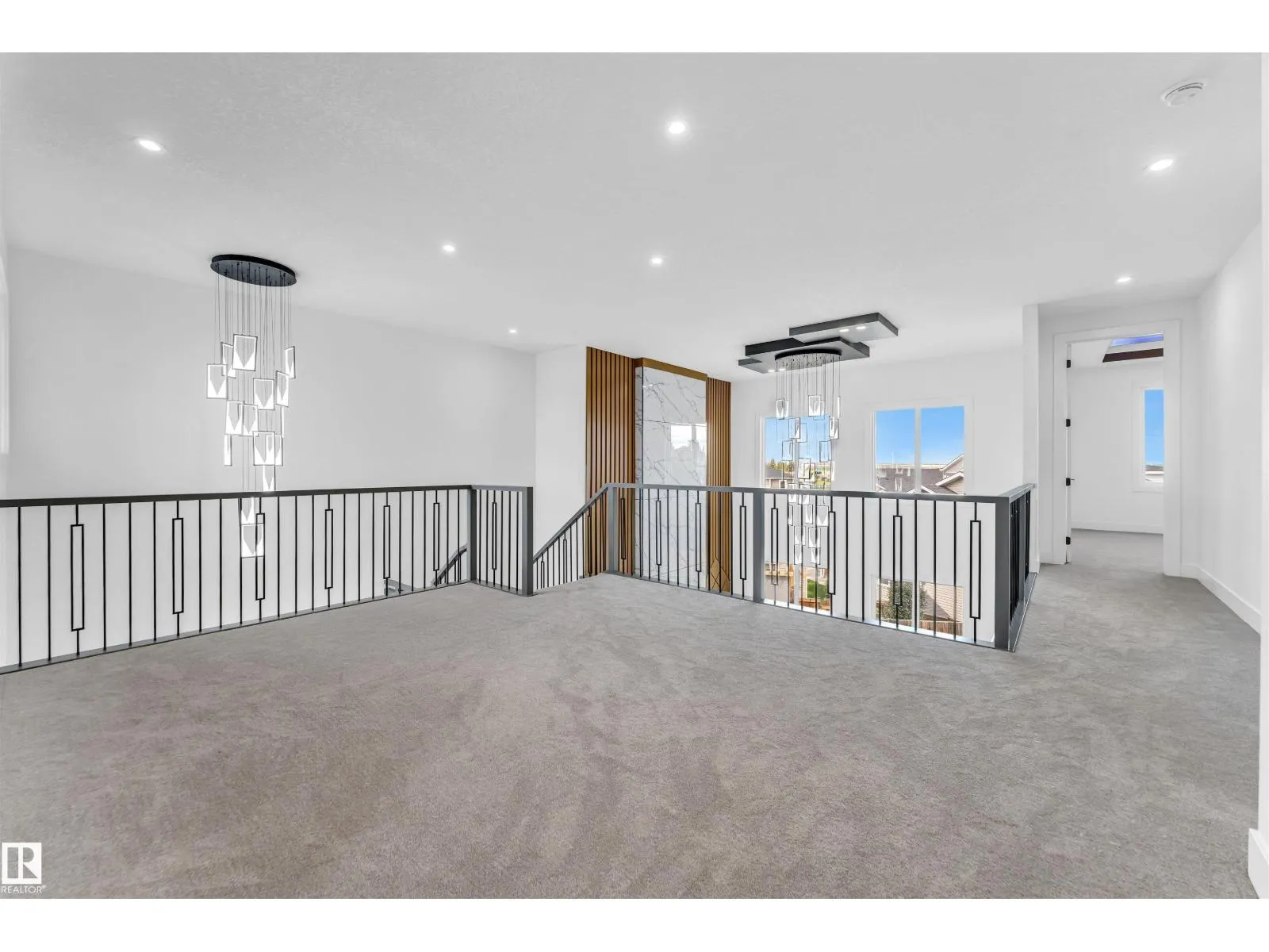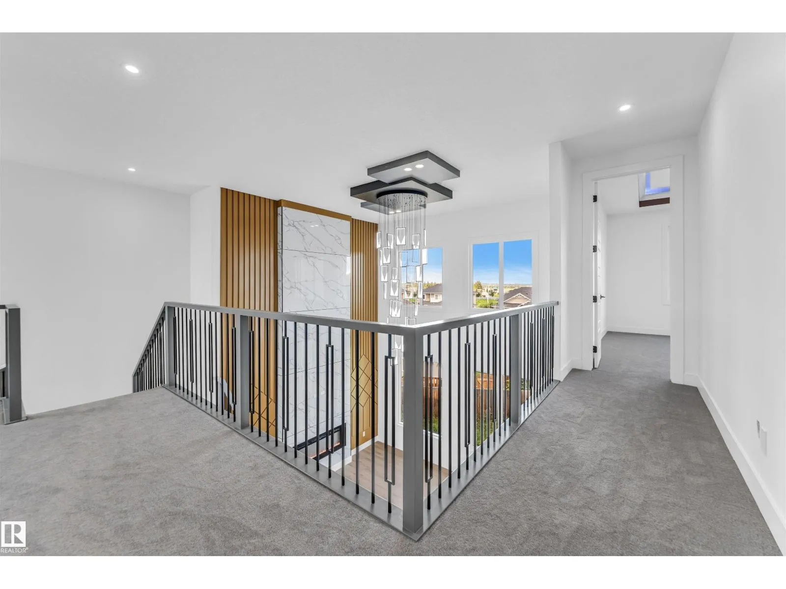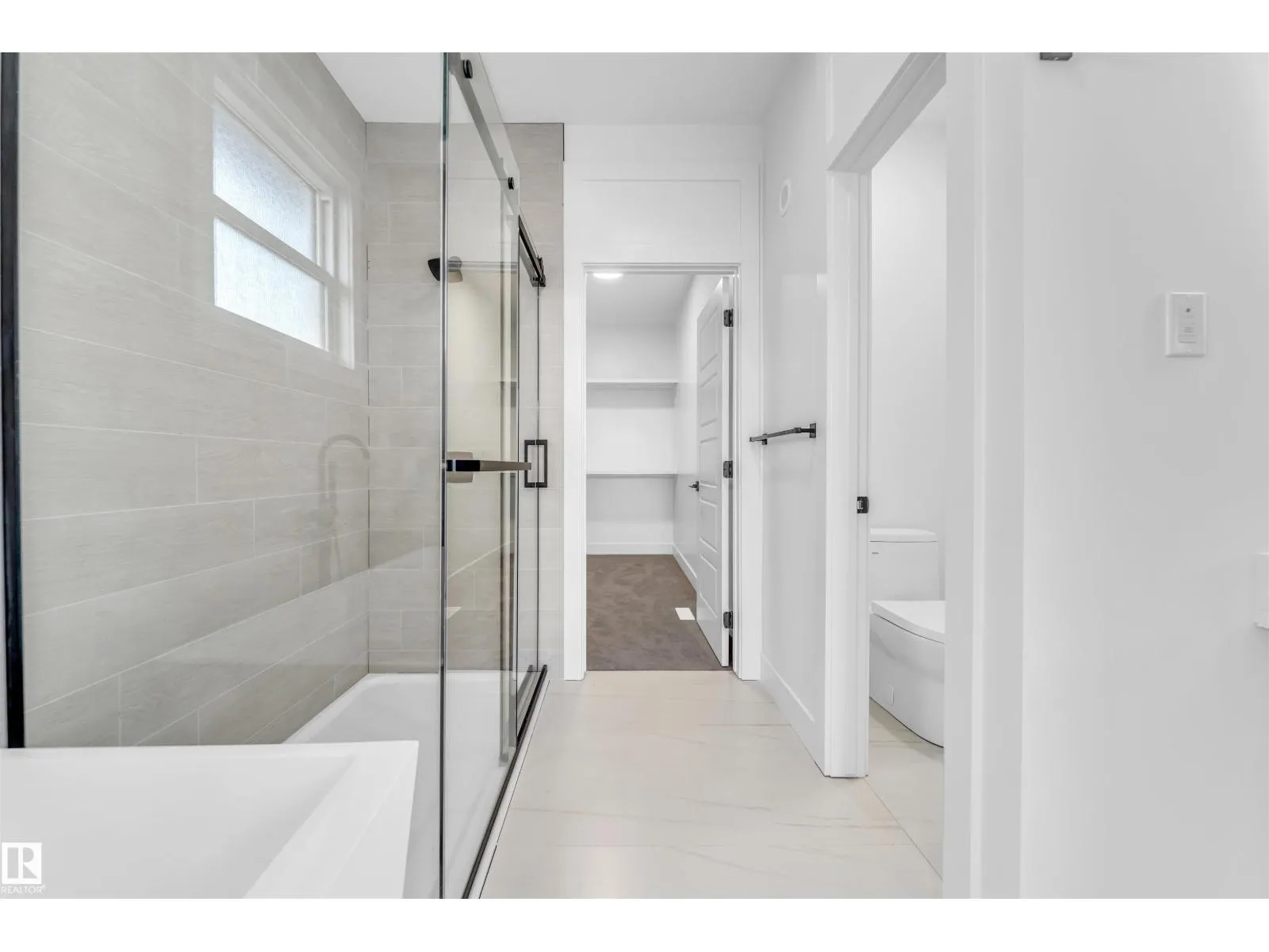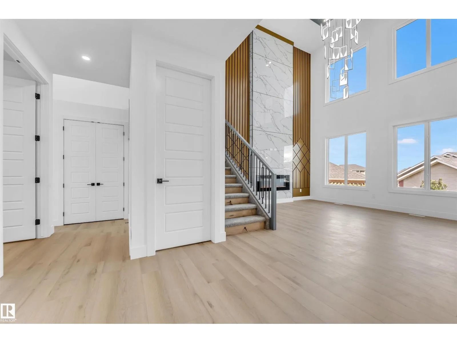 Welcome to this beautifully designed home in Hilldowns, Spruce Grove, featuring a triple-car garage, 5 bedrooms, and 3 full bathrooms, spanning 2,591 sq ft. The main floor offers an open-to-below living room with an electric fireplace, a modern kitchen with a walk-in pantry, a dining area, a main floor den/bedroom, and a full washroom. A spacious mudroom off the garage adds everyday convenience. Upstairs, you'll find 4 large bedrooms. The luxurious Master Bedroom includes a massive walk-in closet and a 5-piece ensuite with a freestanding tub, double vanity, and glass shower. A bonus room, laundry, and another full bathroom complete the upper level. The unfinished basement with a separate side entrance offers great potential for a future suite or rental. (id:27476)