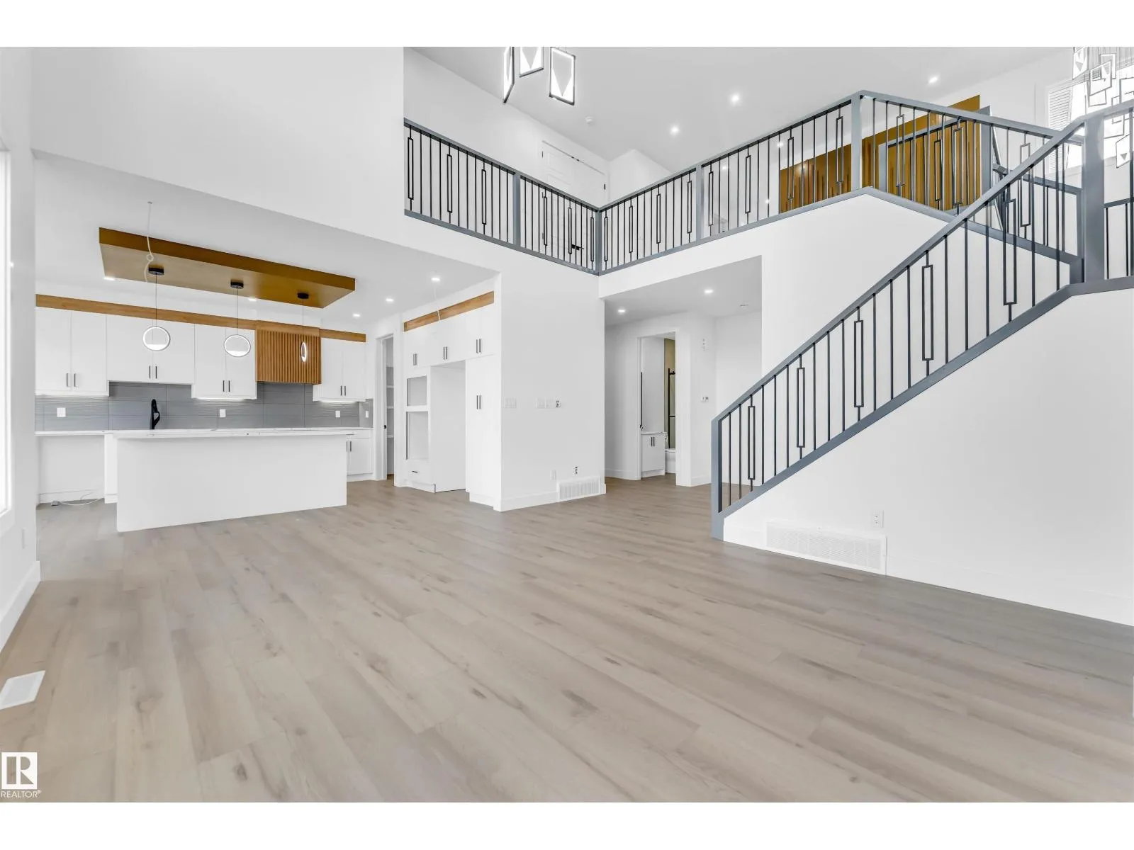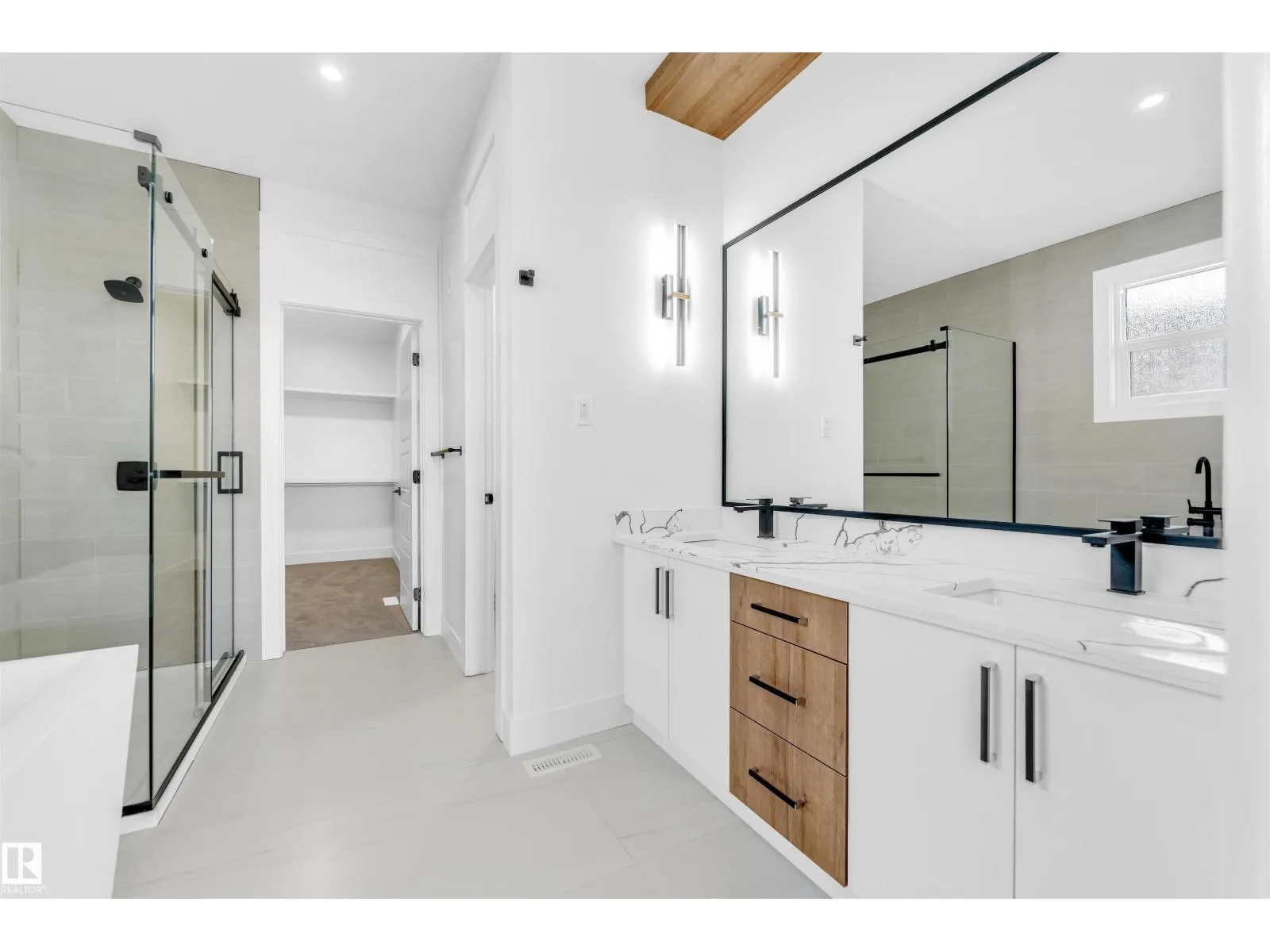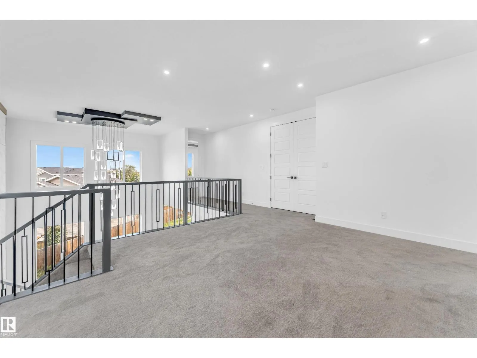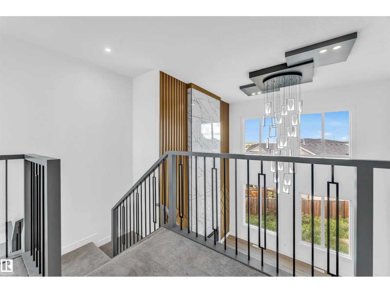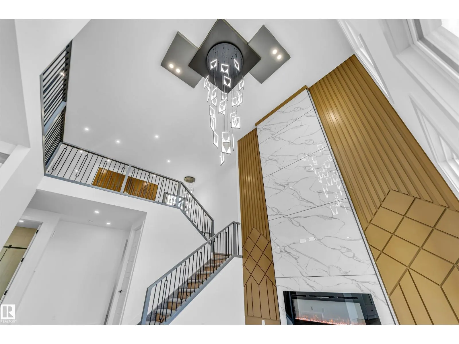 Welcome to this beautifully designed home in Hilldowns, Spruce Grove, featuring a triple-car garage, 5 bedrooms, and 3 full bathrooms, spanning 2,591 sq ft. The main floor offers an open-to-below living room with an electric fireplace, a modern kitchen with a walk-in pantry, a dining area, a main floor den/bedroom, and a full washroom. A spacious mudroom off the garage adds everyday convenience. Upstairs, you'll find 4 large bedrooms. The luxurious Master Bedroom includes a massive walk-in closet and a 5-piece ensuite with a freestanding tub, double vanity, and glass shower. A bonus room, laundry, and another full bathroom complete the upper level. The unfinished basement with a separate side entrance offers great potential for a future suite or rental. (id:27476)