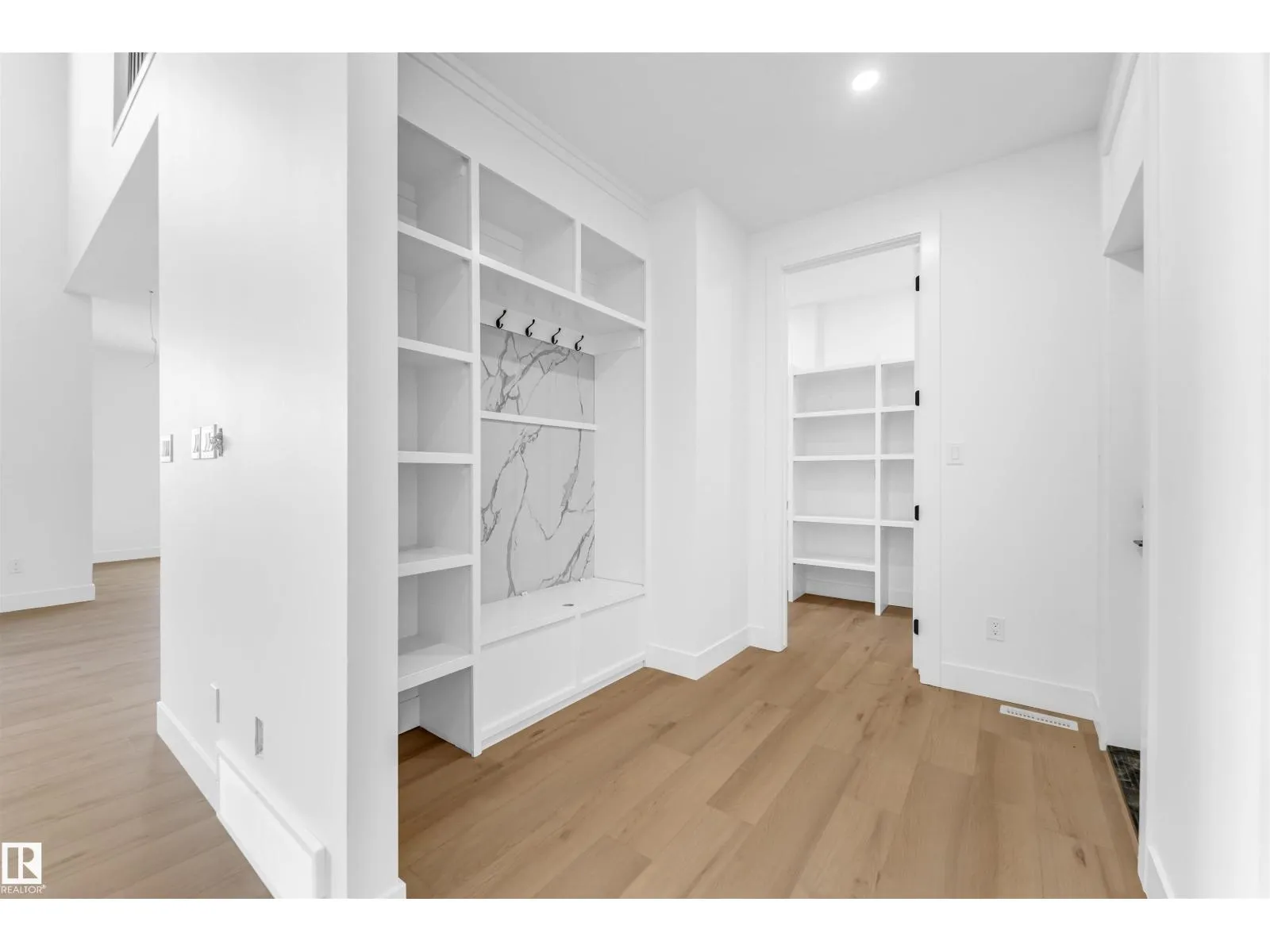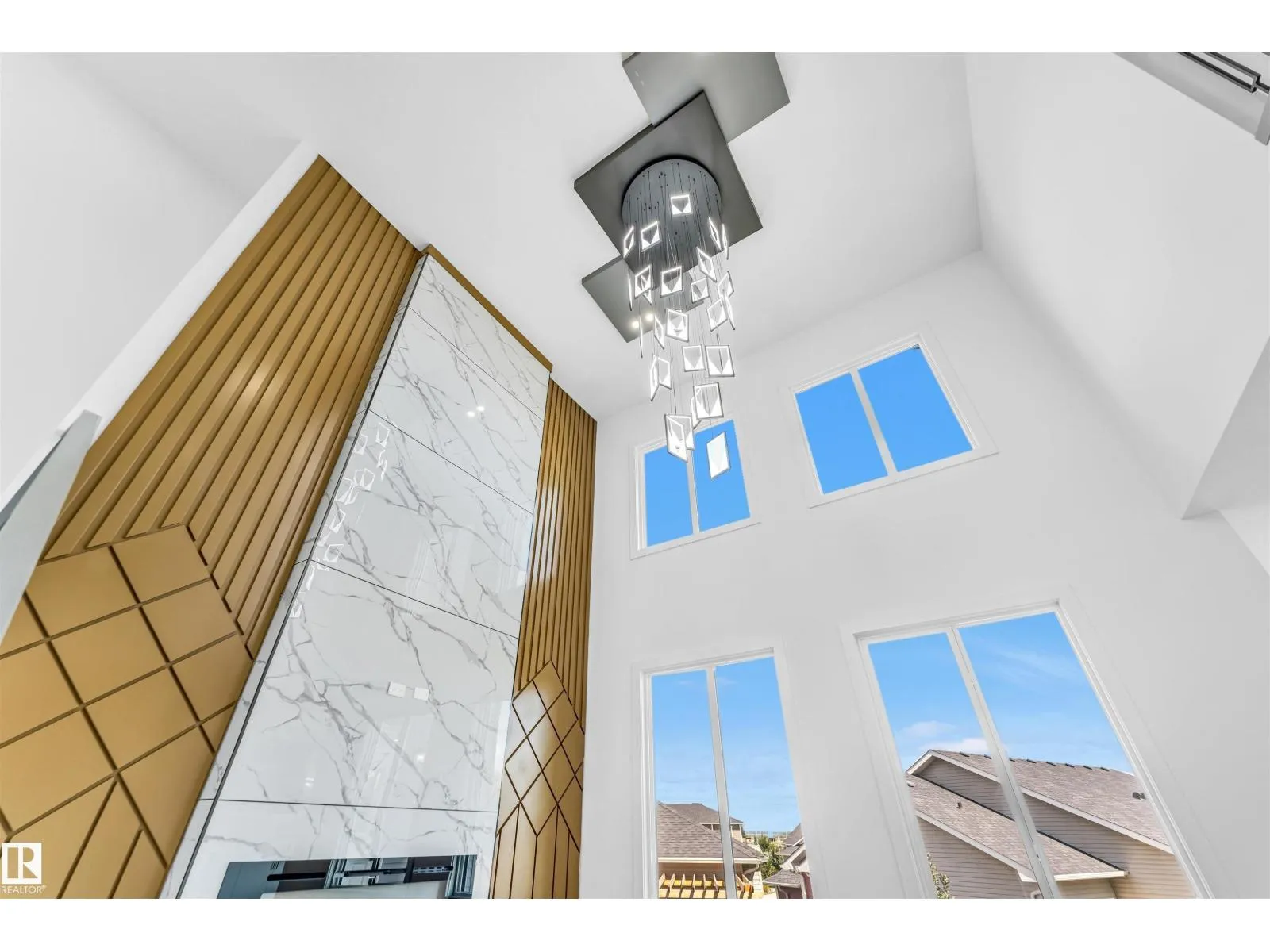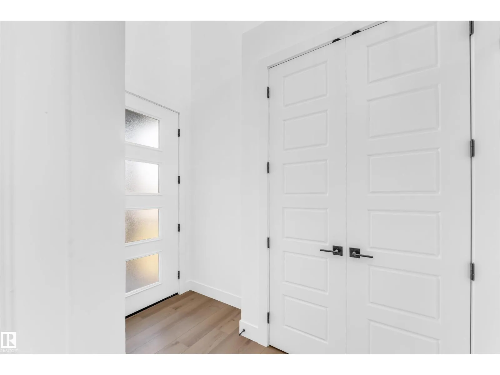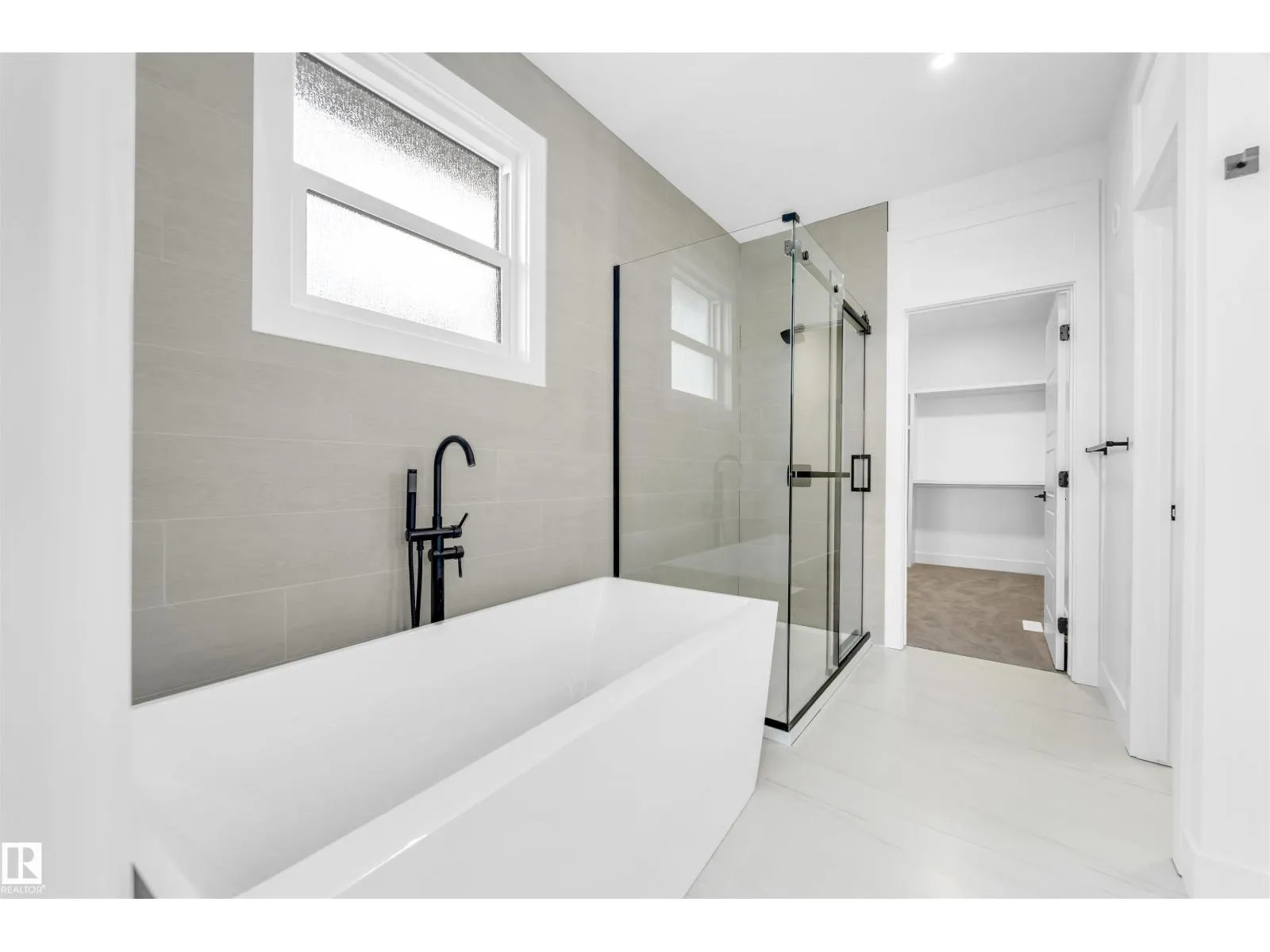 Welcome to this beautifully designed home in Hilldowns, Spruce Grove, featuring a triple-car garage, 5 bedrooms, and 3 full bathrooms, spanning 2,591 sq ft. The main floor offers an open-to-below living room with an electric fireplace, a modern kitchen with a walk-in pantry, a dining area, a main floor den/bedroom, and a full washroom. A spacious mudroom off the garage adds everyday convenience. Upstairs, you'll find 4 large bedrooms. The luxurious Master Bedroom includes a massive walk-in closet and a 5-piece ensuite with a freestanding tub, double vanity, and glass shower. A bonus room, laundry, and another full bathroom complete the upper level. The unfinished basement with a separate side entrance offers great potential for a future suite or rental. (id:27476)