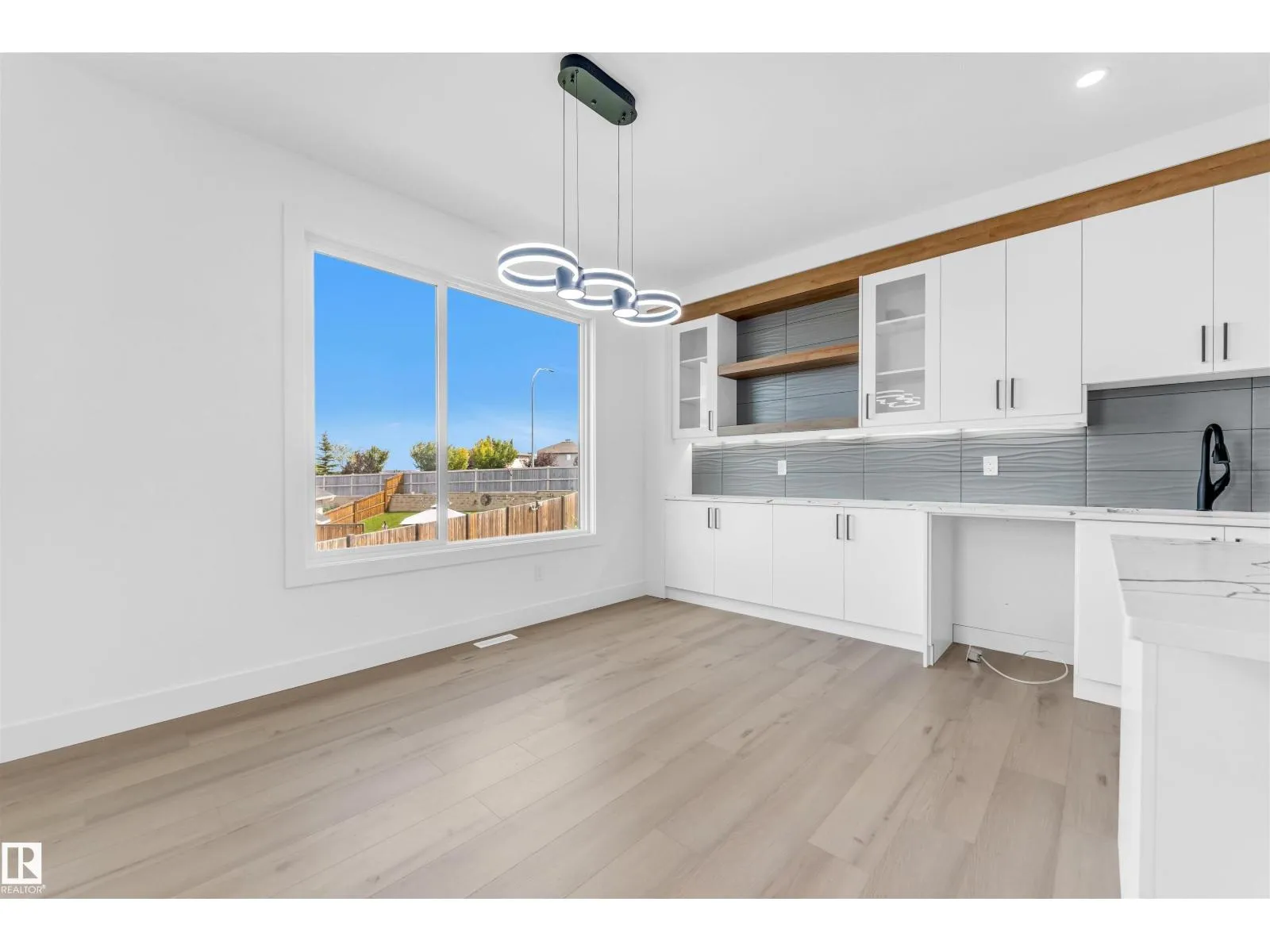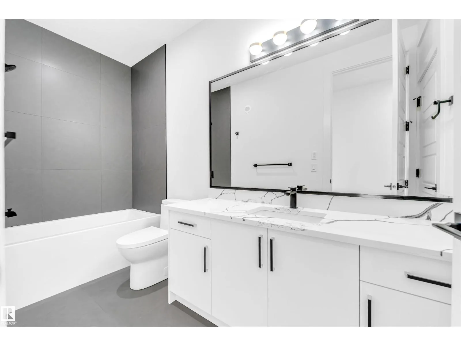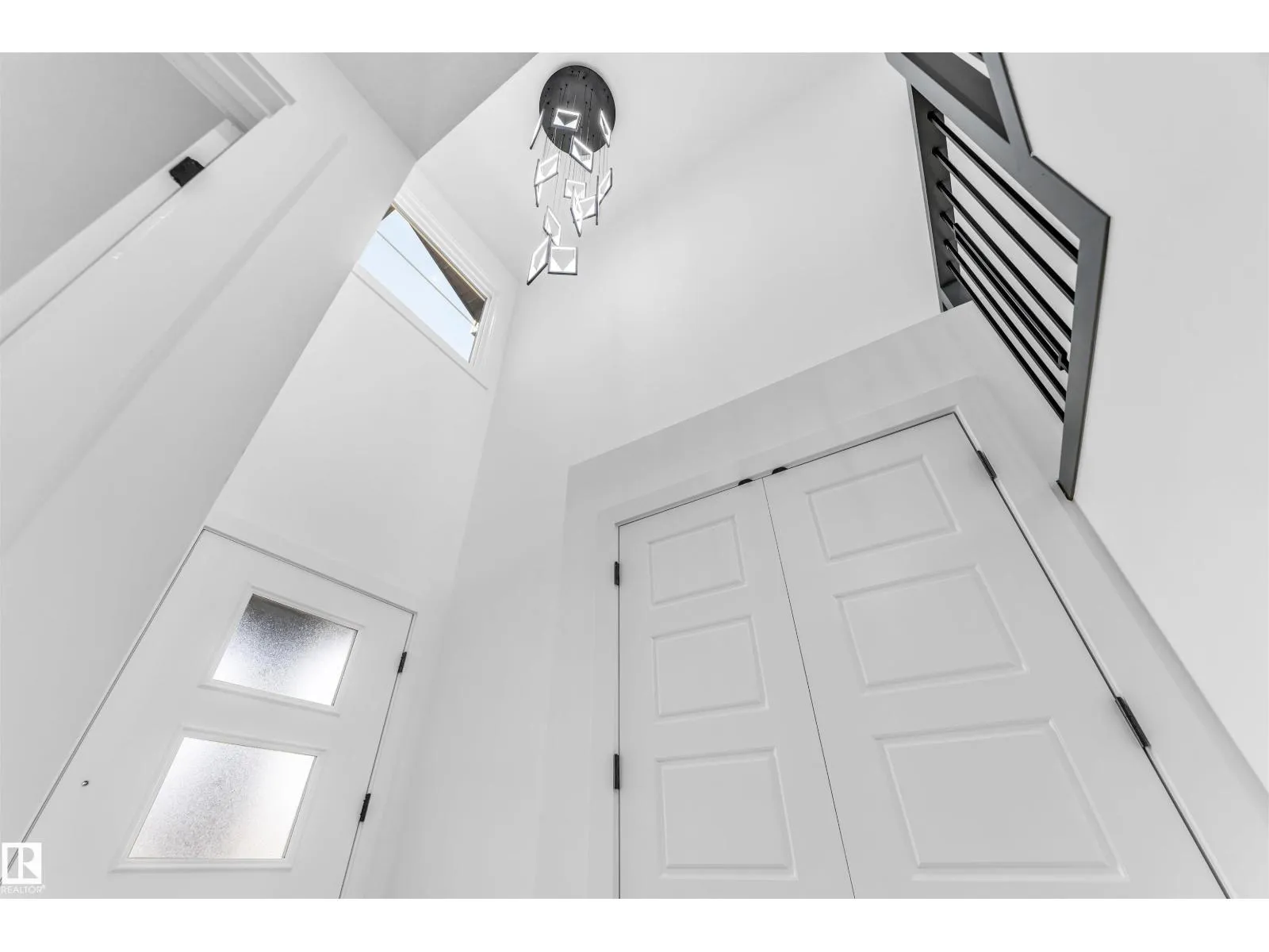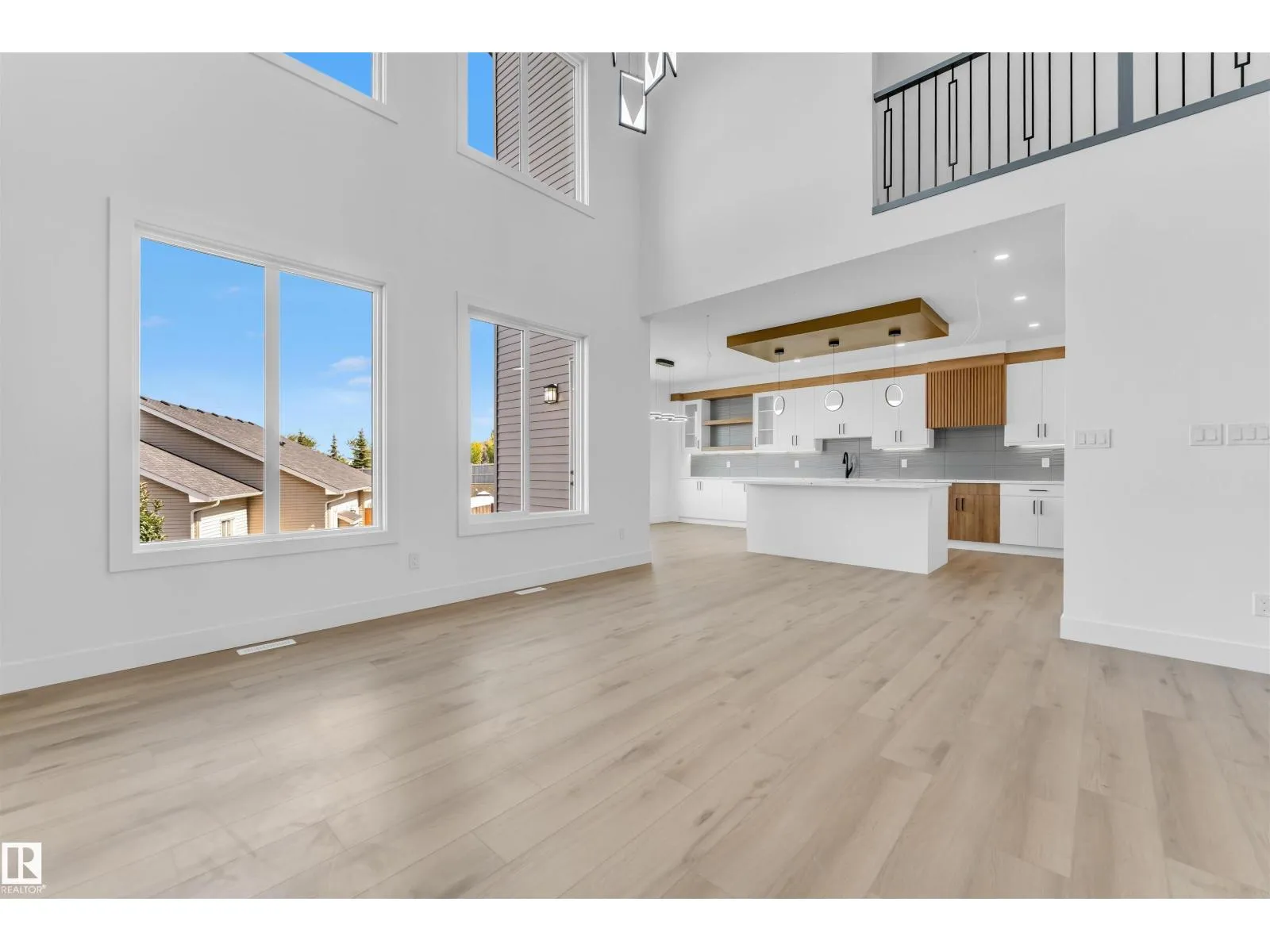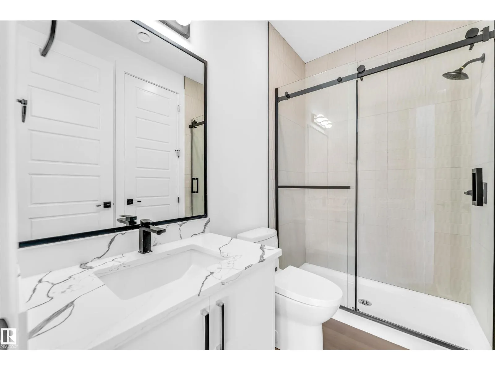 Welcome to this beautifully designed home in Hilldowns, Spruce Grove, featuring a triple-car garage, 5 bedrooms, and 3 full bathrooms, spanning 2,591 sq ft. The main floor offers an open-to-below living room with an electric fireplace, a modern kitchen with a walk-in pantry, a dining area, a main floor den/bedroom, and a full washroom. A spacious mudroom off the garage adds everyday convenience. Upstairs, you'll find 4 large bedrooms. The luxurious Master Bedroom includes a massive walk-in closet and a 5-piece ensuite with a freestanding tub, double vanity, and glass shower. A bonus room, laundry, and another full bathroom complete the upper level. The unfinished basement with a separate side entrance offers great potential for a future suite or rental. (id:27476)
