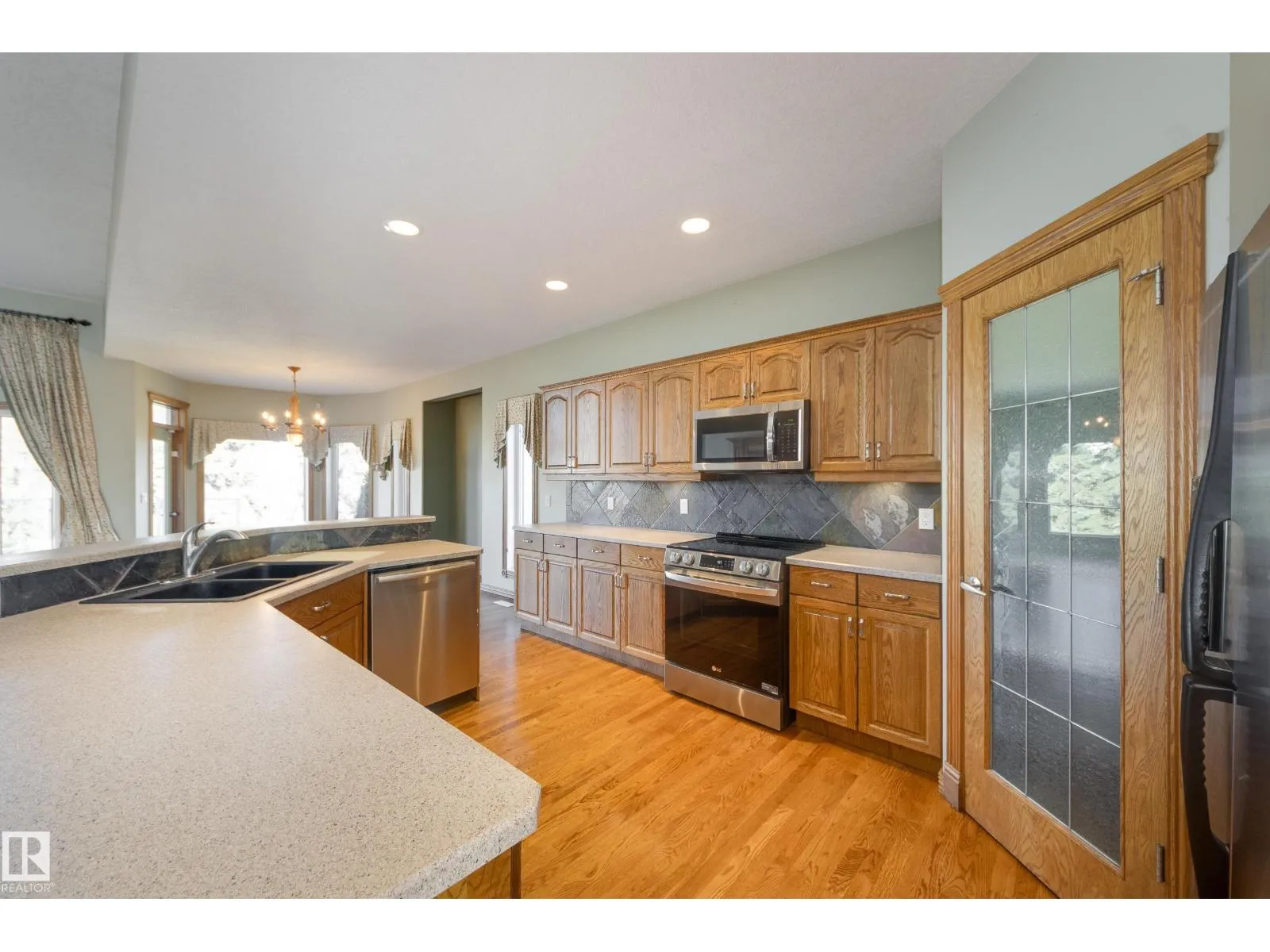 Executive bungalow backing on to the golfcourse in the most desirable Linkside! Located on a quiet cul-de-sac in the back of the neighbourhood, this Home is a must see! The homes curb appeal with wonderful landscaping welcomes you home. Step inside & you are greeted with soaring 11 ft ceilings & gleaming hardwood floors. A home office is conveniently located off the entry. The GREAT ROOM has large windows to capture the wonderful views & a grand fireplace. Ideal for entertaining, the large kitchen is open to the dining room & features a corner pantry. The large primary bedroom has a luxury 5 pce ensuite bath with steam shower, A cozy 3 sided fireplace & sitting area - ideal to enjoy your morning coffee! the lower level features 2 more large bedrooms both with walk in closets, & one with a jacuzzi tub! A full 3 pce bath is conveniently next door. You're sure to love the huge family room ideal for family games night, a movie area with room for billiard table. A/C High end window coverings, the list goes on! (id:27476)