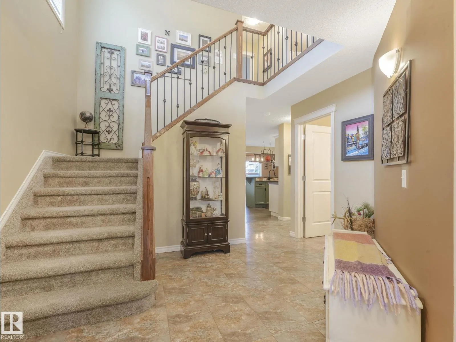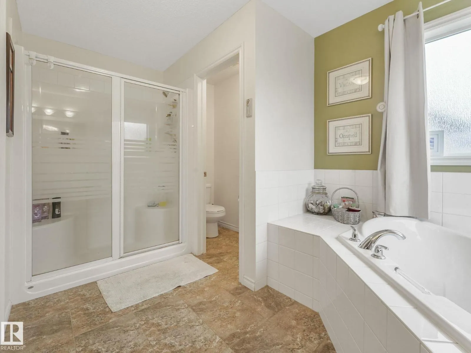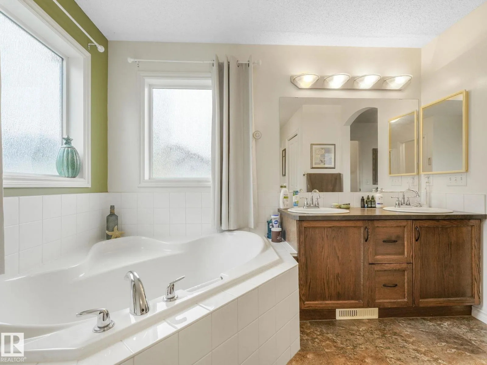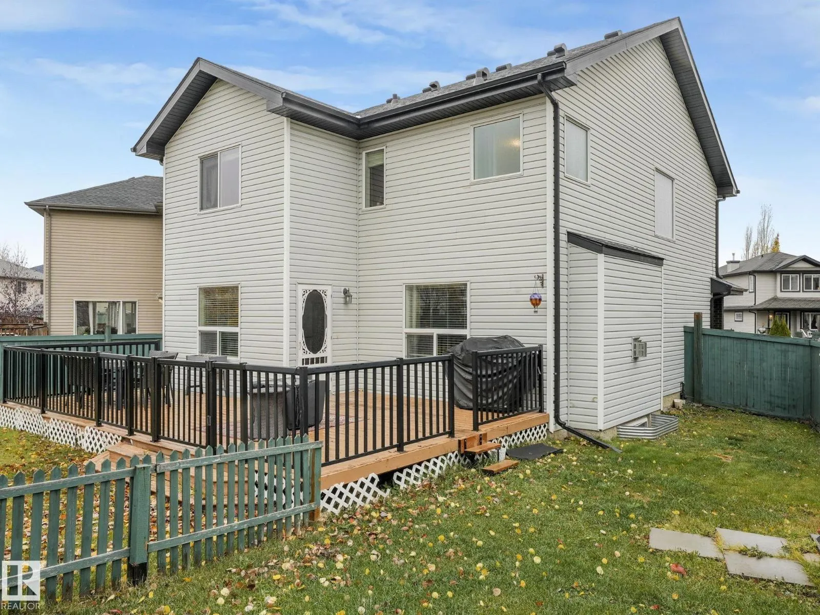 Exceptional 2-Storey Home on a HUGE **8,150 SF** PIE LOT in Spruce Village! This well appointed residence offers 2,000 SF of refined living space with 3+1 bedrooms, 3.5 baths, a bonus room + additional space to spread out in the fully finished basement. The gourmet country-style kitchen showcases a large island, corner pantry & lots of cabinetry, flowing seamlessly into a warm living room with hardwood floors, gas fireplace & access to a sprawling deck. Perfect for entertaining, the expansive fenced yard provides privacy & space for outdoor gatherings or summer BBQ parties. The private primary suite boasts a spa-inspired 5-pc ensuite with soaker tub & W/I closet. A basement adds a 4th bdrm, full bath & oversized family rm. Enjoy central A/C, double att. garage & convenient main-floor laundry/mudroom. Recent upgrades incl. shingles (2024), HWT (2025), A/C & carpet (2023). Ideally located just 20 min to W. Edmonton & close to schools, parks & shopsâspace & comfort meets lifestyle in Spruce Grove! (id:27476)