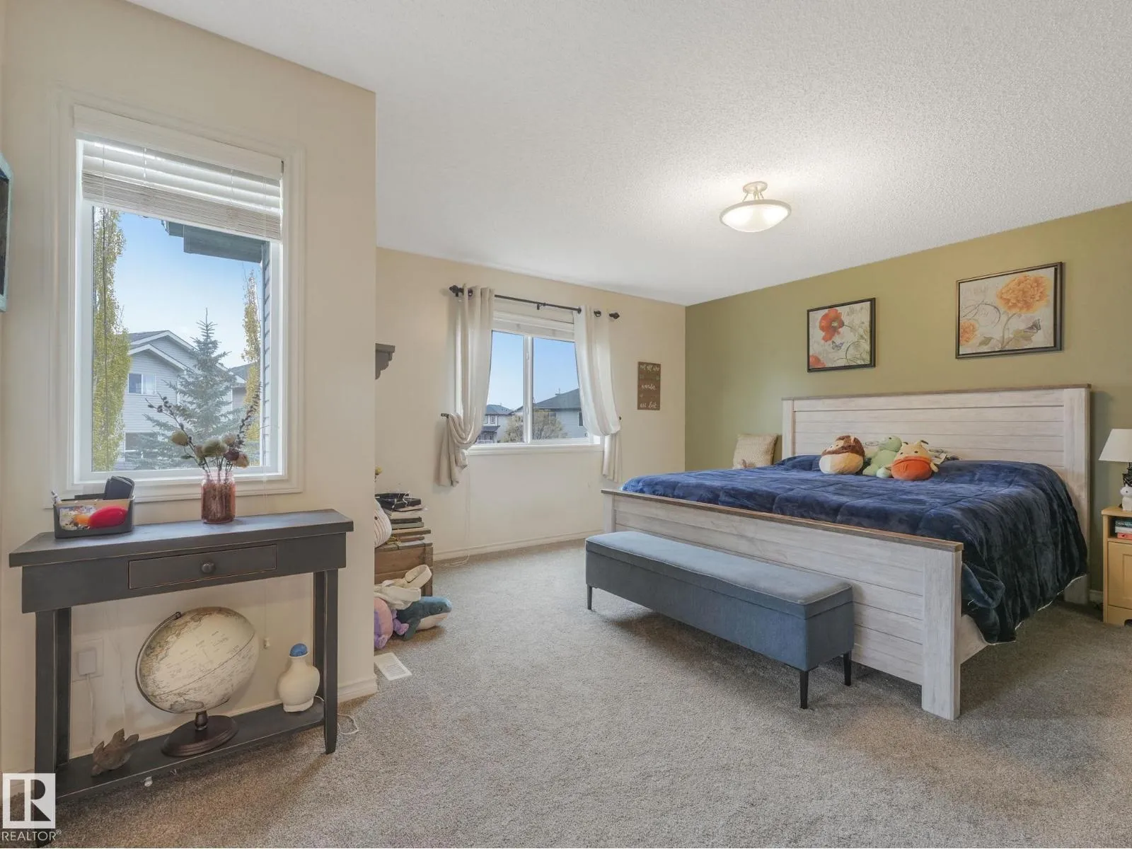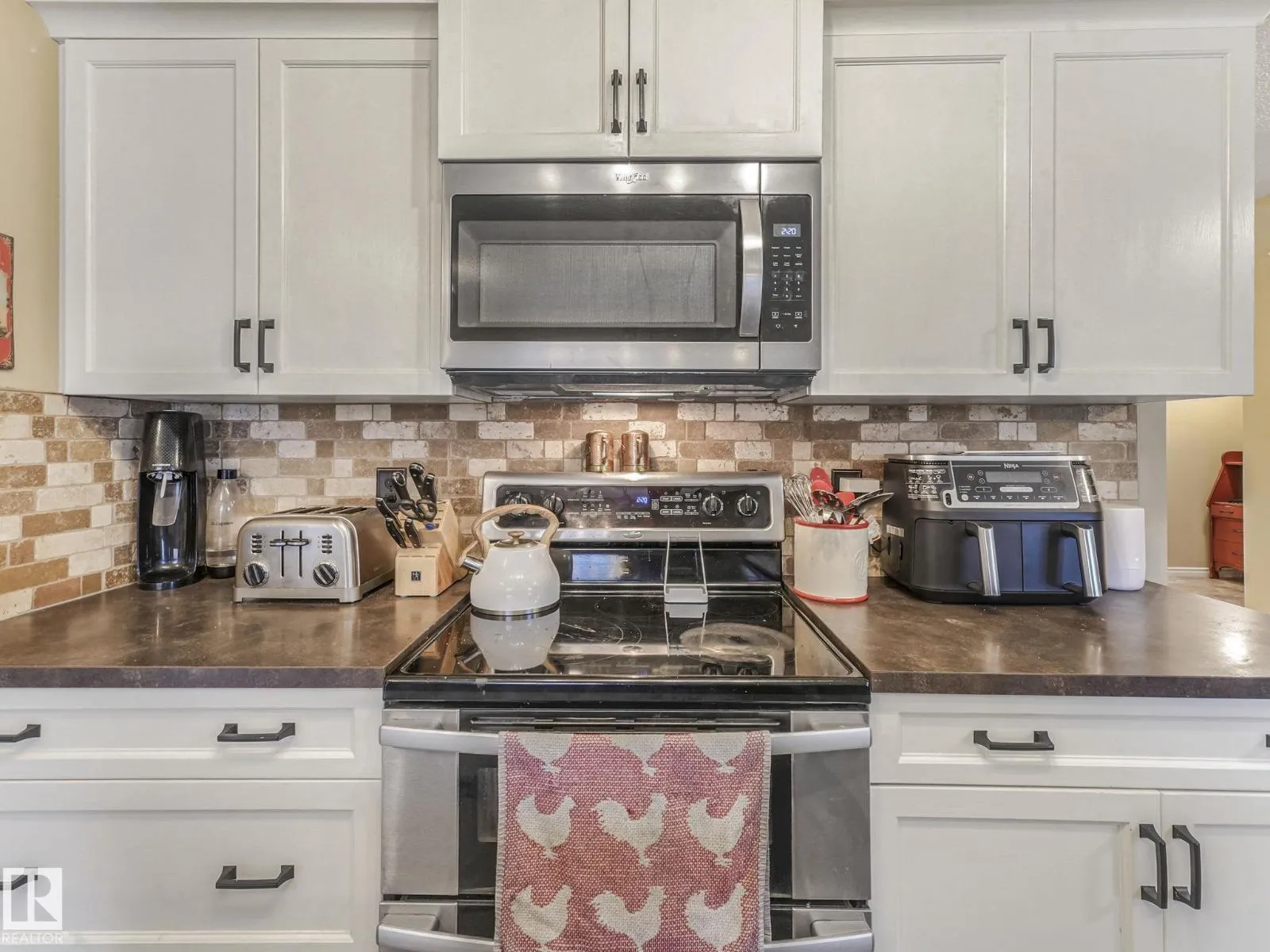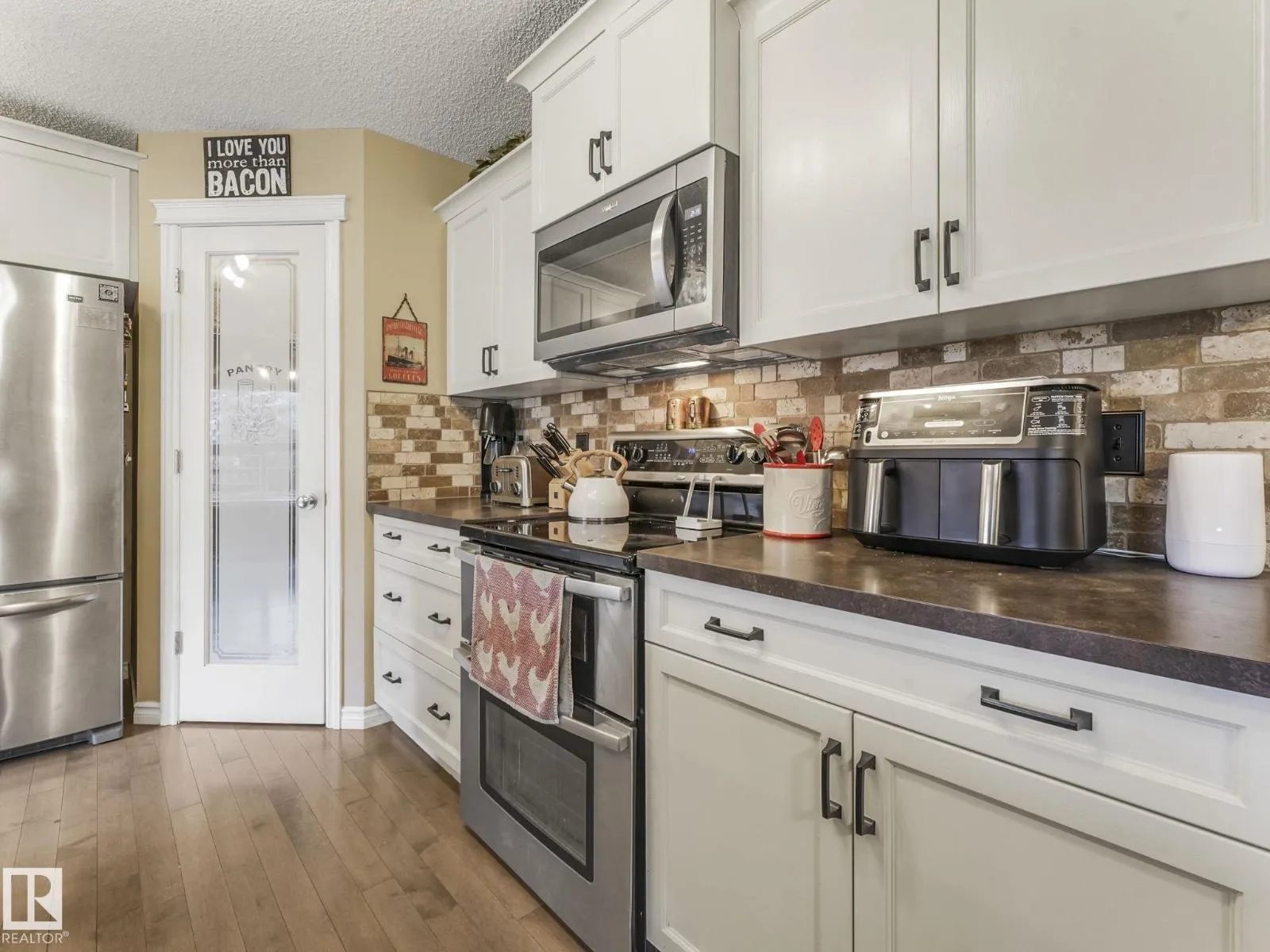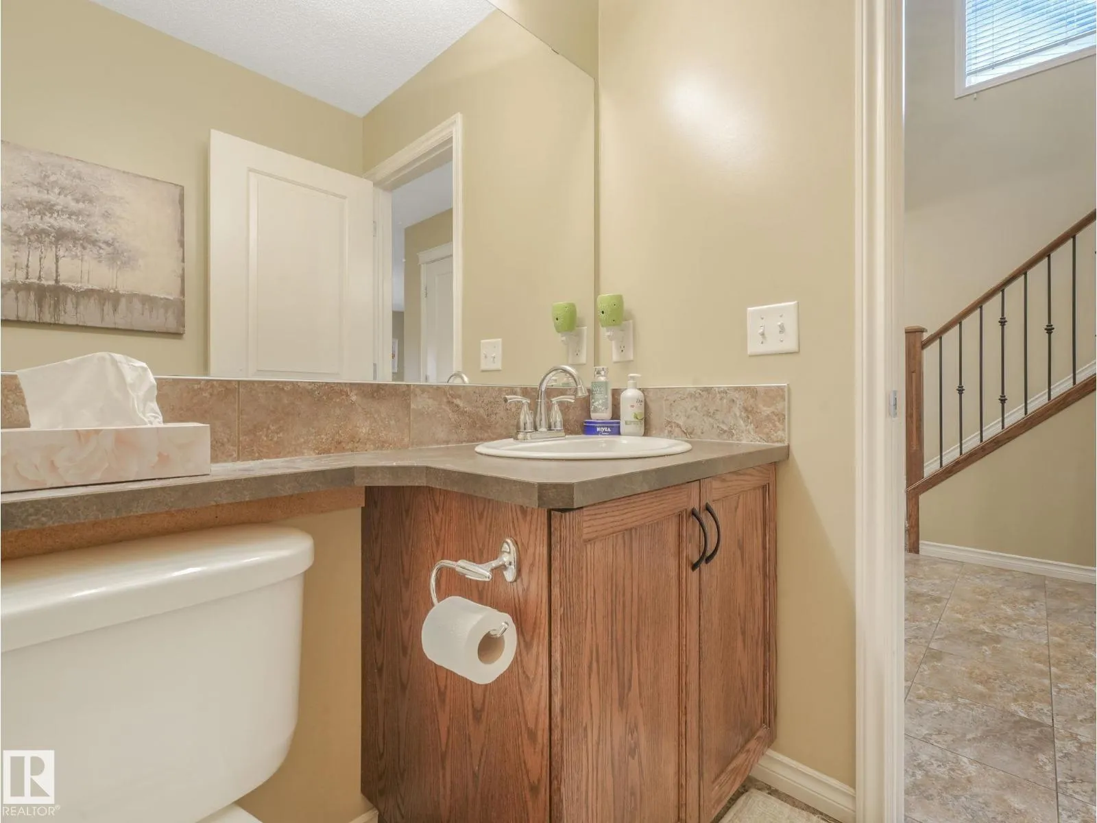 Exceptional 2-Storey Home on a HUGE **8,150 SF** PIE LOT in Spruce Village! This well appointed residence offers 2,000 SF of refined living space with 3+1 bedrooms, 3.5 baths, a bonus room + additional space to spread out in the fully finished basement. The gourmet country-style kitchen showcases a large island, corner pantry & lots of cabinetry, flowing seamlessly into a warm living room with hardwood floors, gas fireplace & access to a sprawling deck. Perfect for entertaining, the expansive fenced yard provides privacy & space for outdoor gatherings or summer BBQ parties. The private primary suite boasts a spa-inspired 5-pc ensuite with soaker tub & W/I closet. A basement adds a 4th bdrm, full bath & oversized family rm. Enjoy central A/C, double att. garage & convenient main-floor laundry/mudroom. Recent upgrades incl. shingles (2024), HWT (2025), A/C & carpet (2023). Ideally located just 20 min to W. Edmonton & close to schools, parks & shopsâspace & comfort meets lifestyle in Spruce Grove! (id:27476)