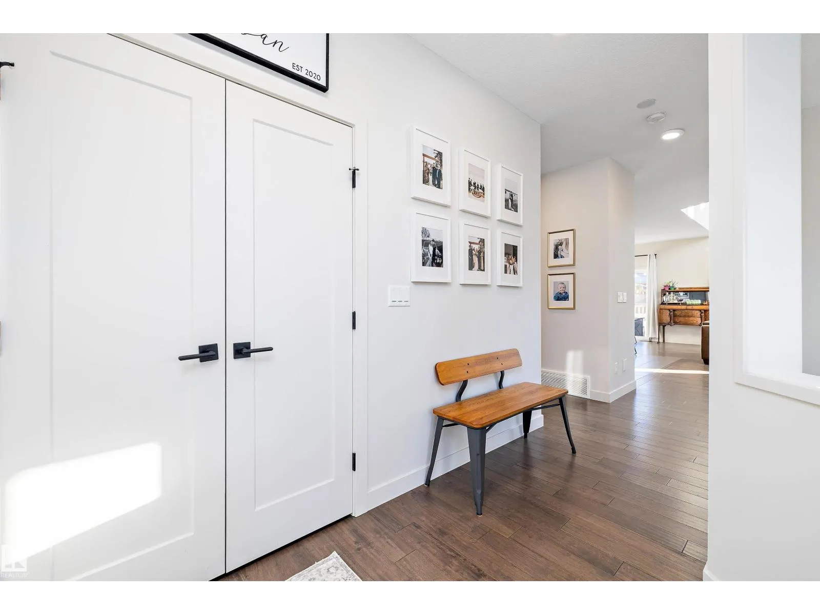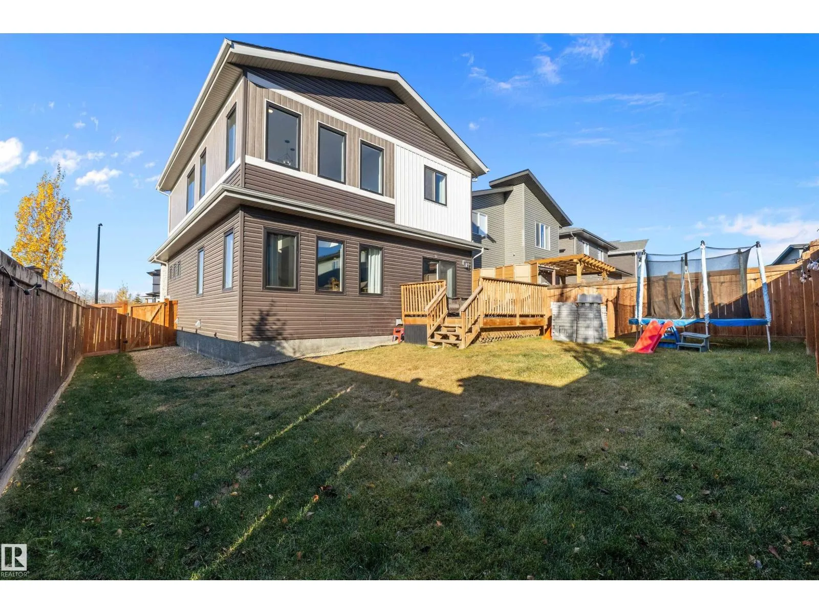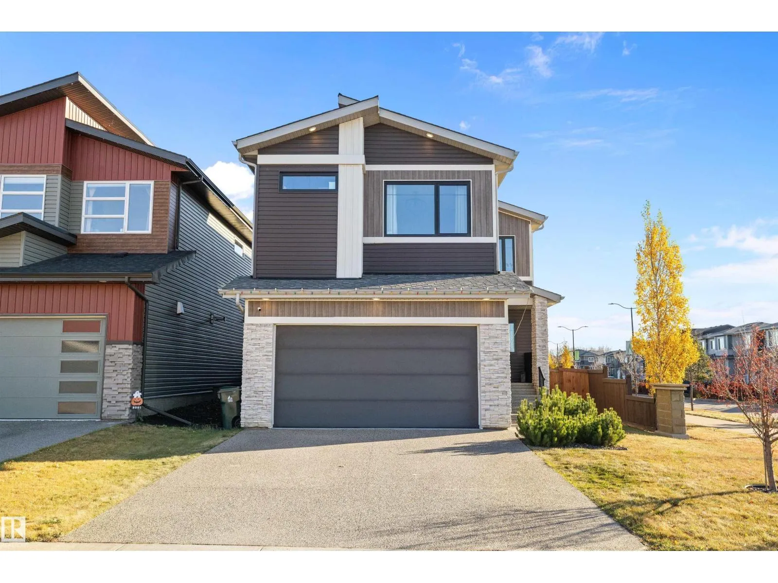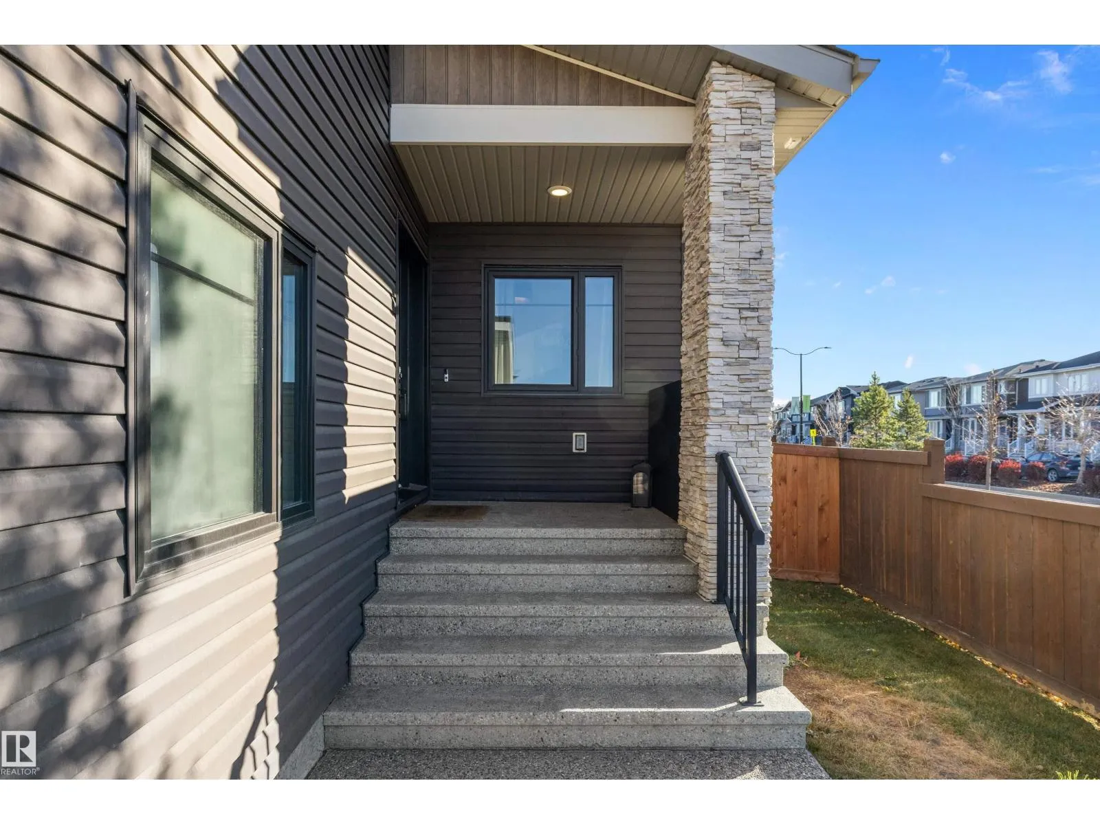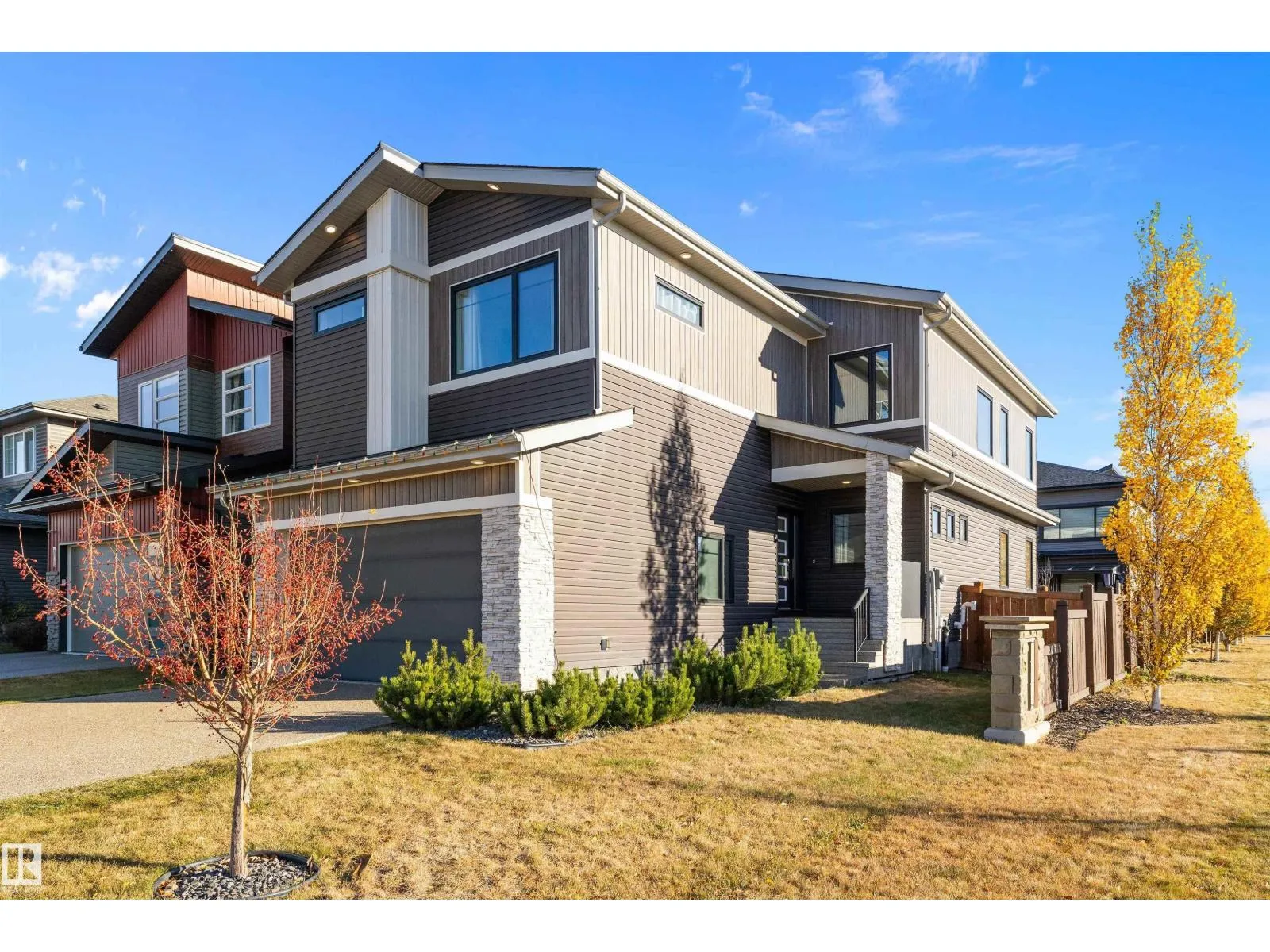 You will be impressed as soon as you drive up to this striking 2-story home boasting a stylish modern exterior profile with exposed aggregate concrete. The main floor opens to a bright den and convenient two-piece powder room off the garage mud room with built-in storage. A sleek modern kitchen with built-in appliances, including induction stove, flows into the dining area & stunning two-story great room with floor-to-ceiling windows and a cozy fireplace. The elegant staircase leads to a spacious bonus room, 2 generous bdrms, UPSTAIRS LAUNDRY, a full bath, and a dreamy primary retreat with w/i closet and 5-piece ensuite. Being on a corner lot, this home offers an abundance of windows that fill the home with natural light. Complete with a double attached garage with epoxy flooring & a landscaped backyard. Offering A/C and gas outlet for Bbq. Located on the east side of Spruce Grove, just 15 min from Edmonton, & walking distance to Jubilee Park, this beautiful corner-lot home is ready for your family! (id:27476)