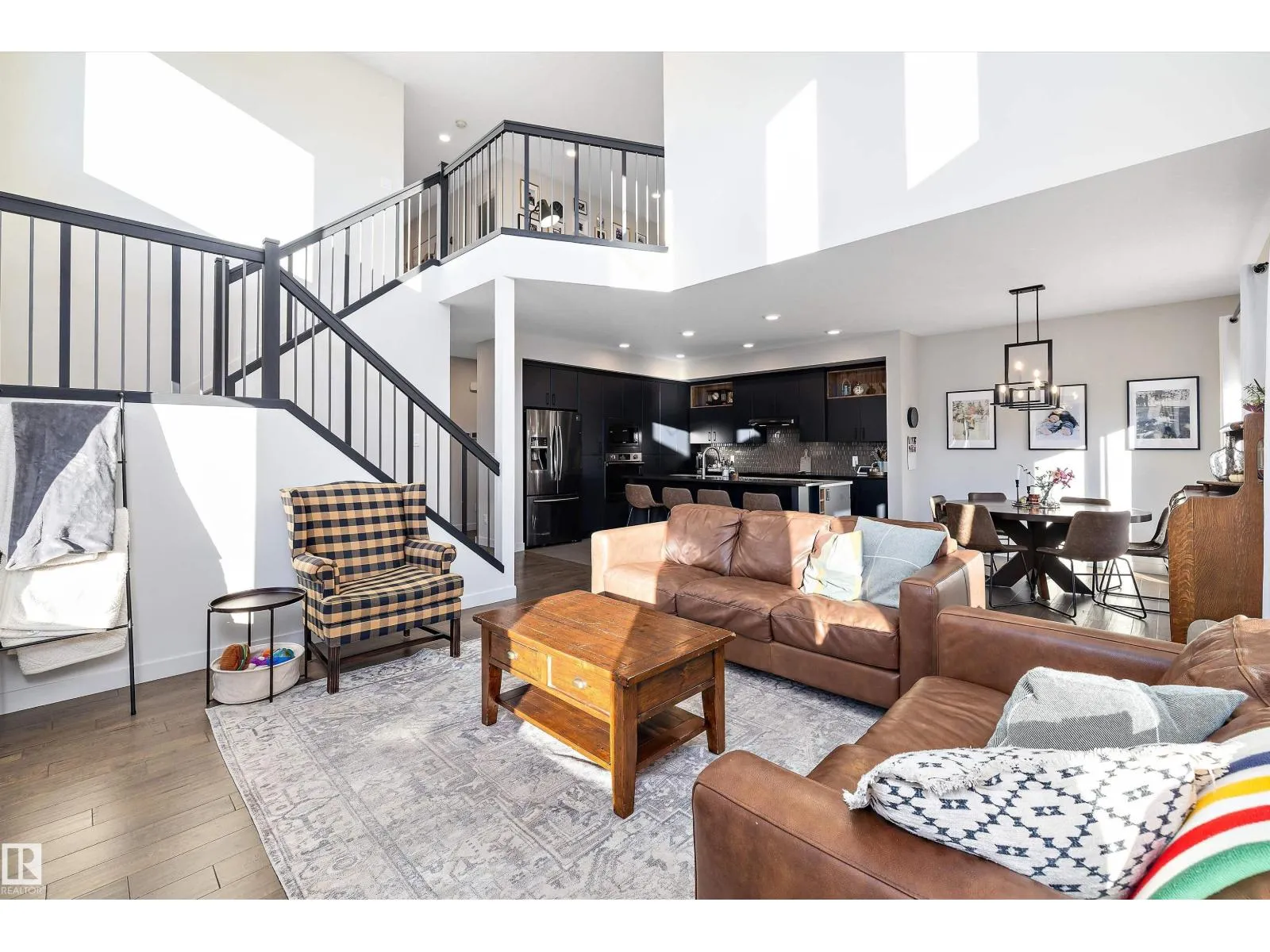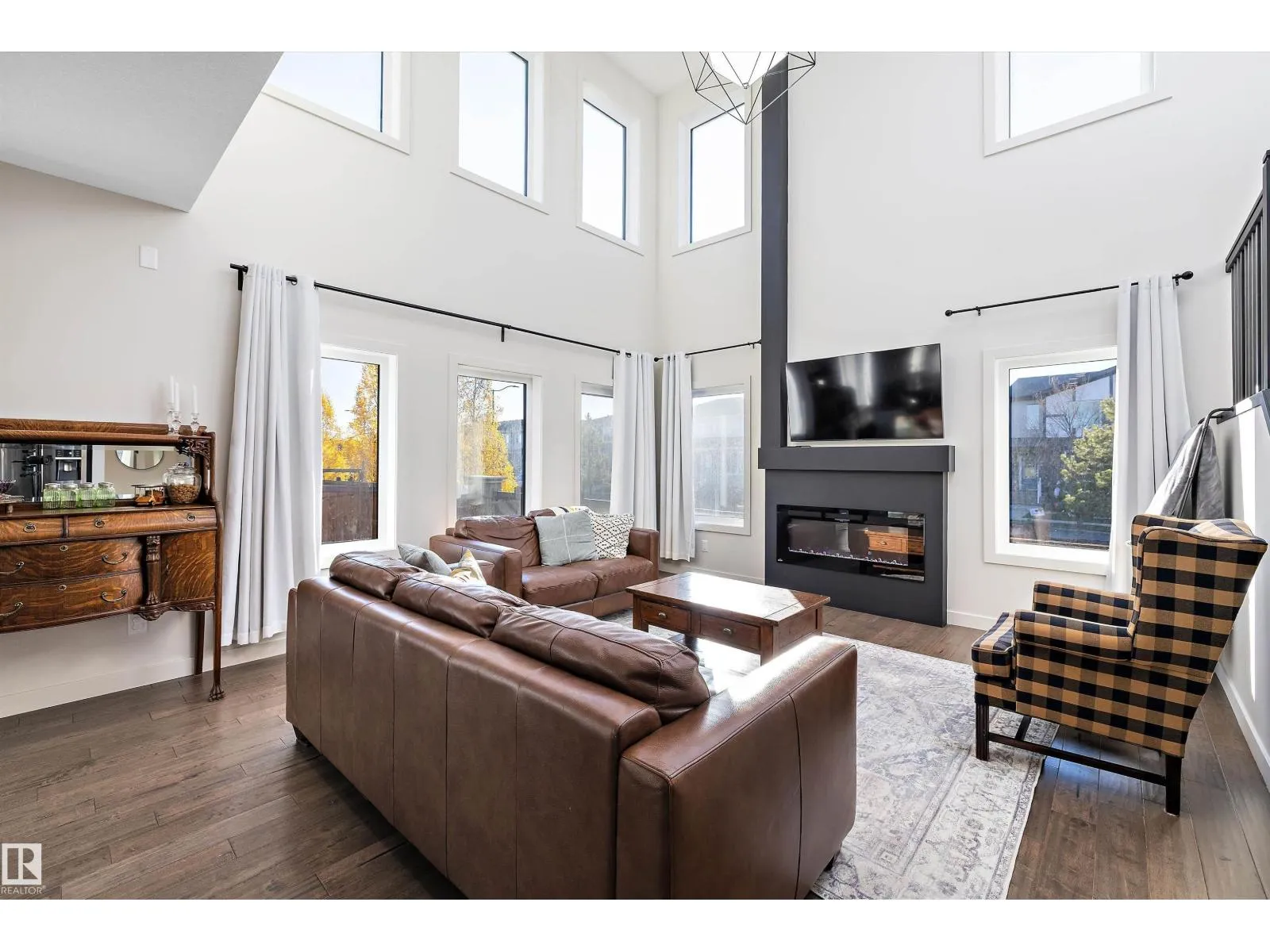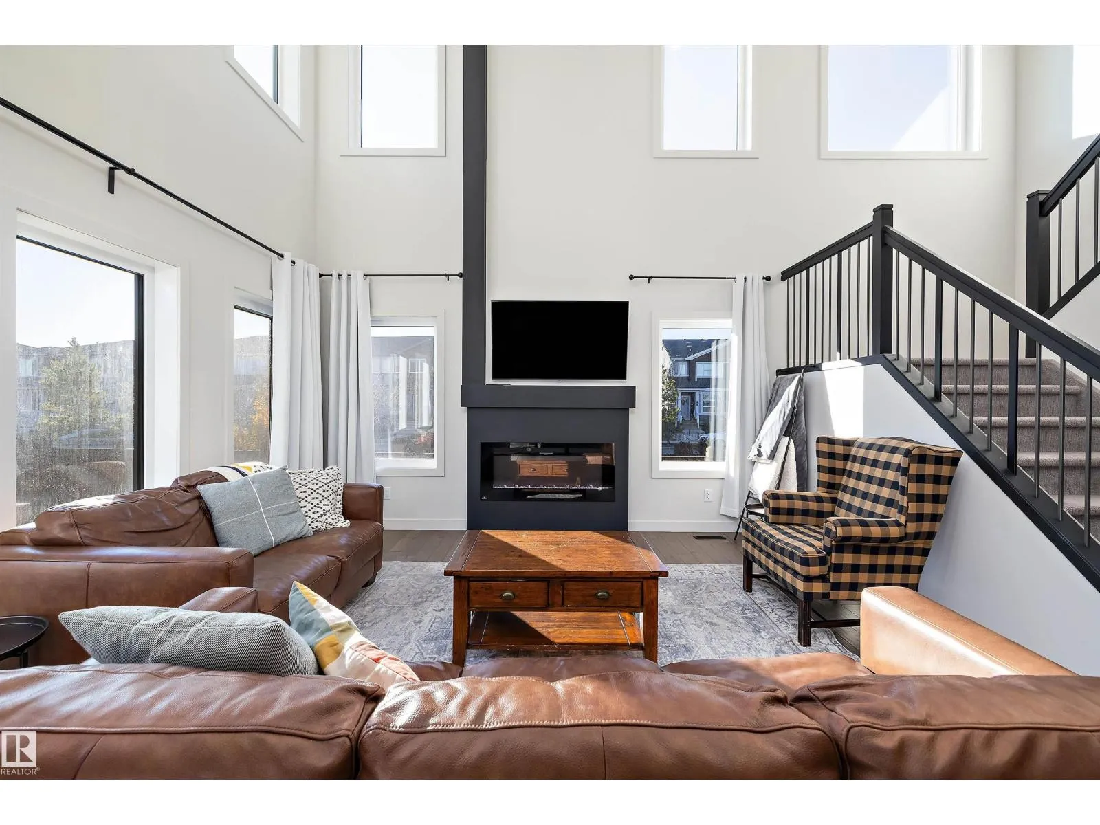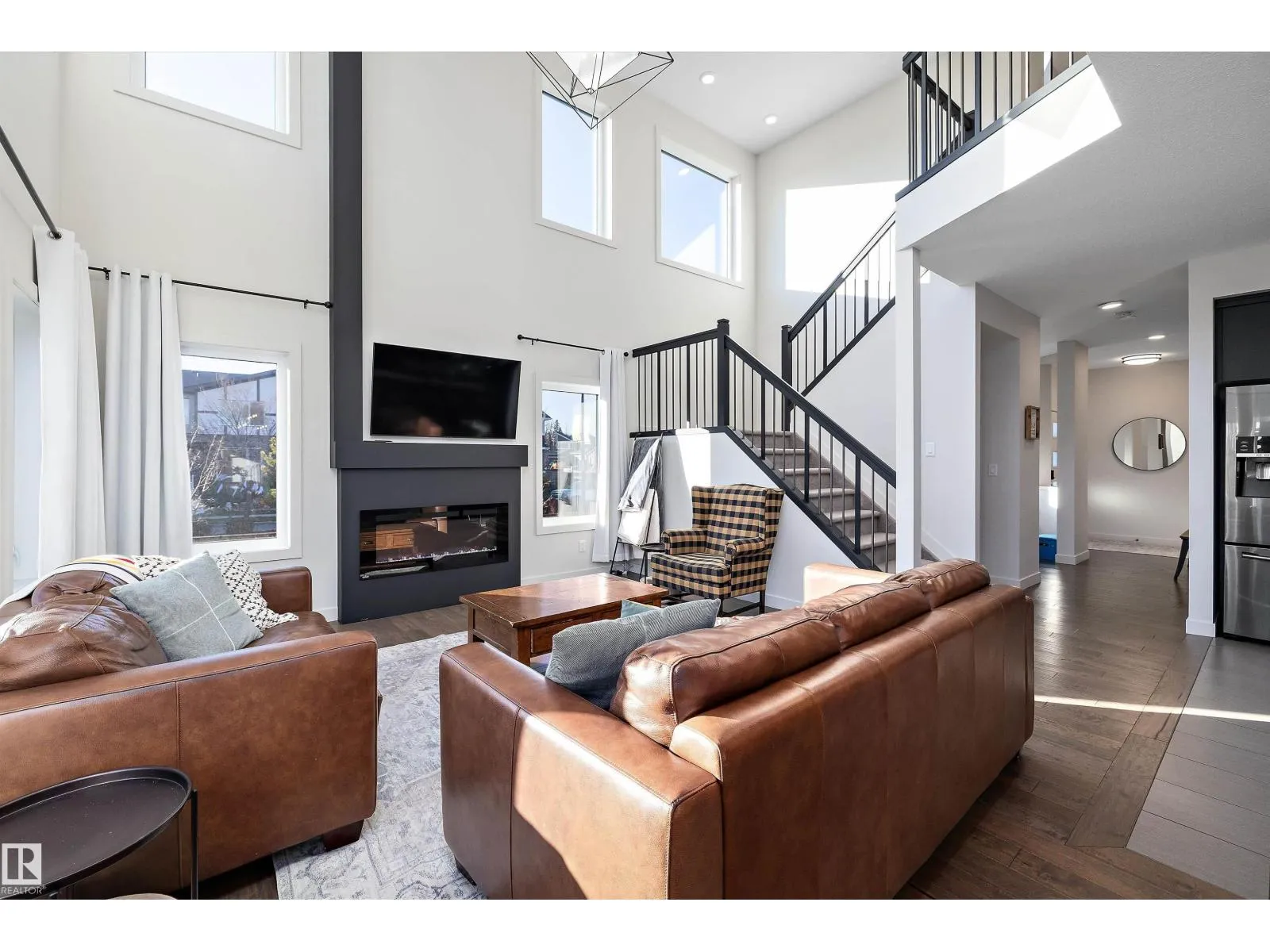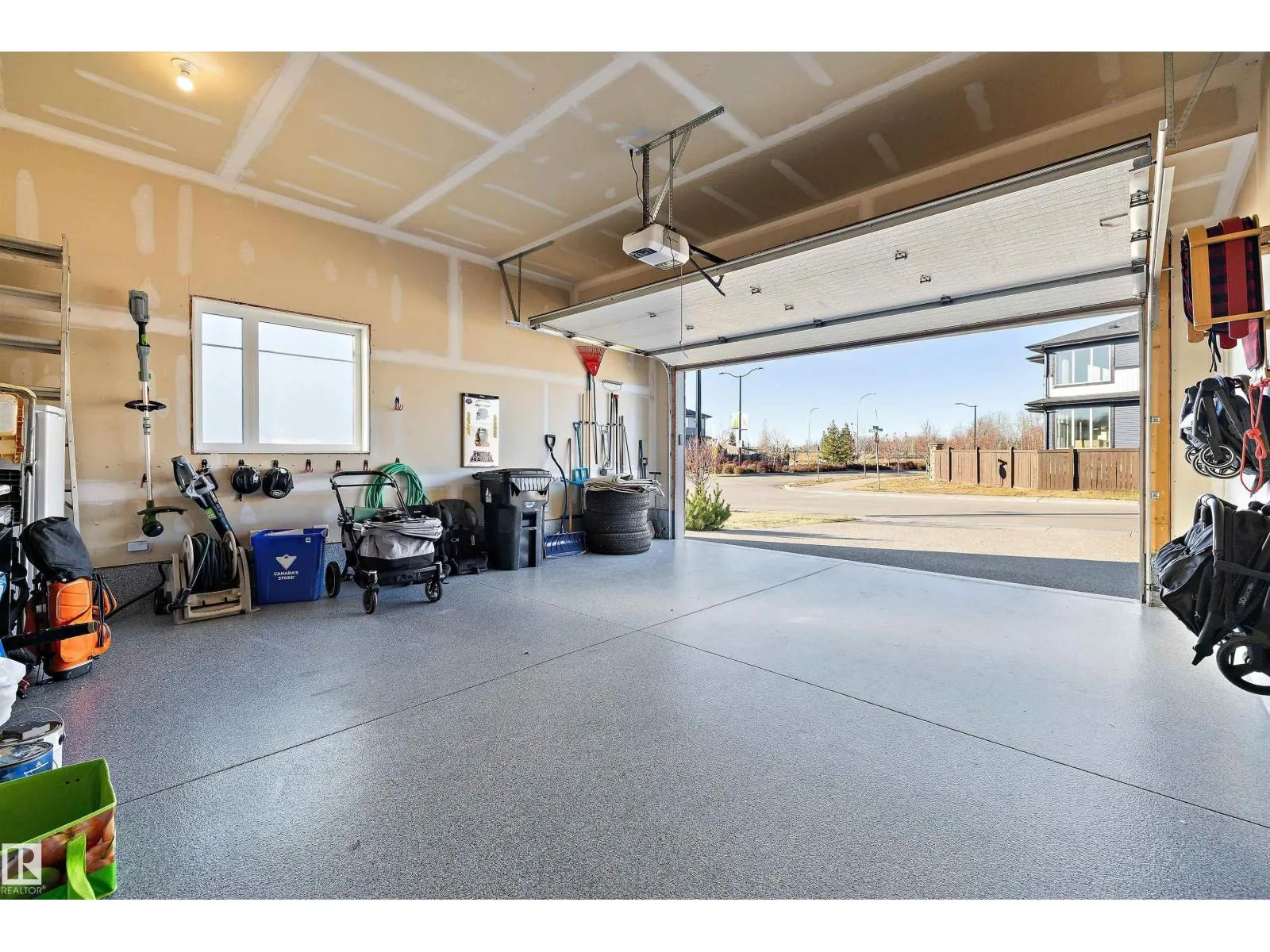 You will be impressed as soon as you drive up to this striking 2-story home boasting a stylish modern exterior profile with exposed aggregate concrete. The main floor opens to a bright den and convenient two-piece powder room off the garage mud room with built-in storage. A sleek modern kitchen with built-in appliances, including induction stove, flows into the dining area & stunning two-story great room with floor-to-ceiling windows and a cozy fireplace. The elegant staircase leads to a spacious bonus room, 2 generous bdrms, UPSTAIRS LAUNDRY, a full bath, and a dreamy primary retreat with w/i closet and 5-piece ensuite. Being on a corner lot, this home offers an abundance of windows that fill the home with natural light. Complete with a double attached garage with epoxy flooring & a landscaped backyard. Offering A/C and gas outlet for Bbq. Located on the east side of Spruce Grove, just 15 min from Edmonton, & walking distance to Jubilee Park, this beautiful corner-lot home is ready for your family! (id:27476)