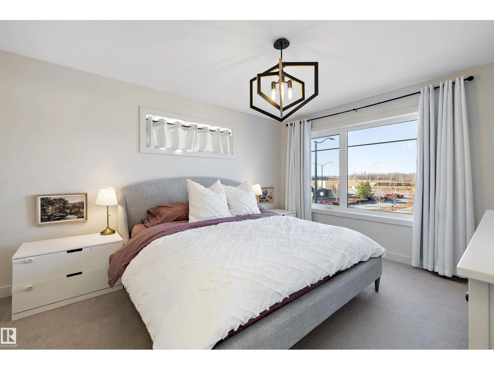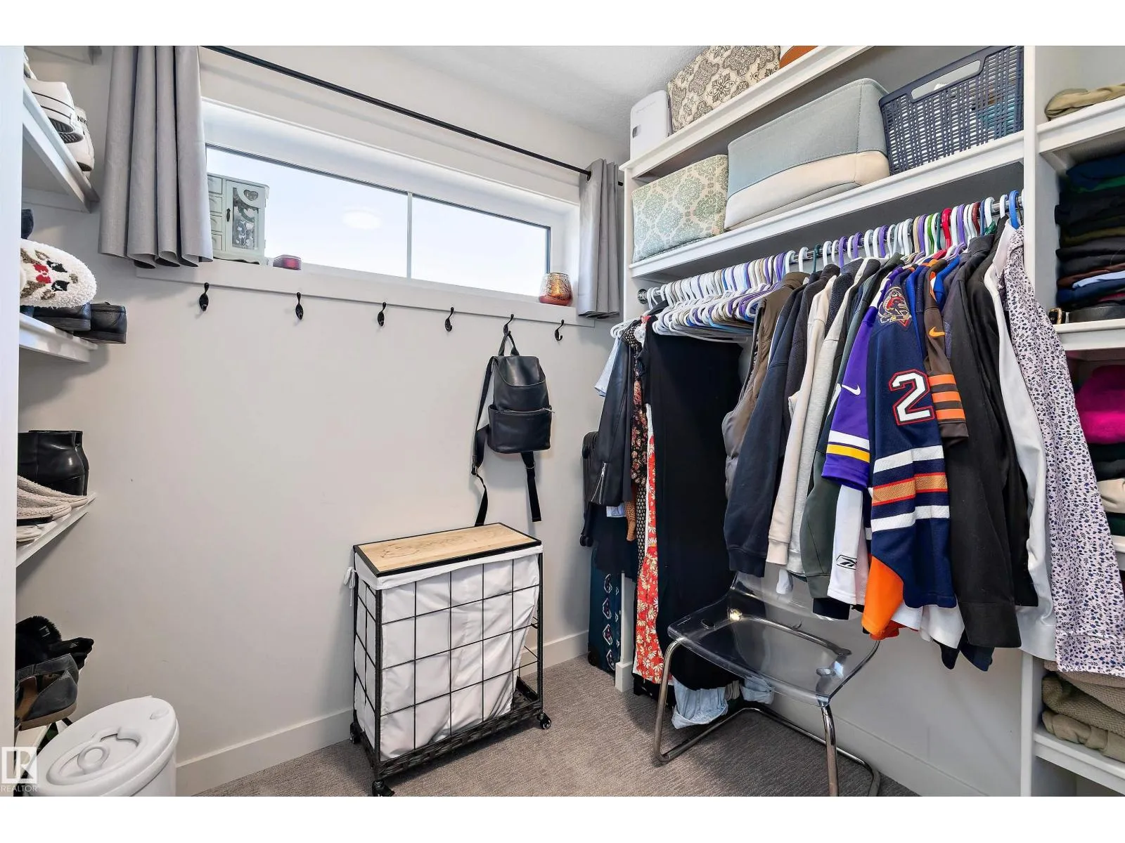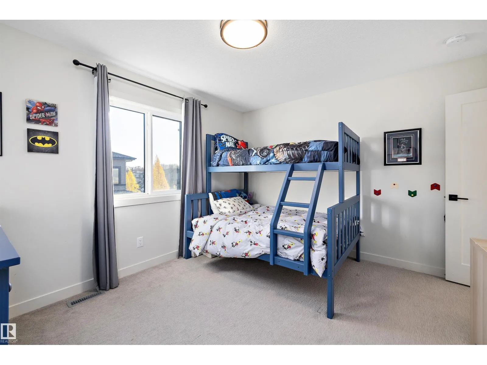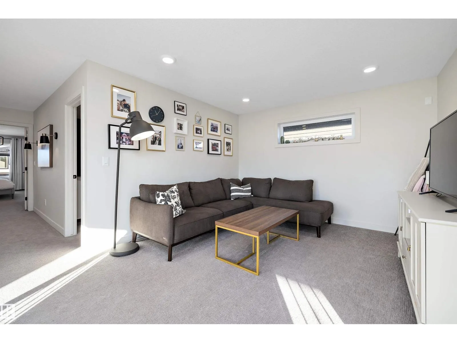 You will be impressed as soon as you drive up to this striking 2-story home boasting a stylish modern exterior profile with exposed aggregate concrete. The main floor opens to a bright den and convenient two-piece powder room off the garage mud room with built-in storage. A sleek modern kitchen with built-in appliances, including induction stove, flows into the dining area & stunning two-story great room with floor-to-ceiling windows and a cozy fireplace. The elegant staircase leads to a spacious bonus room, 2 generous bdrms, UPSTAIRS LAUNDRY, a full bath, and a dreamy primary retreat with w/i closet and 5-piece ensuite. Being on a corner lot, this home offers an abundance of windows that fill the home with natural light. Complete with a double attached garage with epoxy flooring & a landscaped backyard. Offering A/C and gas outlet for Bbq. Located on the east side of Spruce Grove, just 15 min from Edmonton, & walking distance to Jubilee Park, this beautiful corner-lot home is ready for your family! (id:27476)