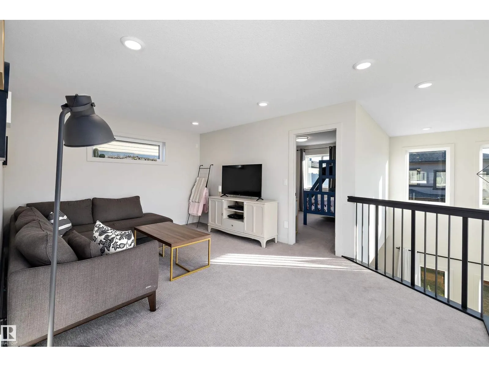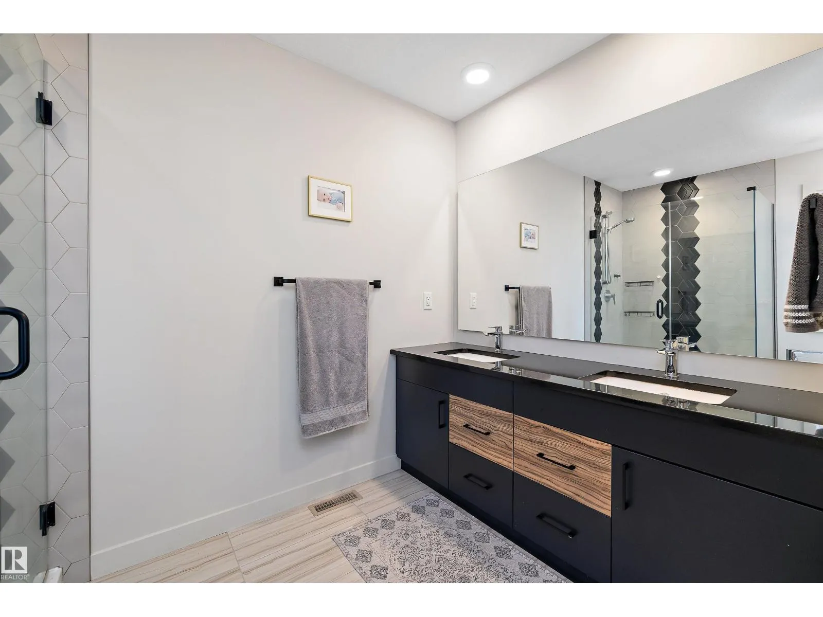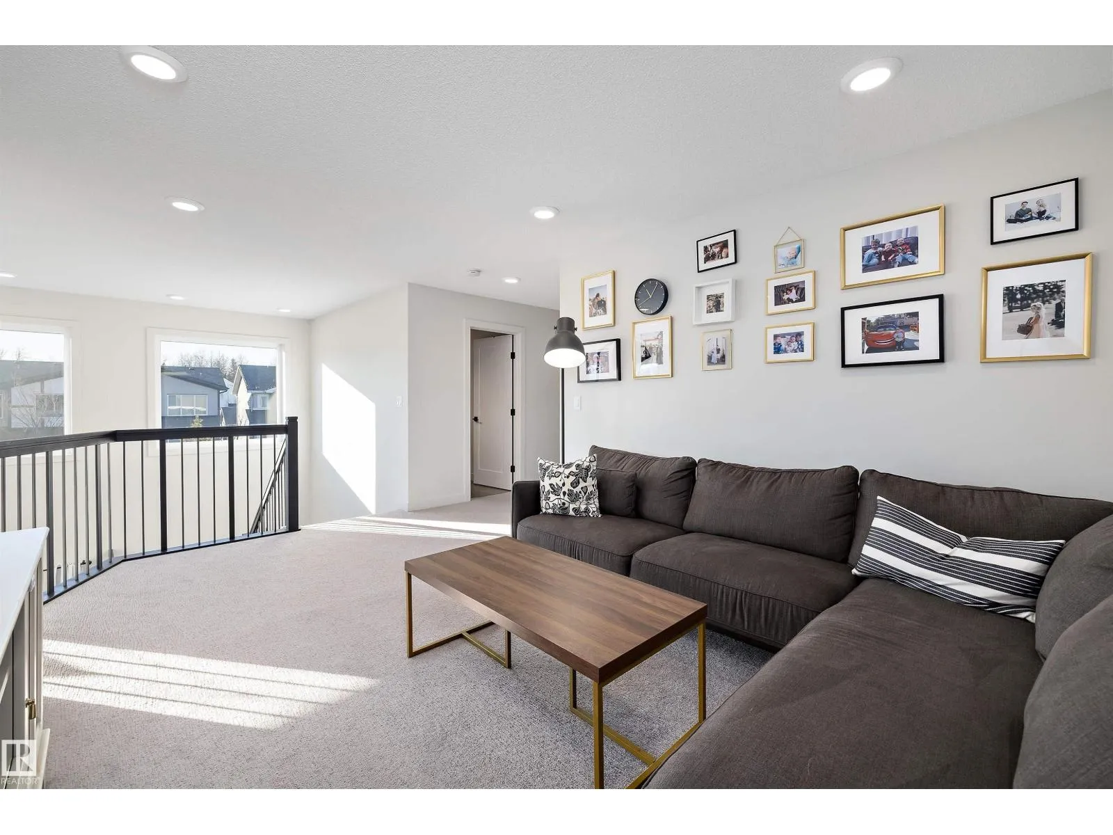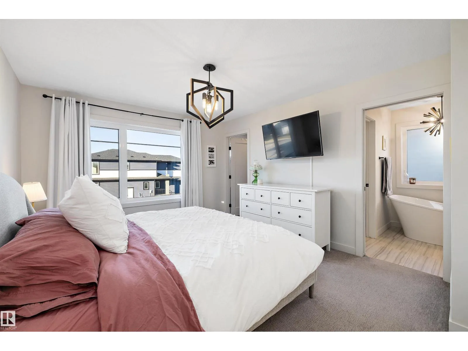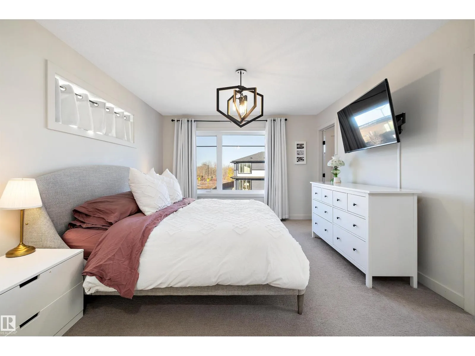 You will be impressed as soon as you drive up to this striking 2-story home boasting a stylish modern exterior profile with exposed aggregate concrete. The main floor opens to a bright den and convenient two-piece powder room off the garage mud room with built-in storage. A sleek modern kitchen with built-in appliances, including induction stove, flows into the dining area & stunning two-story great room with floor-to-ceiling windows and a cozy fireplace. The elegant staircase leads to a spacious bonus room, 2 generous bdrms, UPSTAIRS LAUNDRY, a full bath, and a dreamy primary retreat with w/i closet and 5-piece ensuite. Being on a corner lot, this home offers an abundance of windows that fill the home with natural light. Complete with a double attached garage with epoxy flooring & a landscaped backyard. Offering A/C and gas outlet for Bbq. Located on the east side of Spruce Grove, just 15 min from Edmonton, & walking distance to Jubilee Park, this beautiful corner-lot home is ready for your family! (id:27476)