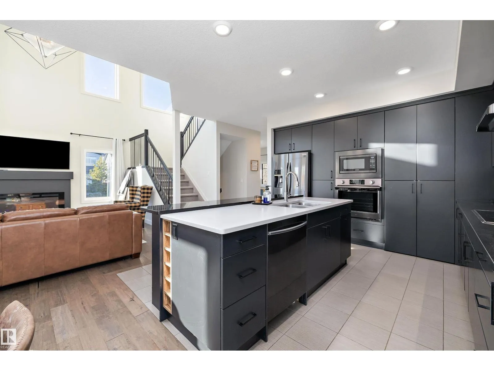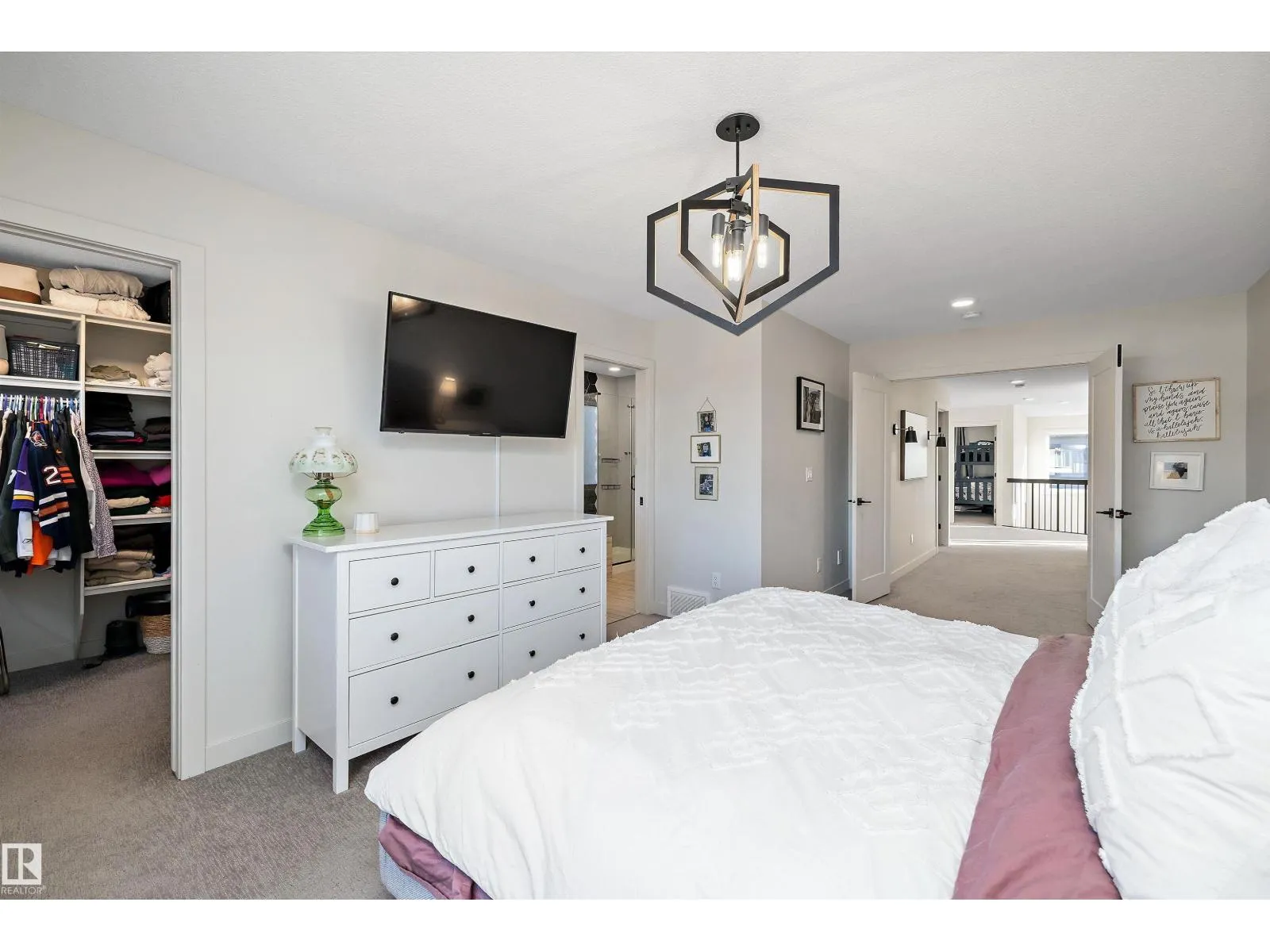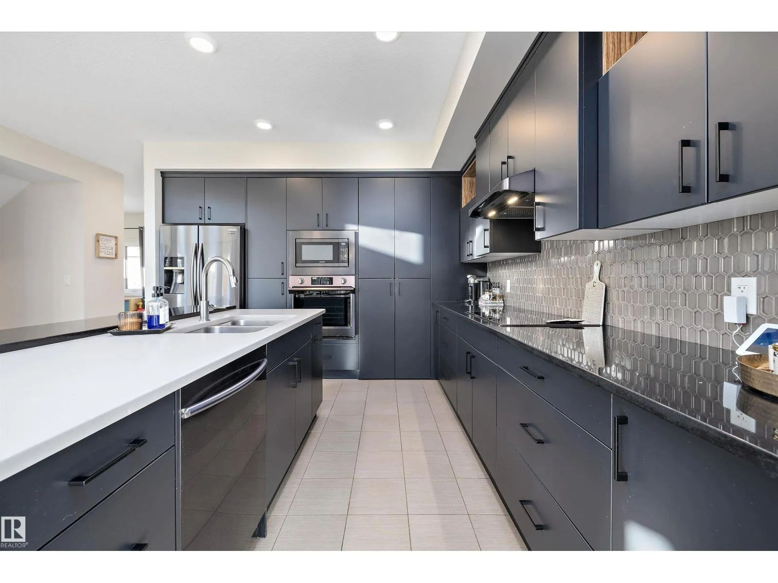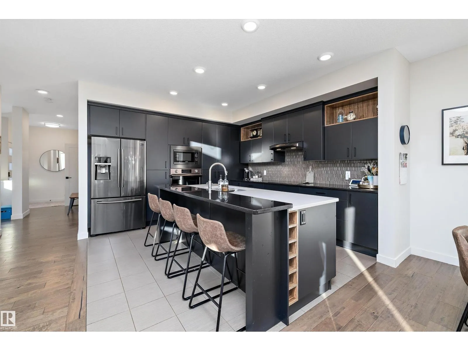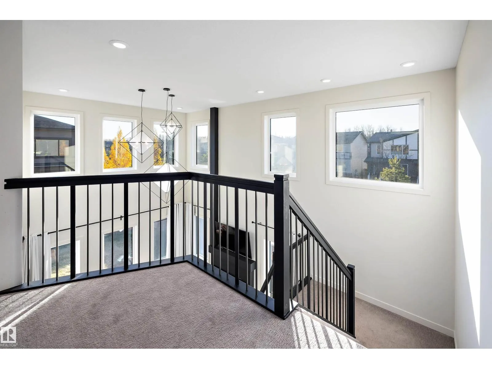 You will be impressed as soon as you drive up to this striking 2-story home boasting a stylish modern exterior profile with exposed aggregate concrete. The main floor opens to a bright den and convenient two-piece powder room off the garage mud room with built-in storage. A sleek modern kitchen with built-in appliances, including induction stove, flows into the dining area & stunning two-story great room with floor-to-ceiling windows and a cozy fireplace. The elegant staircase leads to a spacious bonus room, 2 generous bdrms, UPSTAIRS LAUNDRY, a full bath, and a dreamy primary retreat with w/i closet and 5-piece ensuite. Being on a corner lot, this home offers an abundance of windows that fill the home with natural light. Complete with a double attached garage with epoxy flooring & a landscaped backyard. Offering A/C and gas outlet for Bbq. Located on the east side of Spruce Grove, just 15 min from Edmonton, & walking distance to Jubilee Park, this beautiful corner-lot home is ready for your family! (id:27476)