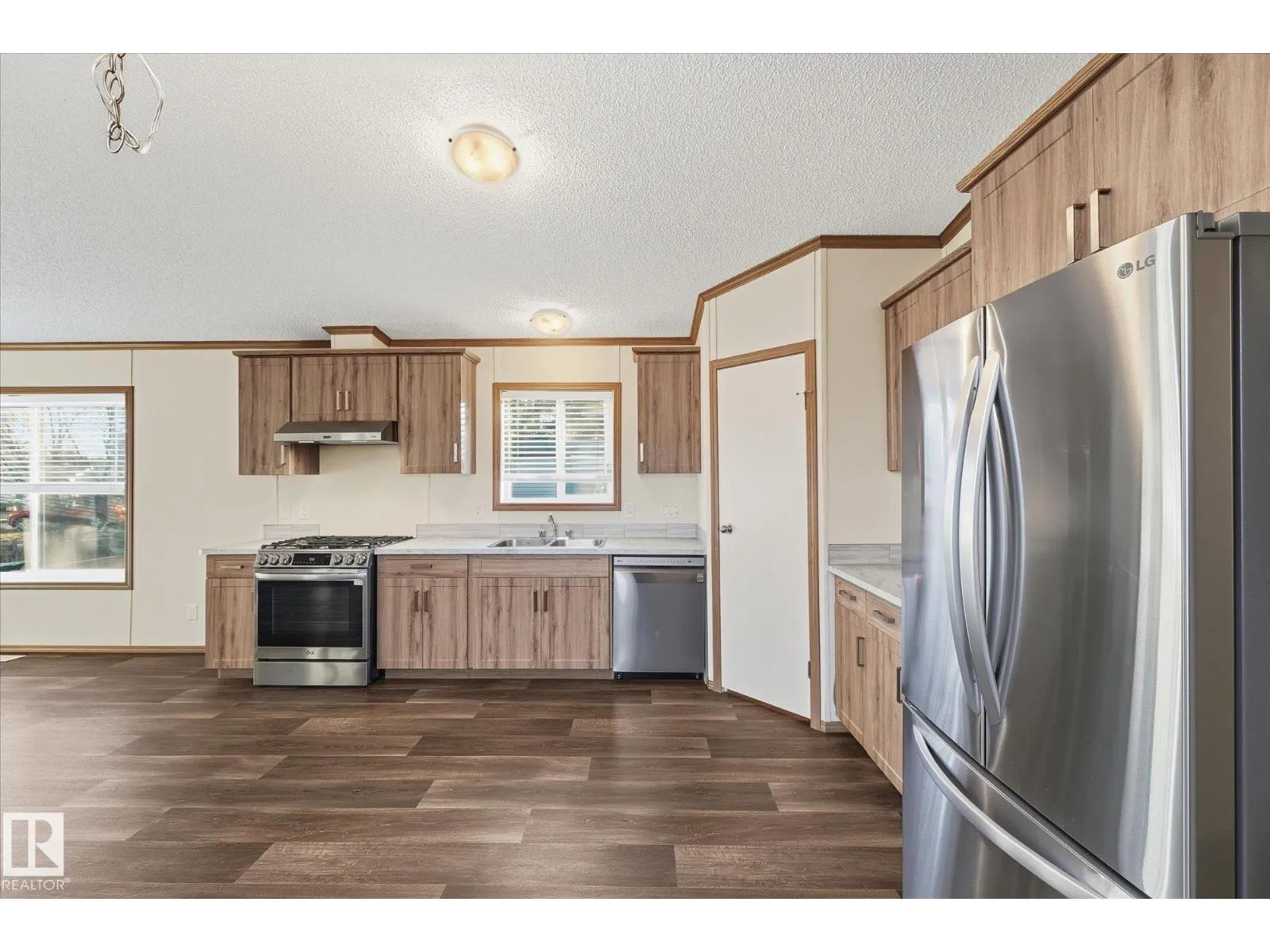 Welcome to Mobile City Estates in Spruce Grove! This 2021-built 3-bed, 2-bath manufactured home offers over 1,000 sq. ft. of bright, open living space and has had only one owner. The modern kitchen features a gas stove and plenty of cabinetry, opening to a spacious living area perfect for relaxing or entertaining. The primary suite includes a full ensuite, with two additional bedrooms offering great flexibility. Enjoy a huge fully fenced yardâideal for pets, kids, or gardening. Just a 2-minute walk to Westland Market Mall, youâre close to shopping, groceries, dining, and public transit. A perfect blend of comfort, convenience, and value in a desirable community! (id:27476)