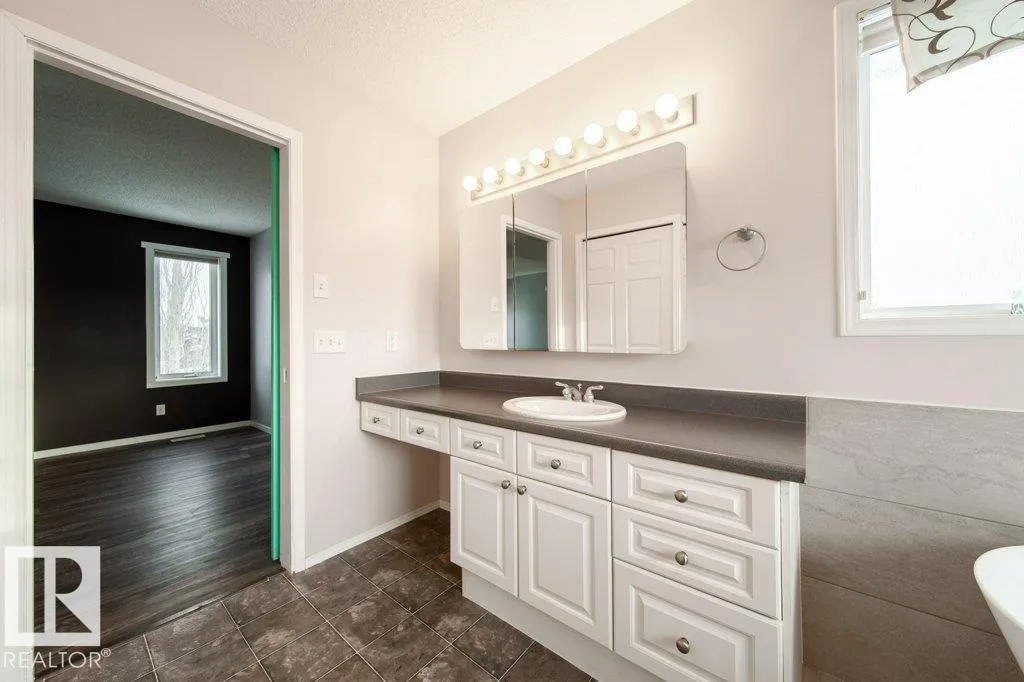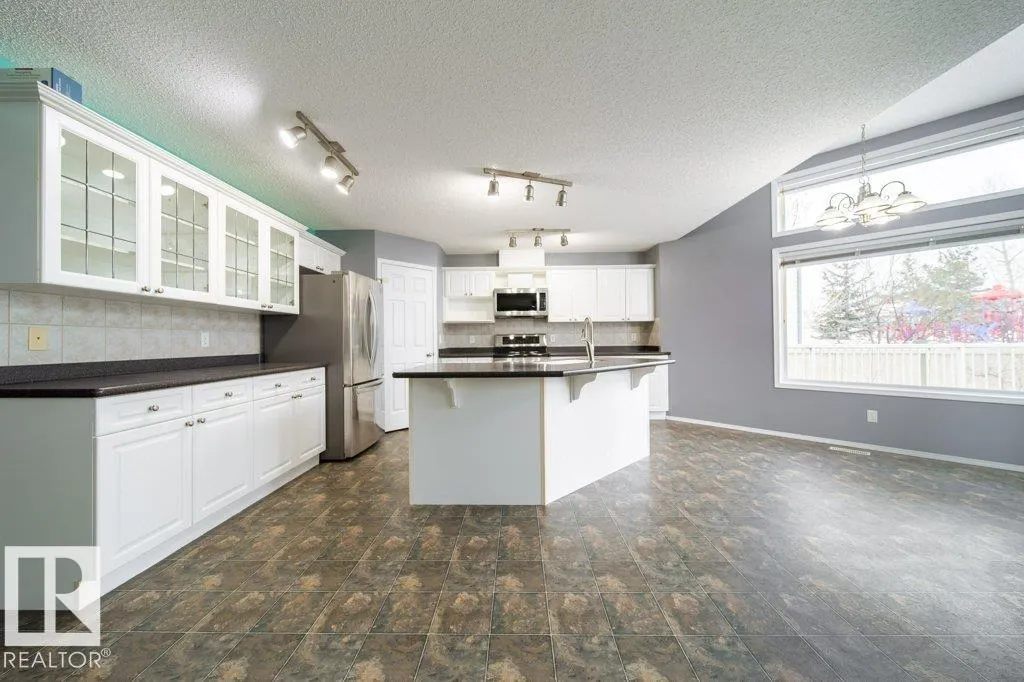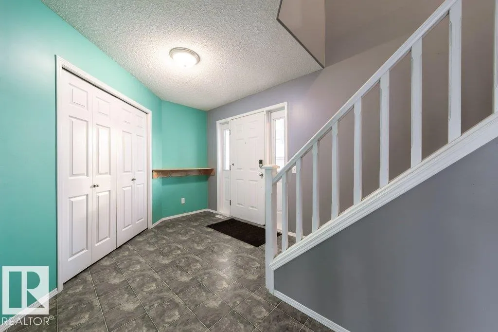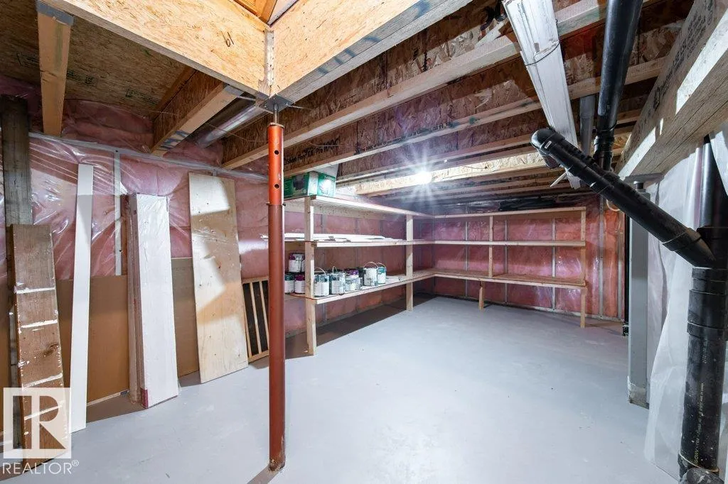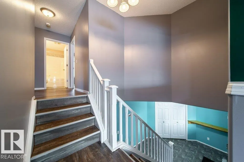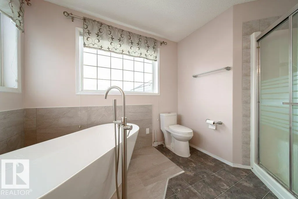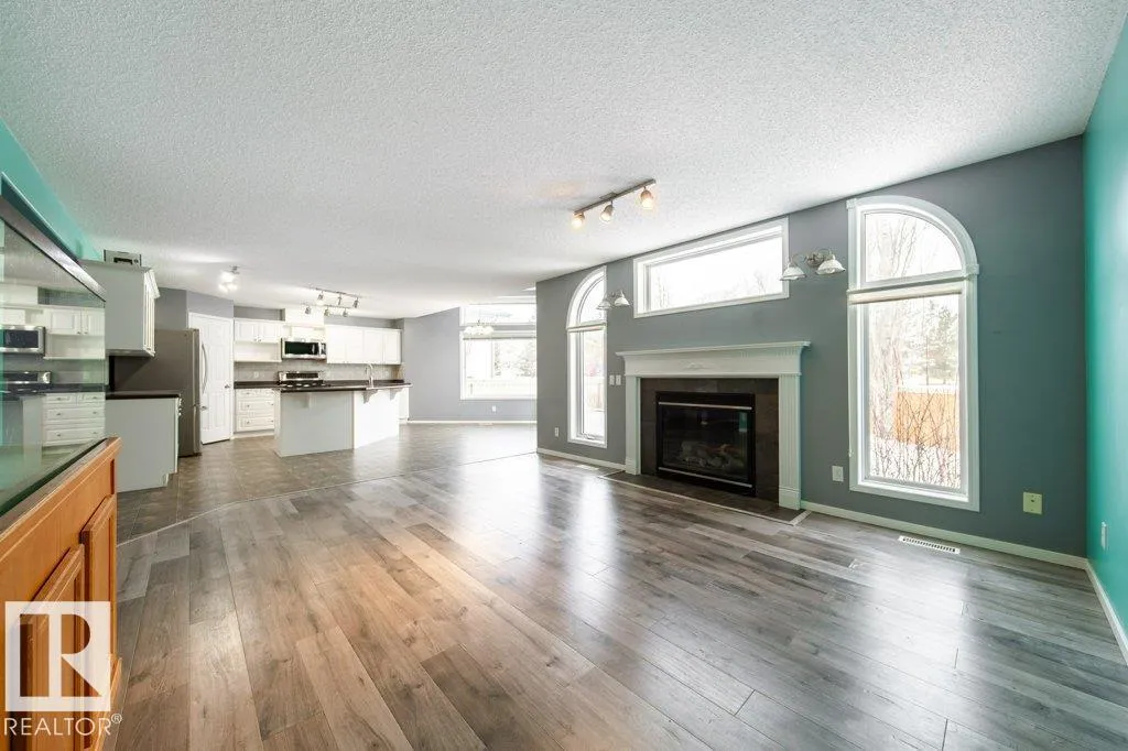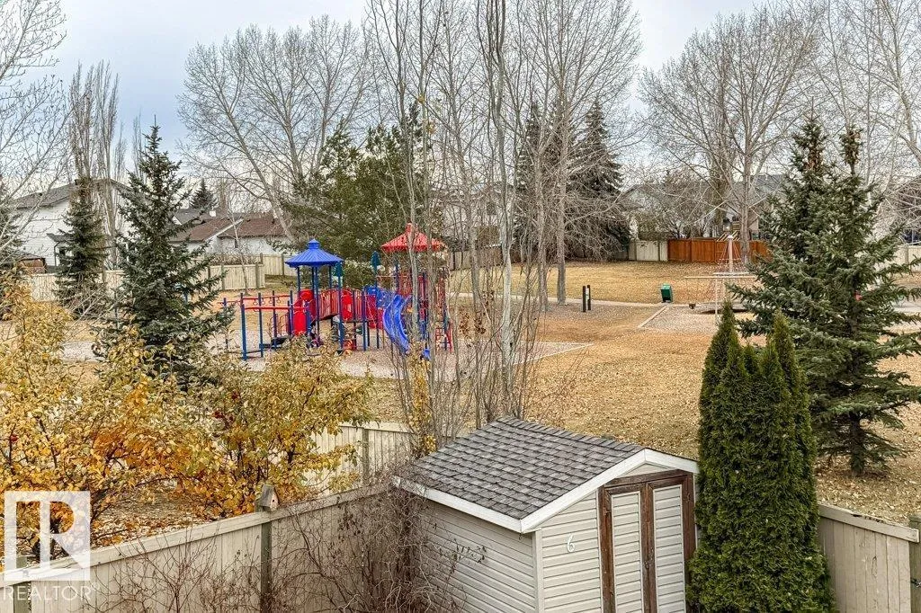 Backing directly onto parkland and scenic walking trails, this well-built 2-storey home offers 2,056 sq. ft. of living space in a quiet cul-de-sac. Located on a large pie-shaped lot with no rear neighbours, the property delivers privacy, green space views, and exceptional outdoor enjoyment. The main floor features an open-concept kitchen with island and corner pantry, a bright dining nook with direct access to a spacious 312 sq. ft. deck overlooking the park, and a functional mudroom with main-floor laundry and a 2-piece bath conveniently located off the double attached garage. Upstairs includes three generous bedrooms, highlighted by a spacious primary retreat with walk-in closet and private ensuite. A vaulted bonus room with a built-in window bench creates the perfect family or flex space. The fully finished basement adds a fourth bedroom, a 3-piece bathroom, and a large recreation room. Ideally located with quick access to Highway 16A, commuting to Edmonton and surrounding communities is easy while (id:27476)