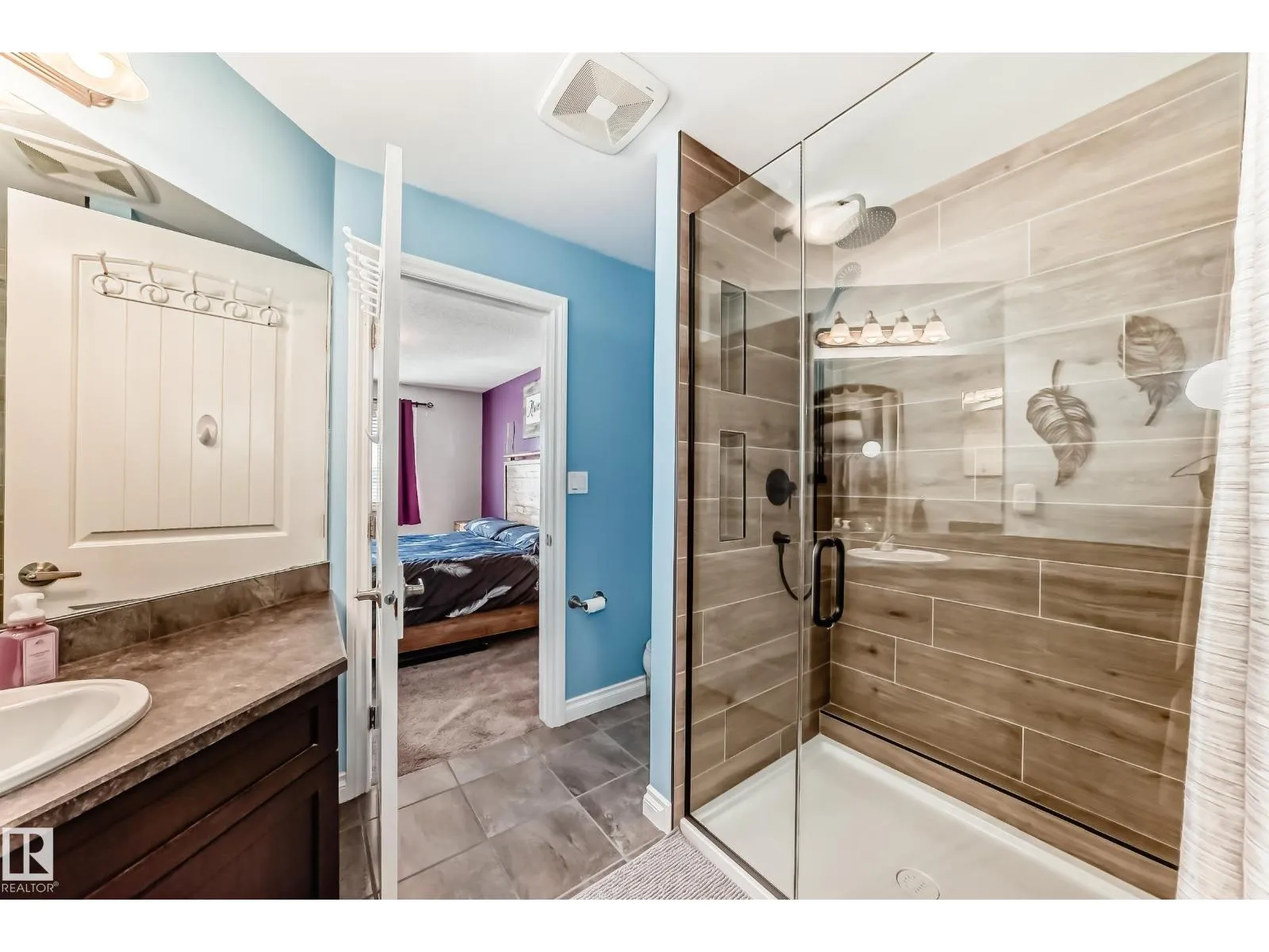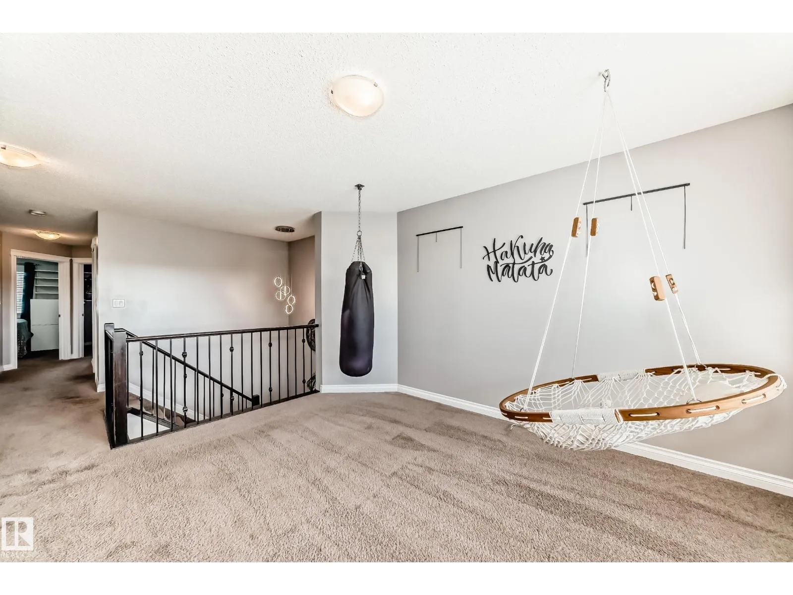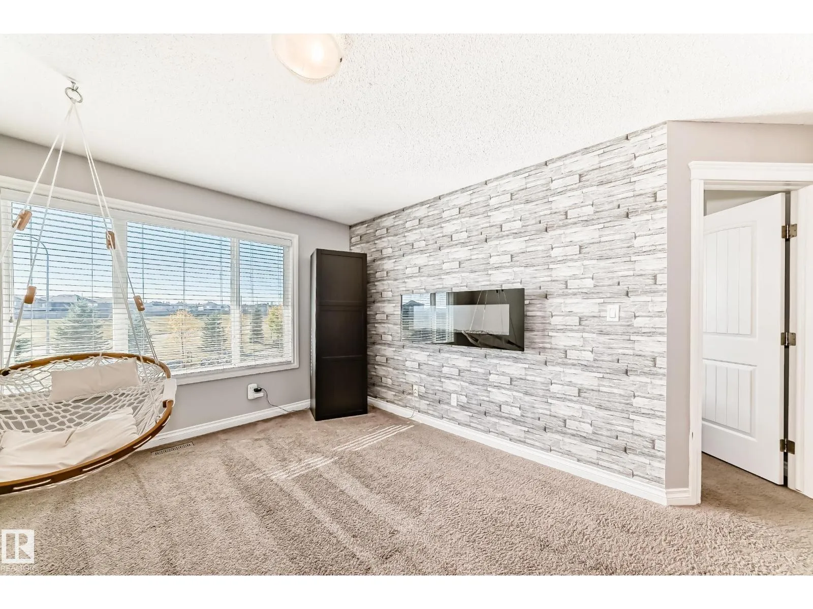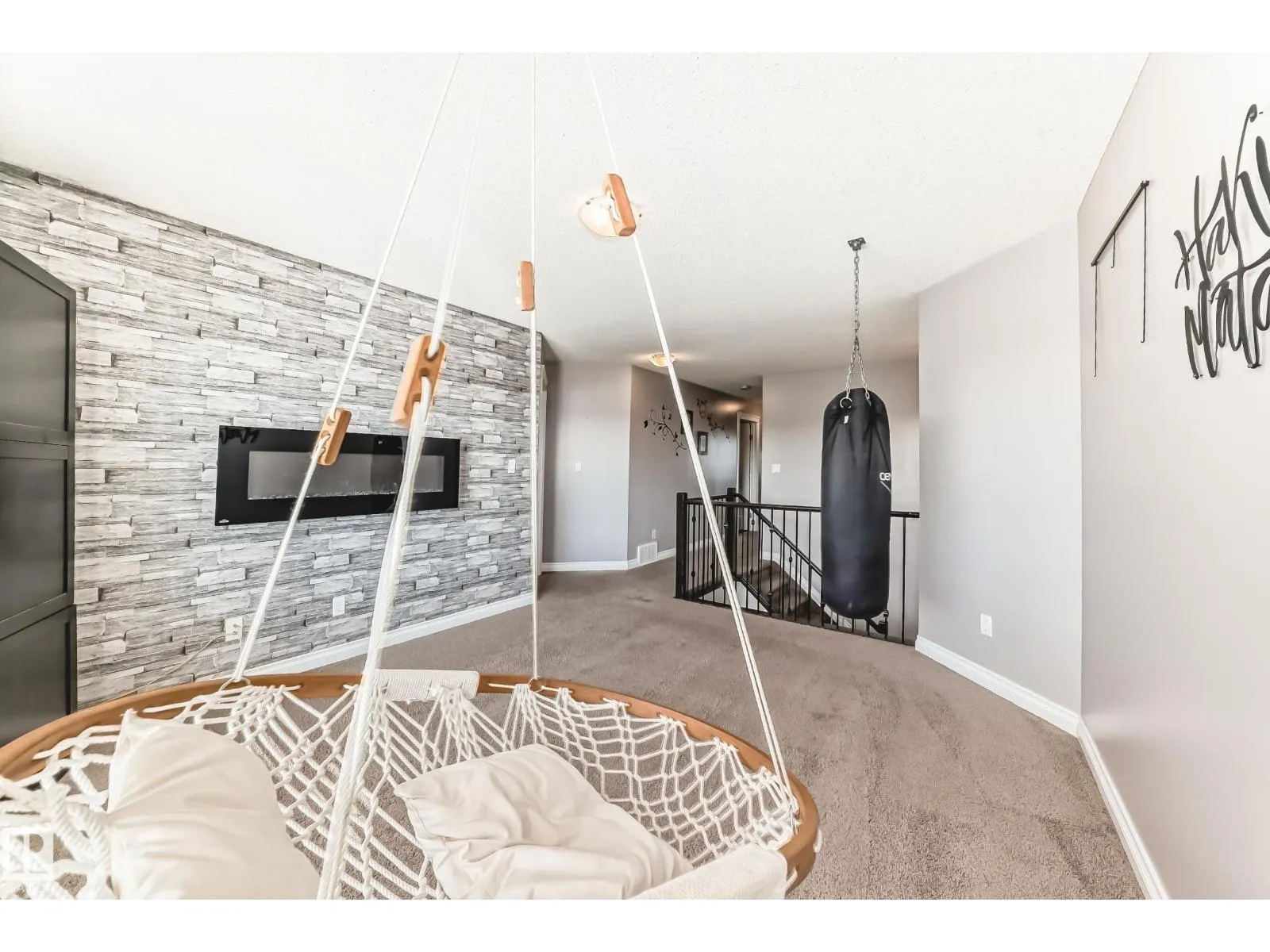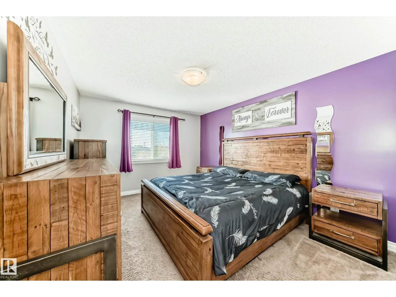 Discover luxurious living in the heart of Harvest Ridge, Spruce Grove. This stunning FULLY FINISHED half duplex merges contemporary design with elevated style across its spacious layout. Nestled on a reverse pie lot, this home seamlessly integrates indoor and outdoor relaxation. This home offers 3+2 beds, 4 baths, airy bonus room upstairs and a fully finished bsmt. The primary bedroom is true paradise and overlooks the backyard oasis; the ensuite has a newly installed modern tiled shower and walk in closet. The home has been well cared for and updated over the years with central AC, bonus room accent wall with nice views and mudroom barn doors. The beautifully finished bsmt has 1 bedroom and one other flex space + half bath. Step outside to your own private oasis, hot tub, garden beds, composite deck, firepit and backing onto a park area. Laundry is on the upper floor. NEW washer, dryer and dishwasher. Prime location in Harvest Ridge and nestled in a cul-de-sac where tranquil vibes are on the daily. (id:27476)