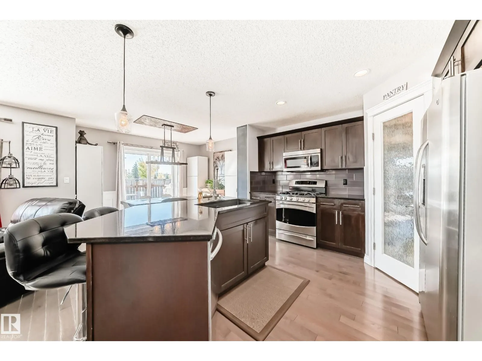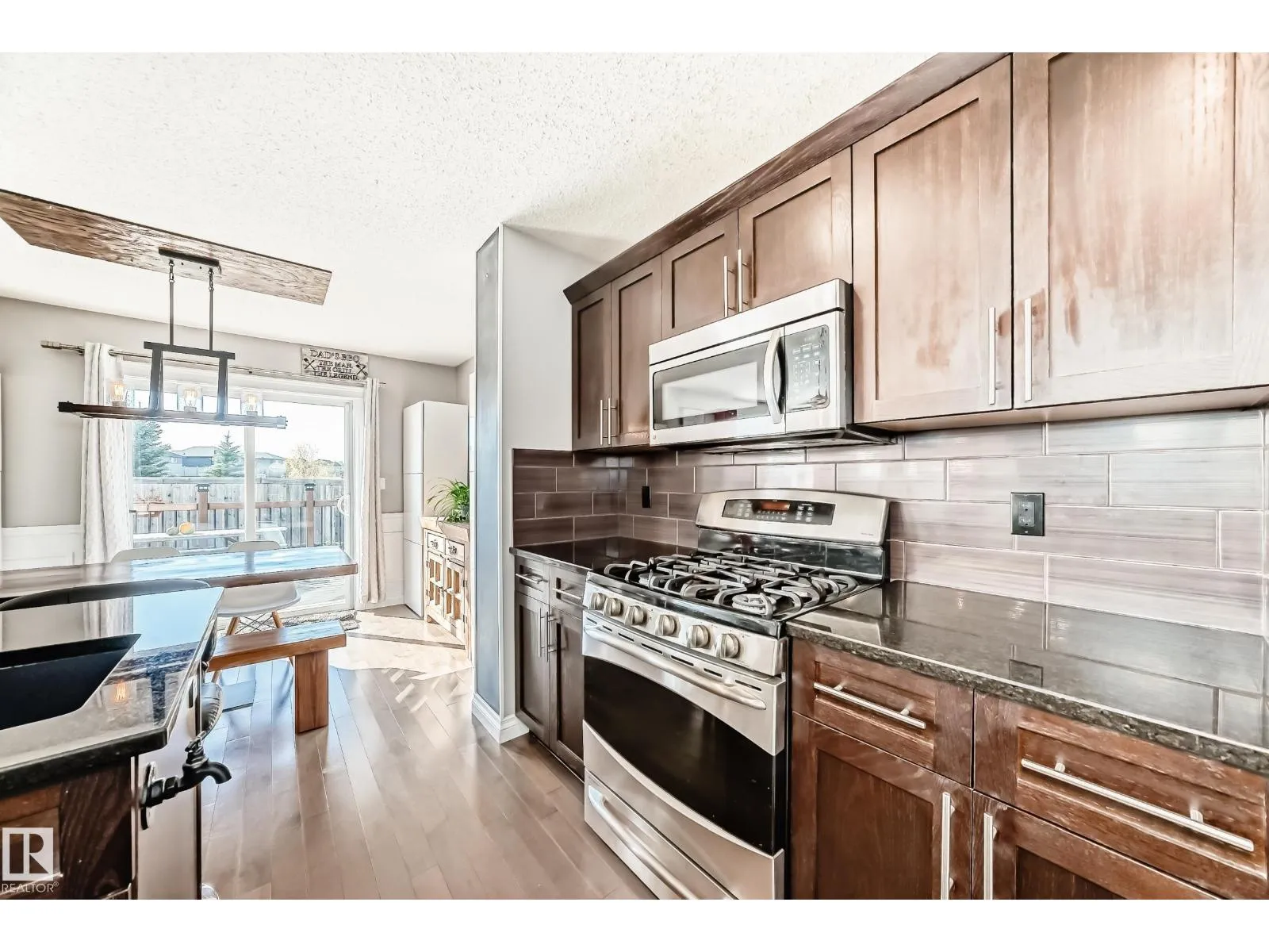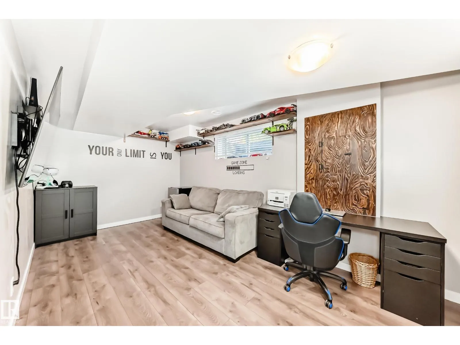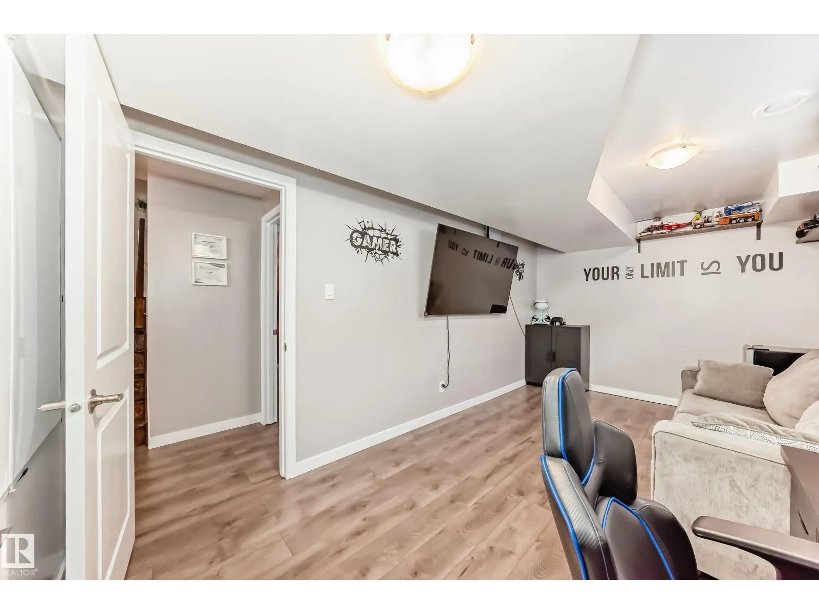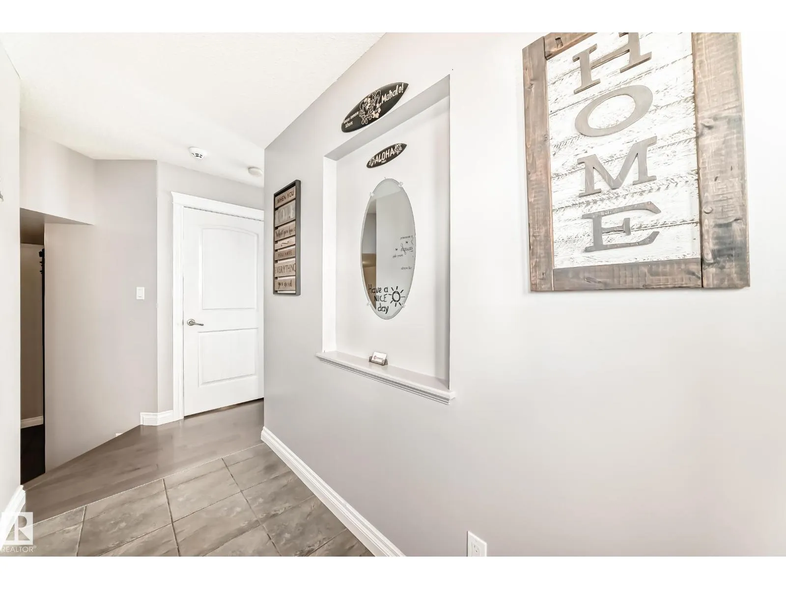 Discover luxurious living in the heart of Harvest Ridge, Spruce Grove. This stunning FULLY FINISHED half duplex merges contemporary design with elevated style across its spacious layout. Nestled on a reverse pie lot, this home seamlessly integrates indoor and outdoor relaxation. This home offers 3+2 beds, 4 baths, airy bonus room upstairs and a fully finished bsmt. The primary bedroom is true paradise and overlooks the backyard oasis; the ensuite has a newly installed modern tiled shower and walk in closet. The home has been well cared for and updated over the years with central AC, bonus room accent wall with nice views and mudroom barn doors. The beautifully finished bsmt has 1 bedroom and one other flex space + half bath. Step outside to your own private oasis, hot tub, garden beds, composite deck, firepit and backing onto a park area. Laundry is on the upper floor. NEW washer, dryer and dishwasher. Prime location in Harvest Ridge and nestled in a cul-de-sac where tranquil vibes are on the daily. (id:27476)