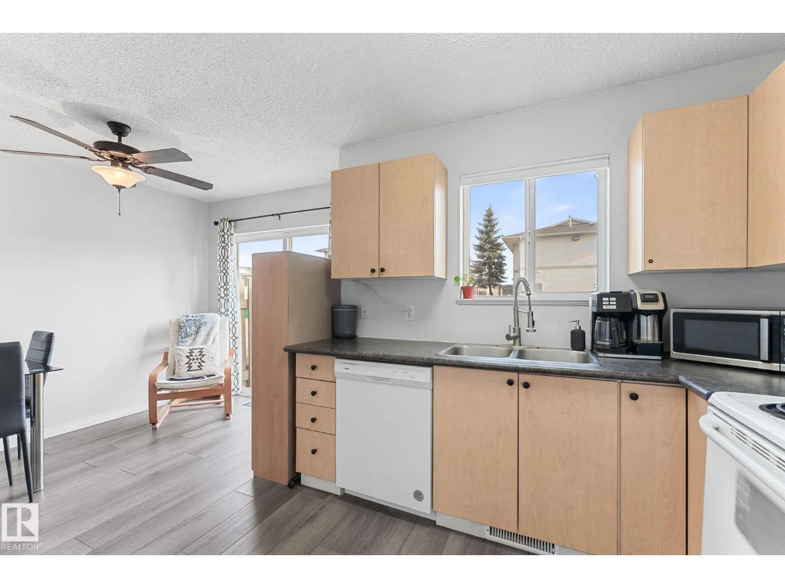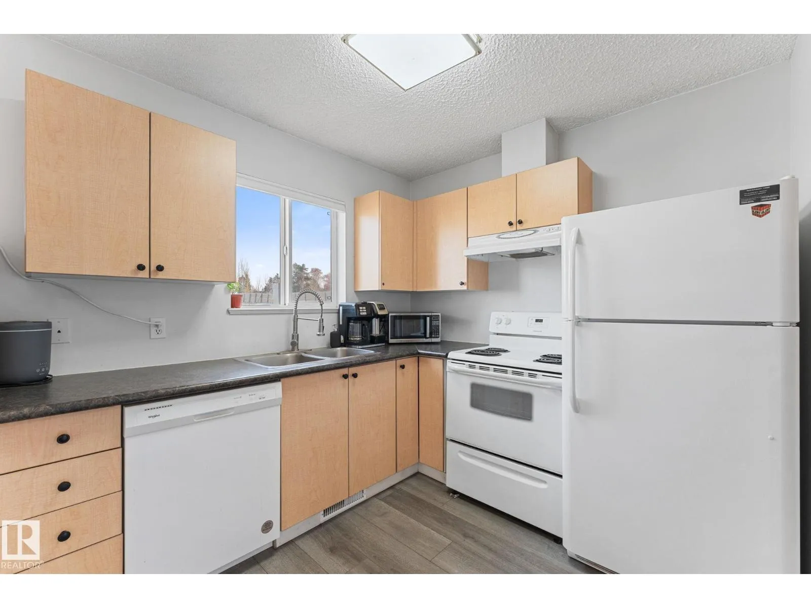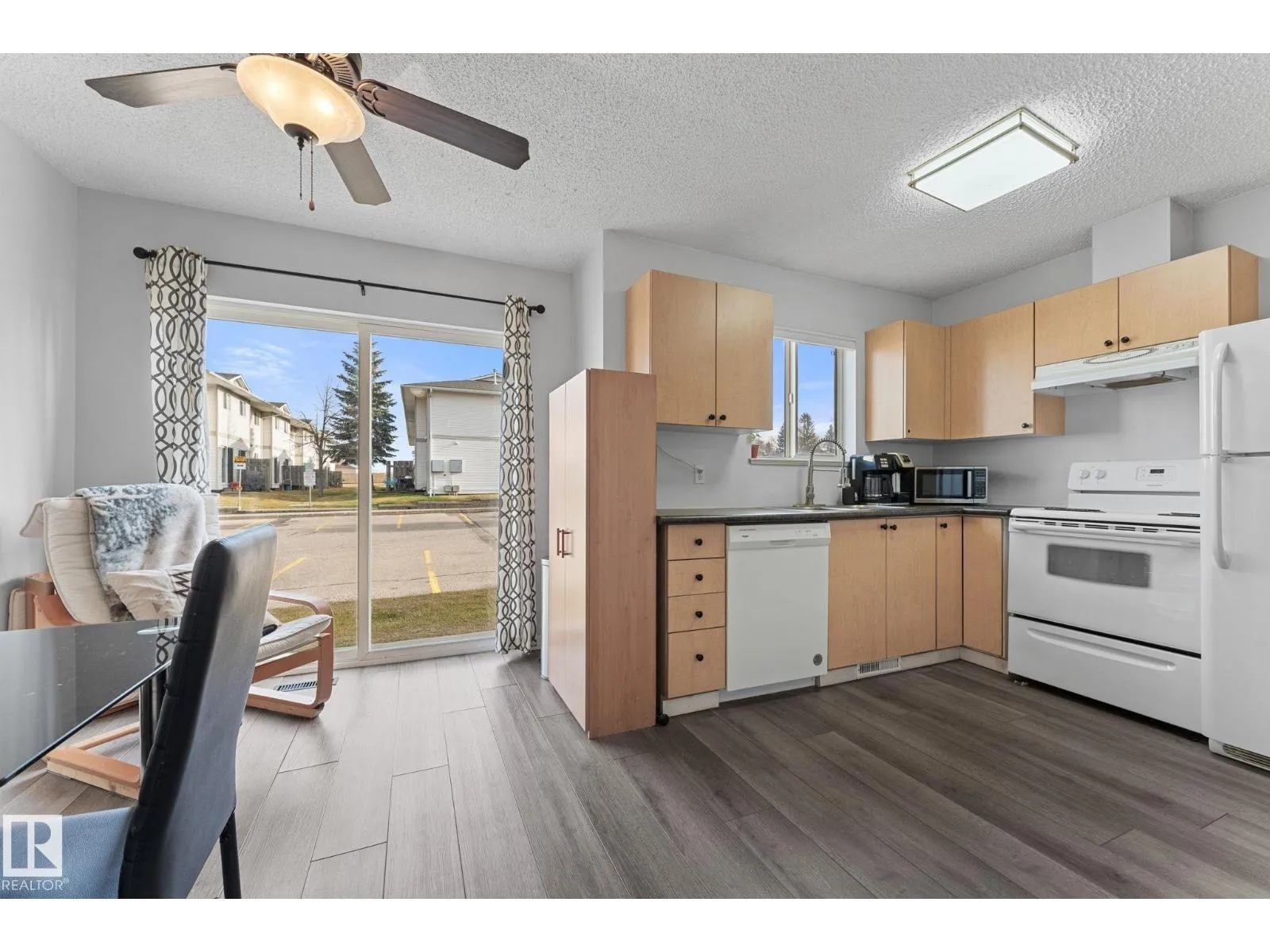 Welcome to this charming 2 bedroom, 1.5 bath end unit townhouse in Spruce Grove, perfect for first-time buyers or investors! The main floor offers a bright and spacious living room, dining area, functional kitchen, convenient half bath, and in-suite laundry. Upstairs, youâll find two generous bedrooms and a full bathroom. This home features huge windows with lots of natural light, and vinyl plank flooring throughout for a modern, low-maintenance finish. Recent upgrades include a new washer/dryer in 2024. Located in a quiet, family-friendly community close to schools, parks, walking trails, and quick access to Highway 16, this home combines comfort, convenience, and value. Move-in ready and truly a must-see! (id:27476)