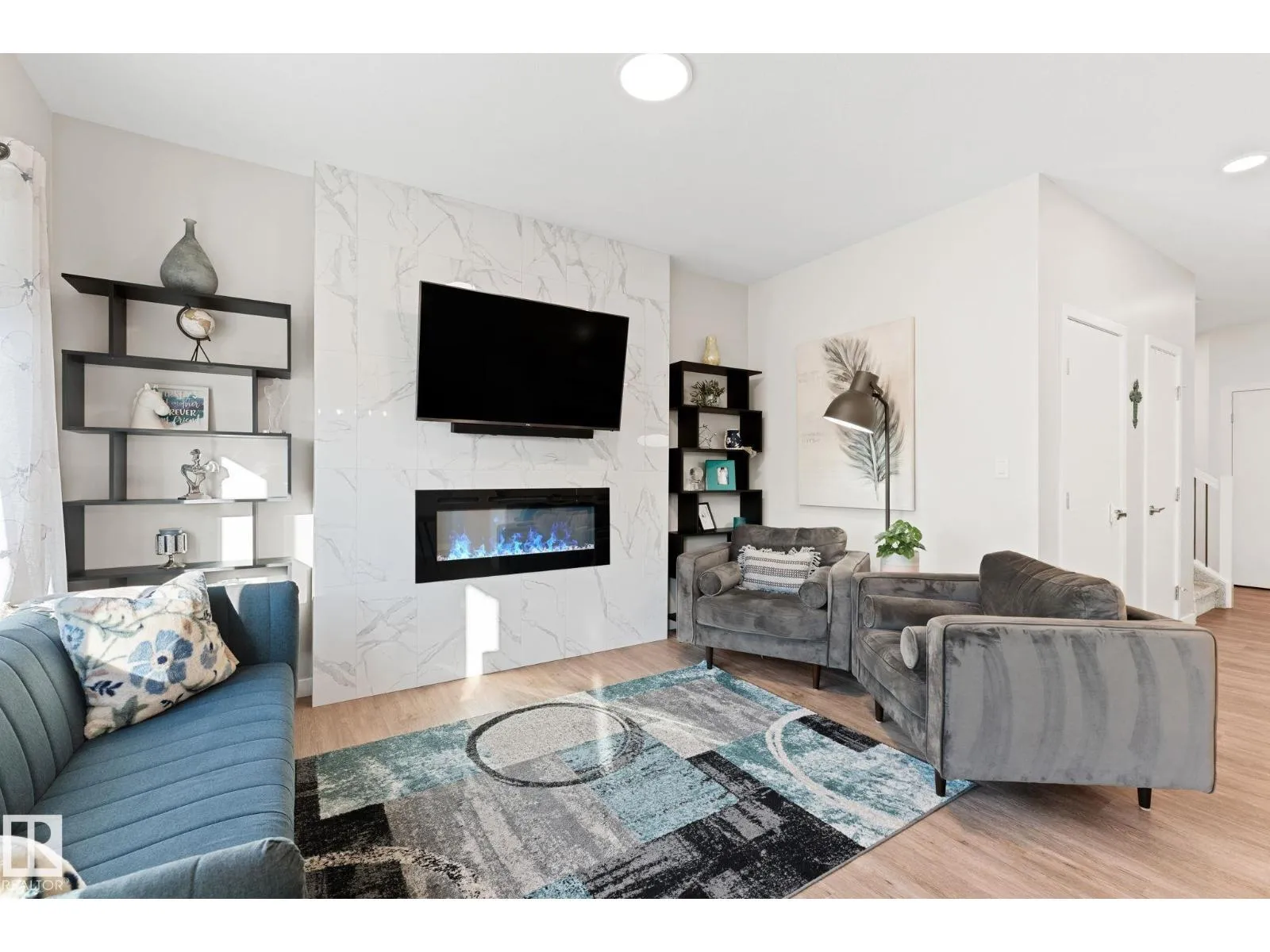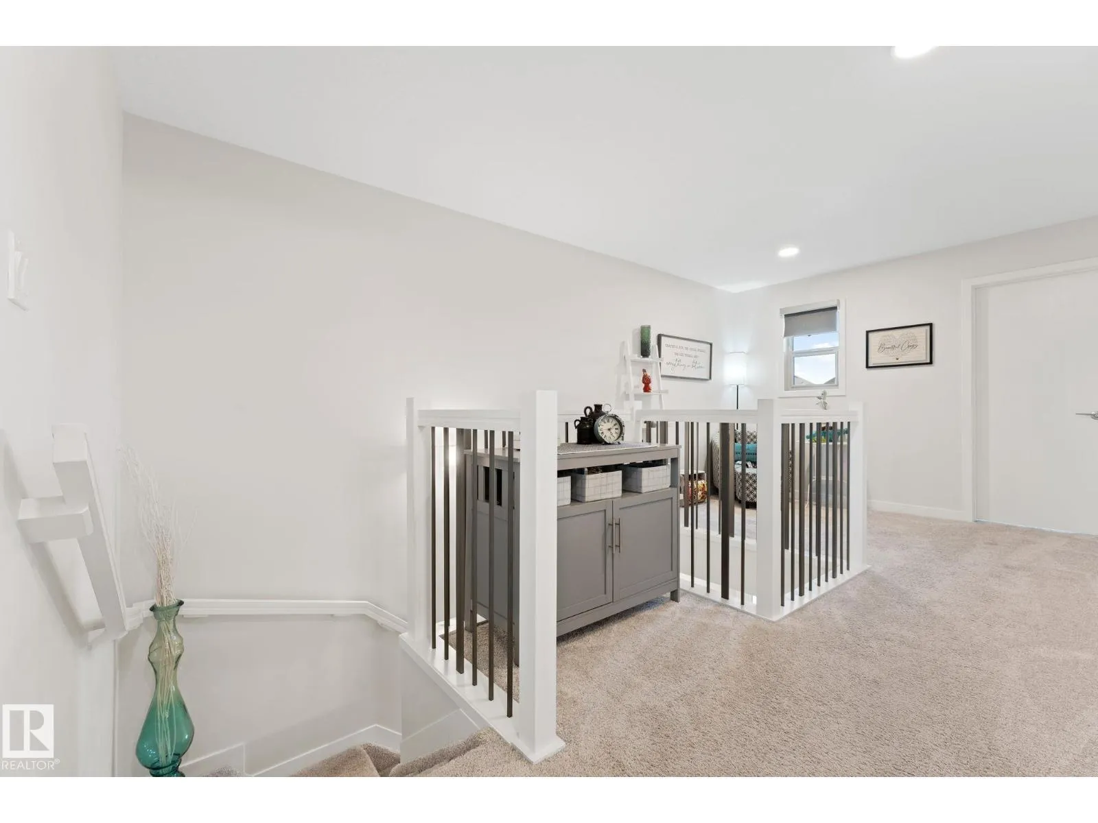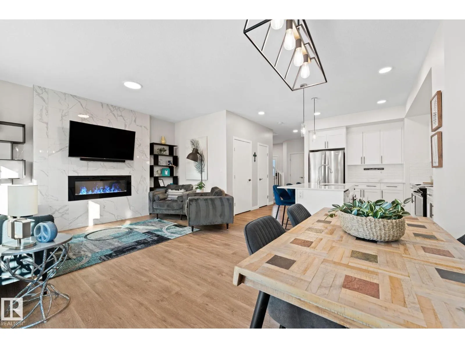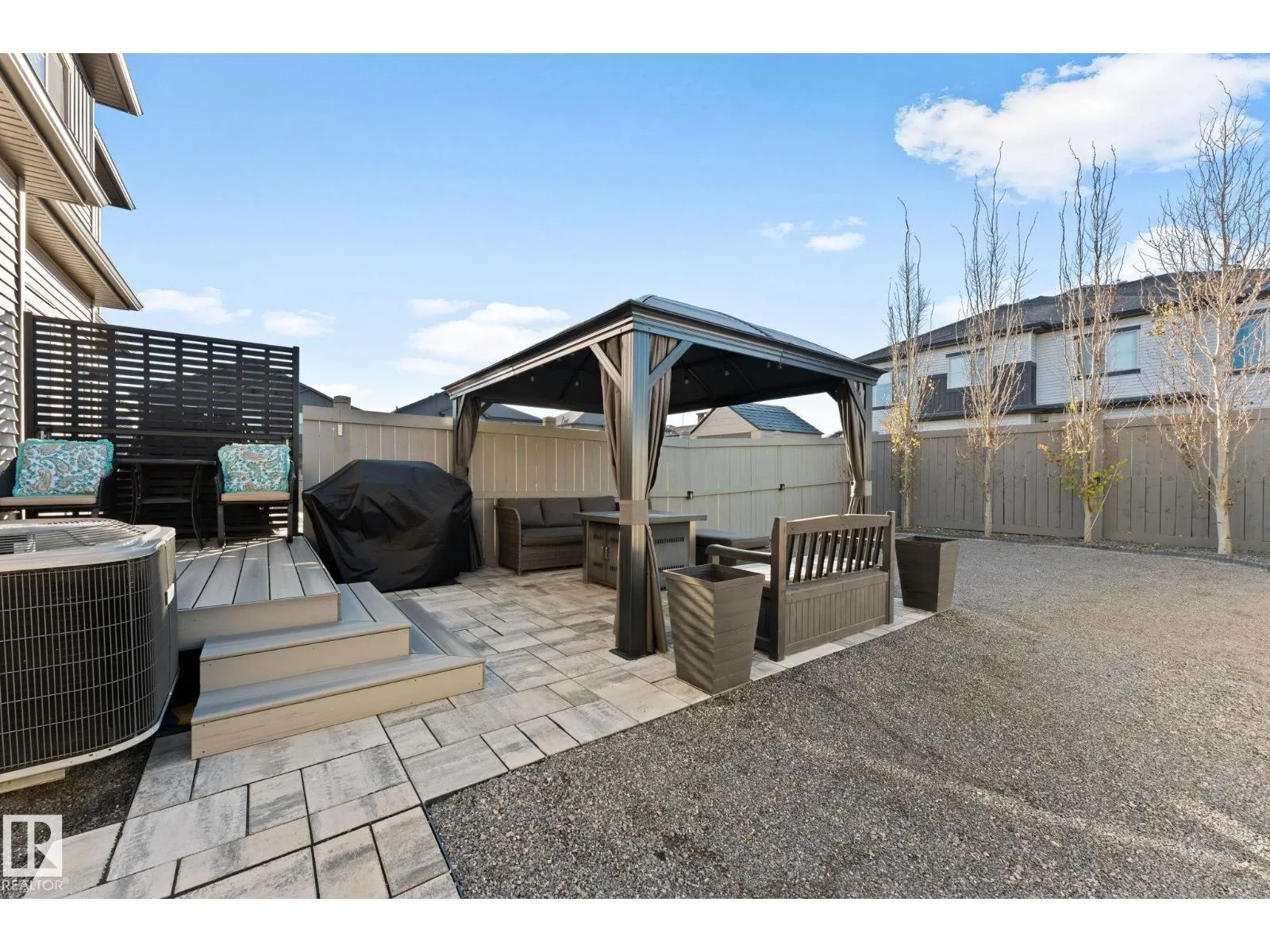 Welcome to this stunning Cantiro-built half duplex in sought-after Greenbury, offering nearly 1500sf of bright, modern living in a community known for charm and walkability. Fantastic curb appeal and an inviting open concept main floor featuring 9â ceilings, vinyl plank flooring and an airy kitchen with quartz counters, centre island and pantry. Enjoy the cozy fireplace in the living room and easy access from the dining nook to the west-facing backyardâcomplete with composite deck, gazebo with stone patio and low-maintenance landscaping, perfect for evening sun and bbq's. Upstairs offers a handy flex space ideal for a home office or study area, convenient upper laundry, two spacious secondary bedrooms, and a lovely primary suite with walk-in closet and 4pc ensuite. Fully finished double attached garage with storage. Great basement layout for future development. Steps to schools, parks, trails and close to commuter routes and amenities. Pristine Living with modern style and total comfort throughout! (id:27476)