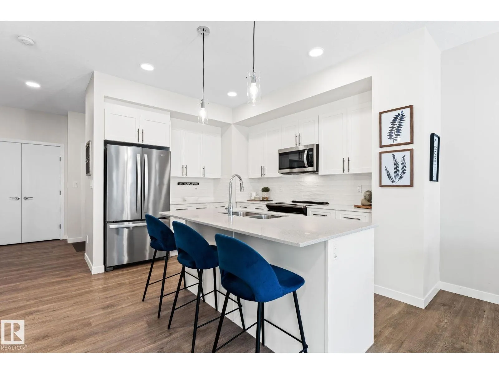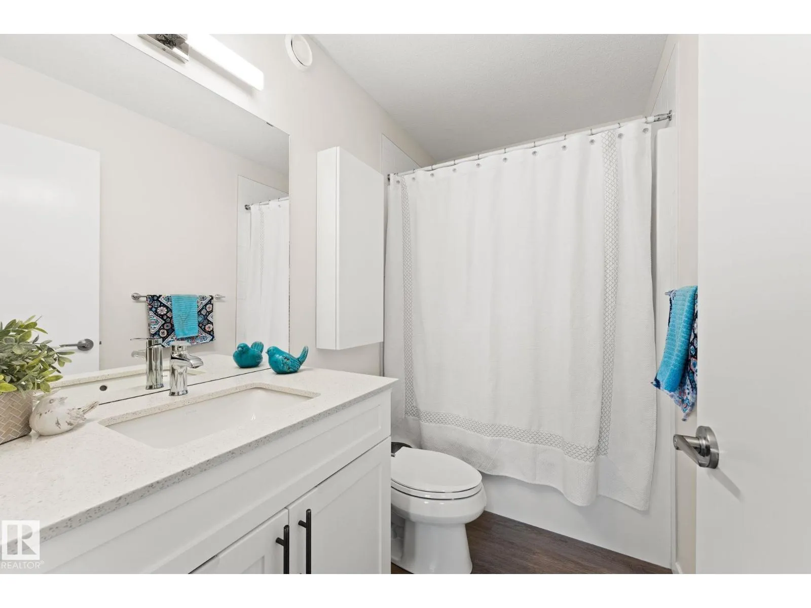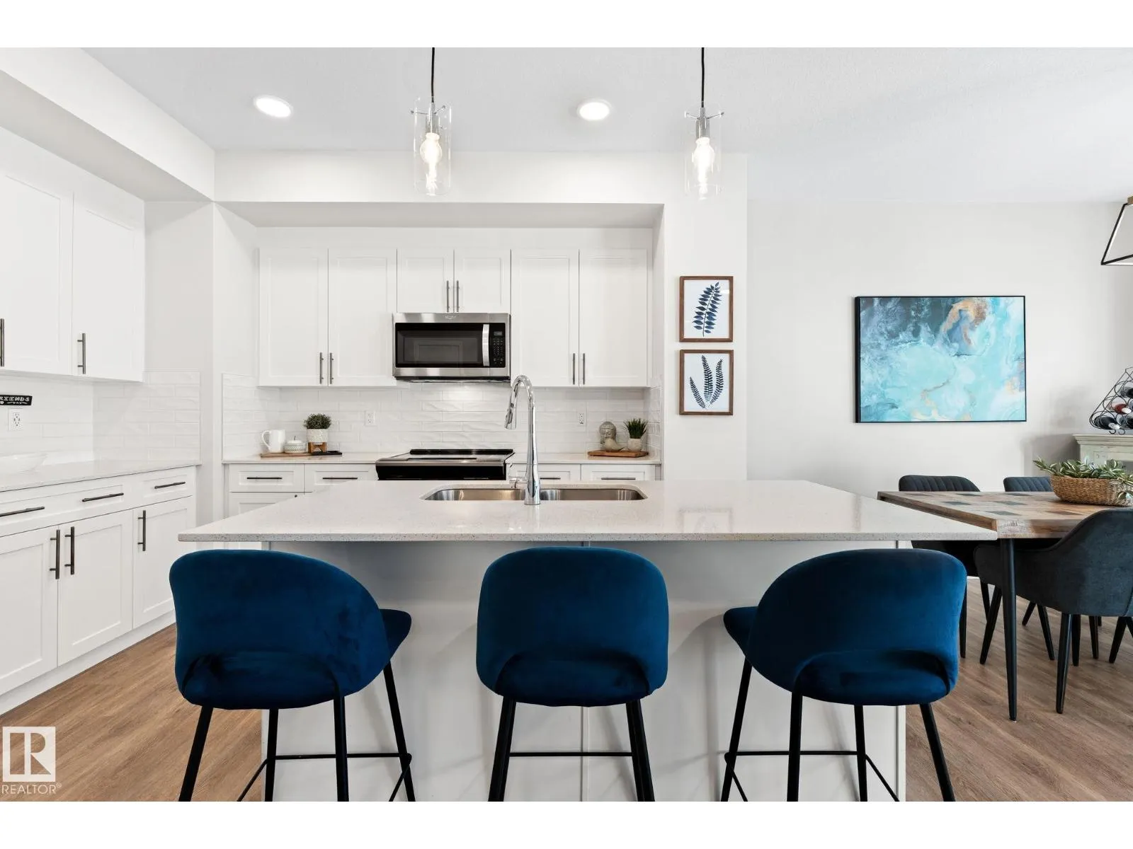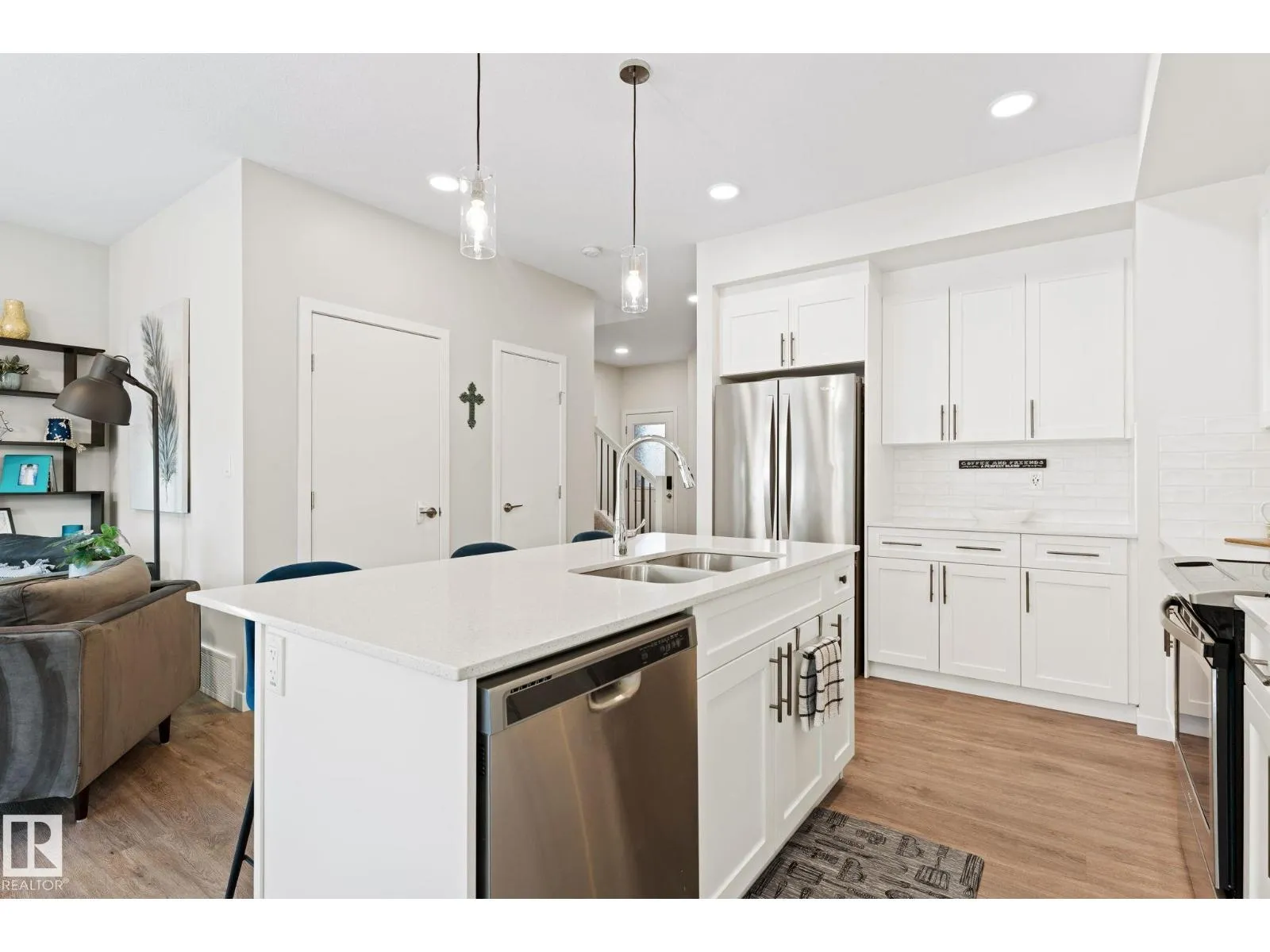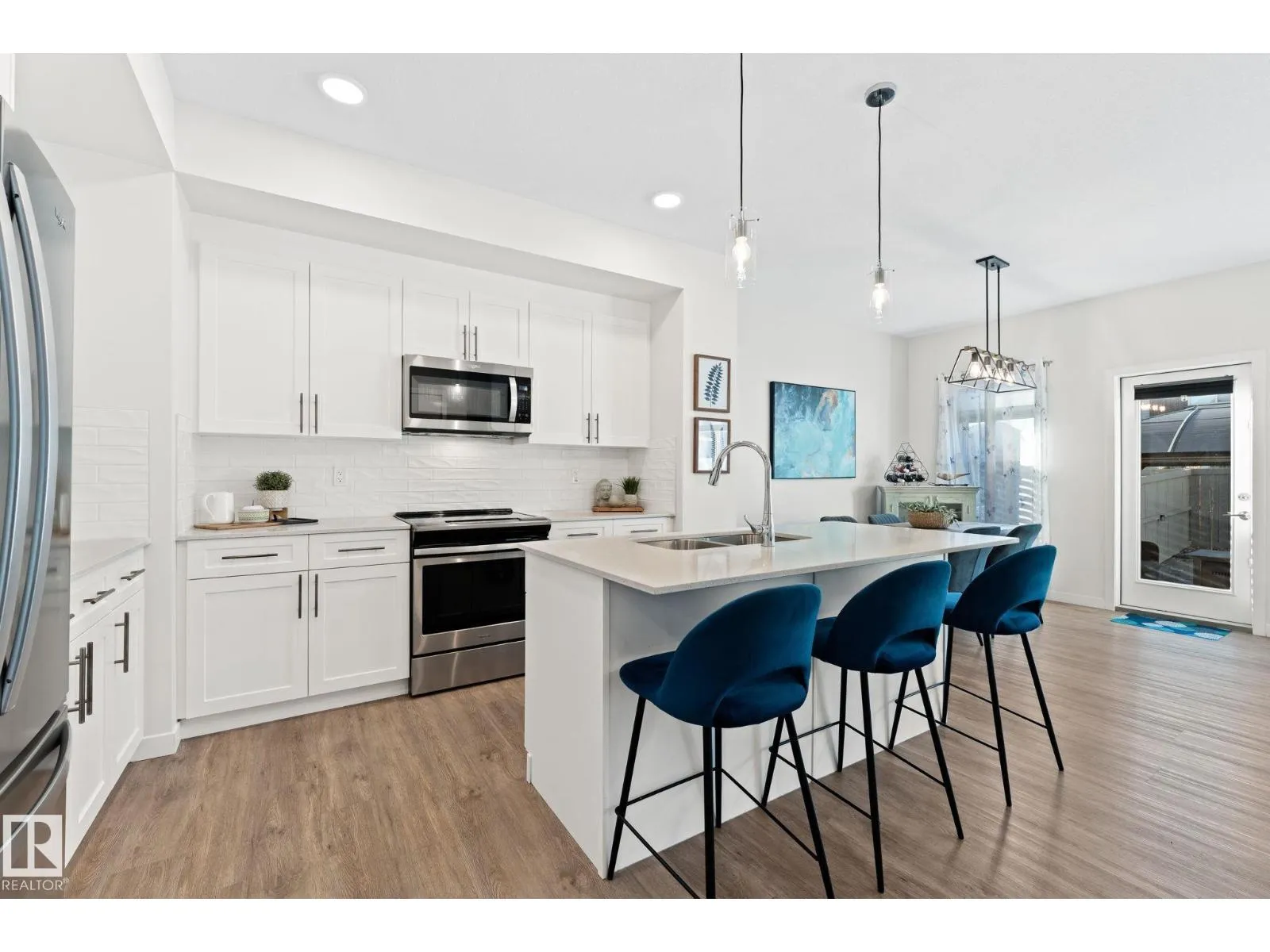 Welcome to this stunning Cantiro-built half duplex in sought-after Greenbury, offering nearly 1500sf of bright, modern living in a community known for charm and walkability. Fantastic curb appeal and an inviting open concept main floor featuring 9â ceilings, vinyl plank flooring and an airy kitchen with quartz counters, centre island and pantry. Enjoy the cozy fireplace in the living room and easy access from the dining nook to the west-facing backyardâcomplete with composite deck, gazebo with stone patio and low-maintenance landscaping, perfect for evening sun and bbq's. Upstairs offers a handy flex space ideal for a home office or study area, convenient upper laundry, two spacious secondary bedrooms, and a lovely primary suite with walk-in closet and 4pc ensuite. Fully finished double attached garage with storage. Great basement layout for future development. Steps to schools, parks, trails and close to commuter routes and amenities. Pristine Living with modern style and total comfort throughout! (id:27476)