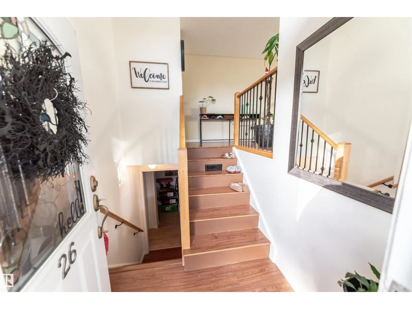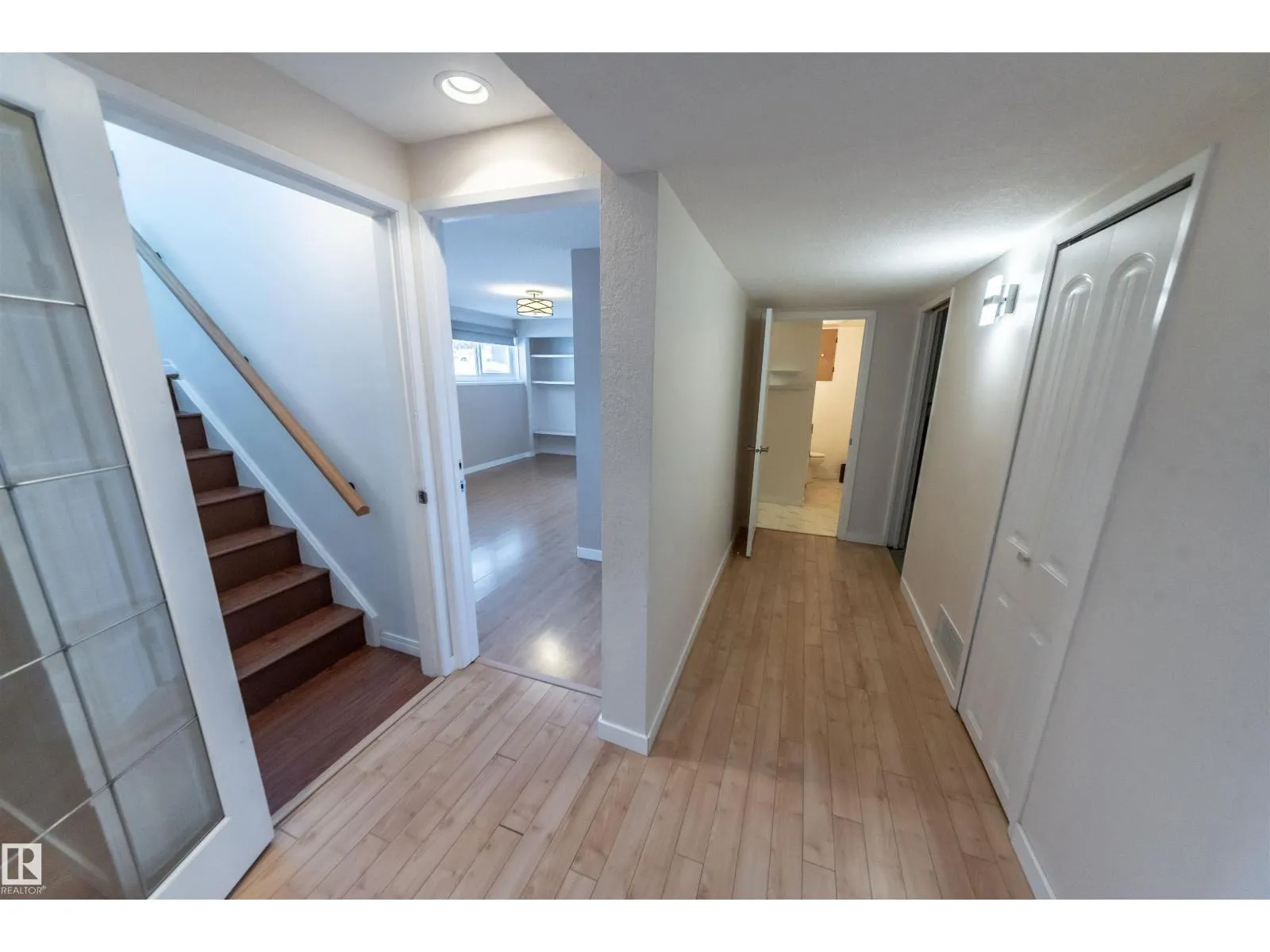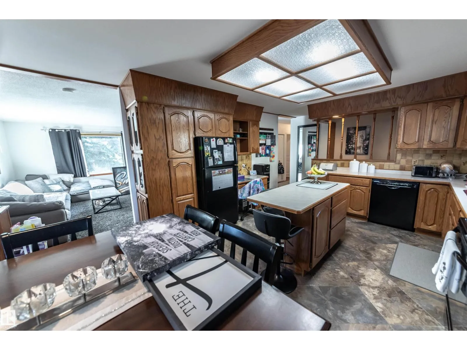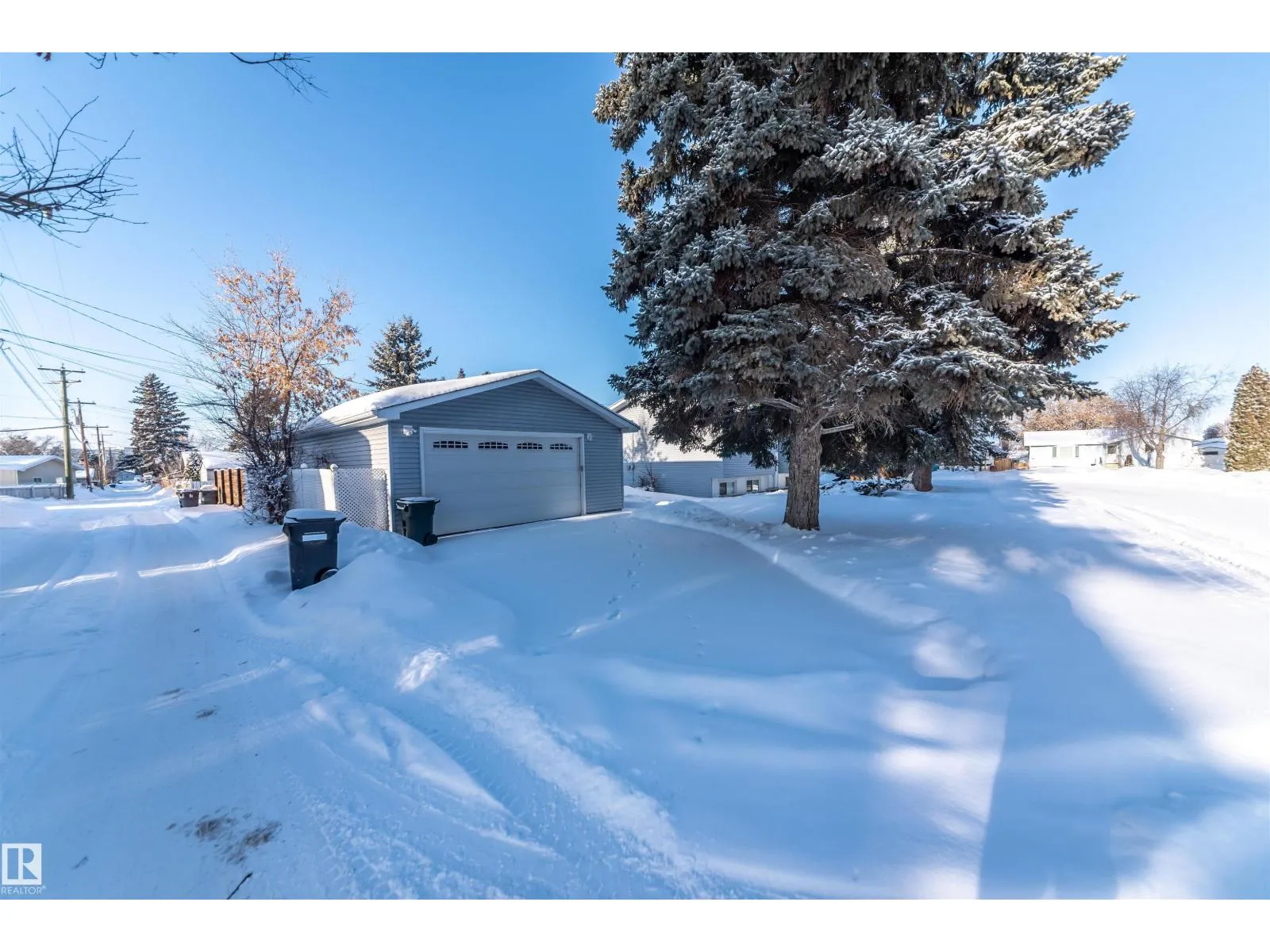 Beautifully renovated 4-bedroom bi-level offering over 2,200 sq ft of fully finished living space. The main floor features an upgraded kitchen with ample cabinetry and counter space, a spacious dining area, and a large, bright living room with plenty of natural light. There are 3 bedrooms and 2.5 baths on this level. The lower level includes a full second kitchen, a comfortable family room, and two additional bedrooms â perfect for extended family or guests. Updates include newer windows and flooring. Situated on a lovely corner lot surrounded by mature spruce trees, this property also offers an oversized double detached garage and is conveniently close to shopping and restaurants in Spruce Grove. (id:27476)