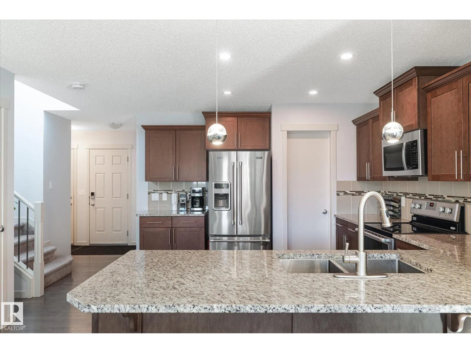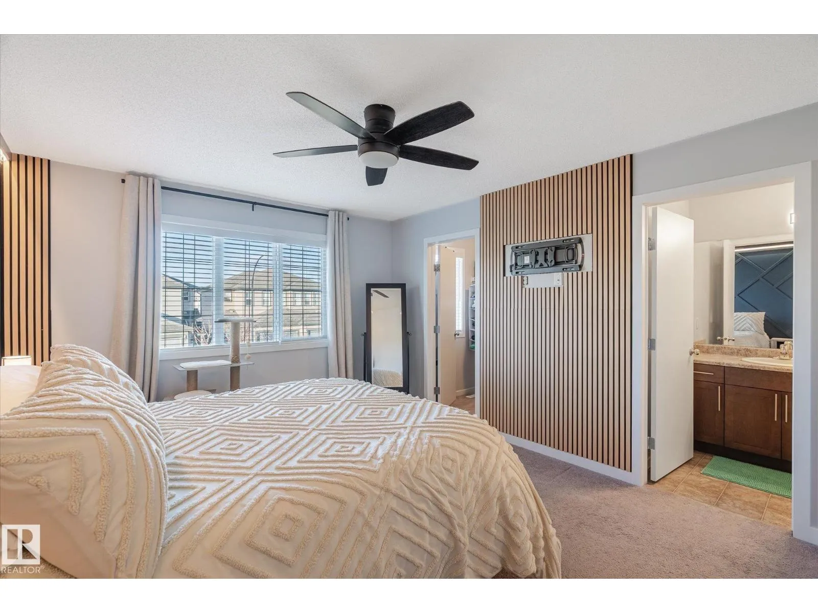 Welcome to the desirable and family-friendly community of Spruce Ridge. This immaculate half duplex offers the perfect blend of comfort, style, and practicality. Situated on a corner lot with ample yard space and no sidewalk to maintain, this home is ideal for families or those looking to downsize without compromising on quality. The main floor features an open-concept design with a spacious kitchen offering abundant cabinet and counter space, a bright dining area, and a welcoming living room with access to the beautifully landscaped backyard, complete with deck and patio. Upstairs, youâll find a wide hallway with desk area, a luxurious primary suite with upgraded insulation, a backlit feature wall, large walk-in closet, and a 4pc ensuite. A convenient second-floor laundry room, oversized linen closet, 2 add'l bedrooms and 4pc bath complete this level. The unfinished basement is ready for your personal touch. Close to schools, shopping and the Tri-Leisure Centre, this community has so much to offer! (id:27476)