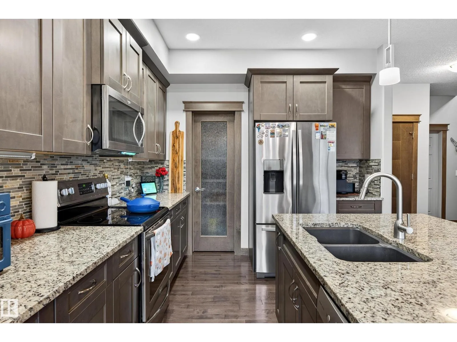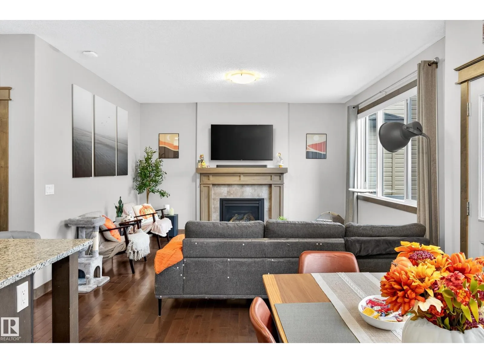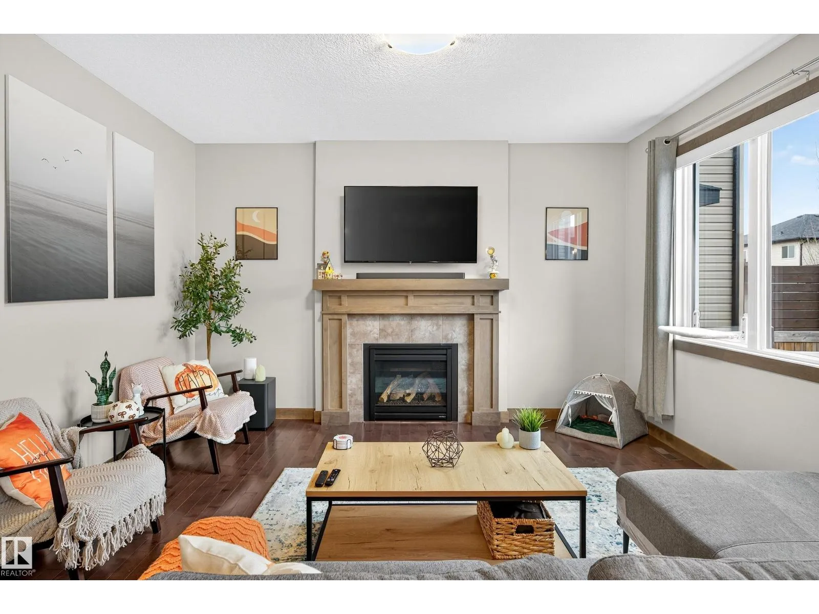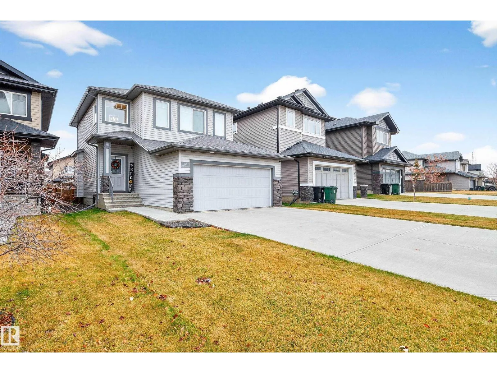 Welcome to Harvest Ridge! This highly sought-after community offers an exceptional lifestyle, featuring multiple parks, walking paths that now connect directly to Stony Plain, three nearby schools, a baseball diamond, soccer fields, and easy access to the highway â everything you need for comfortable suburban living. Built in 2014, this two-storey, 1,600sq. ft. home boasts a long driveway with no sidewalk to shovel in the winter. As spring approaches, youâll love spending time in the fully fenced and landscaped backyard, complete with a spacious deck, perfect for entertaining. Inside, the home is fully finished and features 3 bedrooms, 3.5 bathrooms, custom blinds throughout, granite countertops, a large upstairs laundry room, gas fireplace, and central A/C. This beautiful property combines comfort, convenience, and style, a must see opportunity! (id:27476)