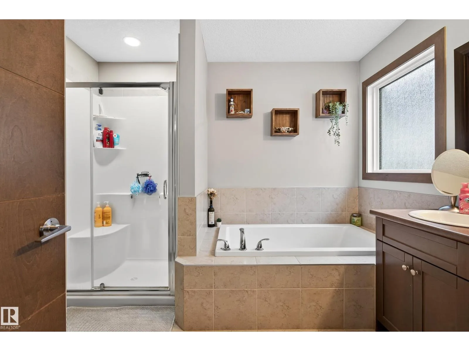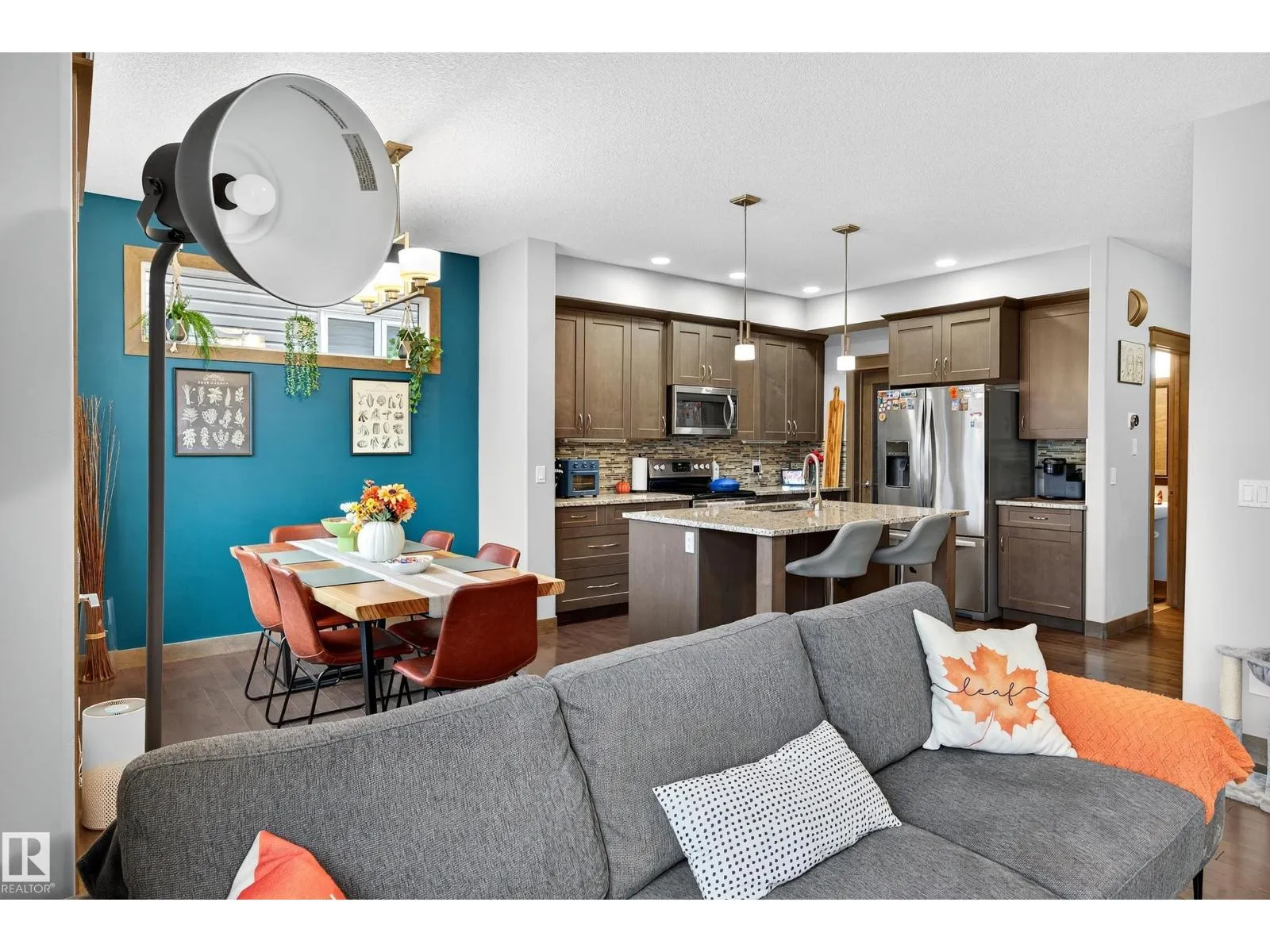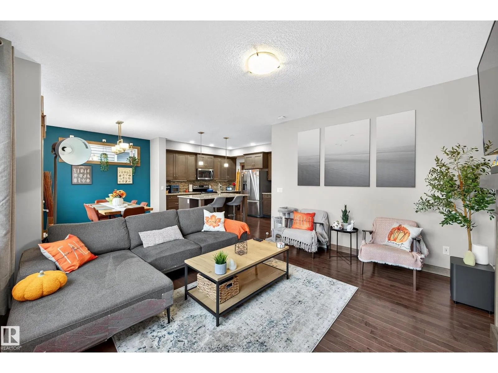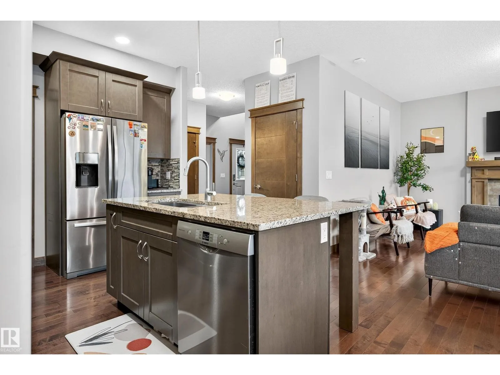 Welcome to Harvest Ridge! This highly sought-after community offers an exceptional lifestyle, featuring multiple parks, walking paths that now connect directly to Stony Plain, three nearby schools, a baseball diamond, soccer fields, and easy access to the highway â everything you need for comfortable suburban living. Built in 2014, this two-storey, 1,600sq. ft. home boasts a long driveway with no sidewalk to shovel in the winter. As spring approaches, youâll love spending time in the fully fenced and landscaped backyard, complete with a spacious deck, perfect for entertaining. Inside, the home is fully finished and features 3 bedrooms, 3.5 bathrooms, custom blinds throughout, granite countertops, a large upstairs laundry room, gas fireplace, and central A/C. This beautiful property combines comfort, convenience, and style, a must see opportunity! (id:27476)
