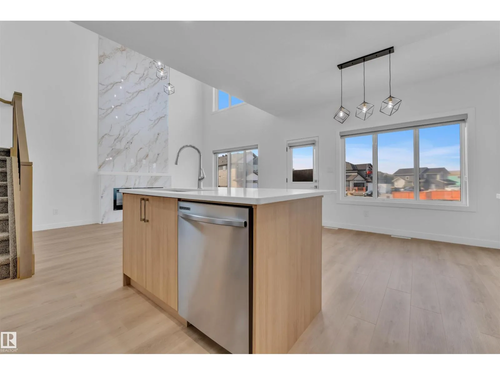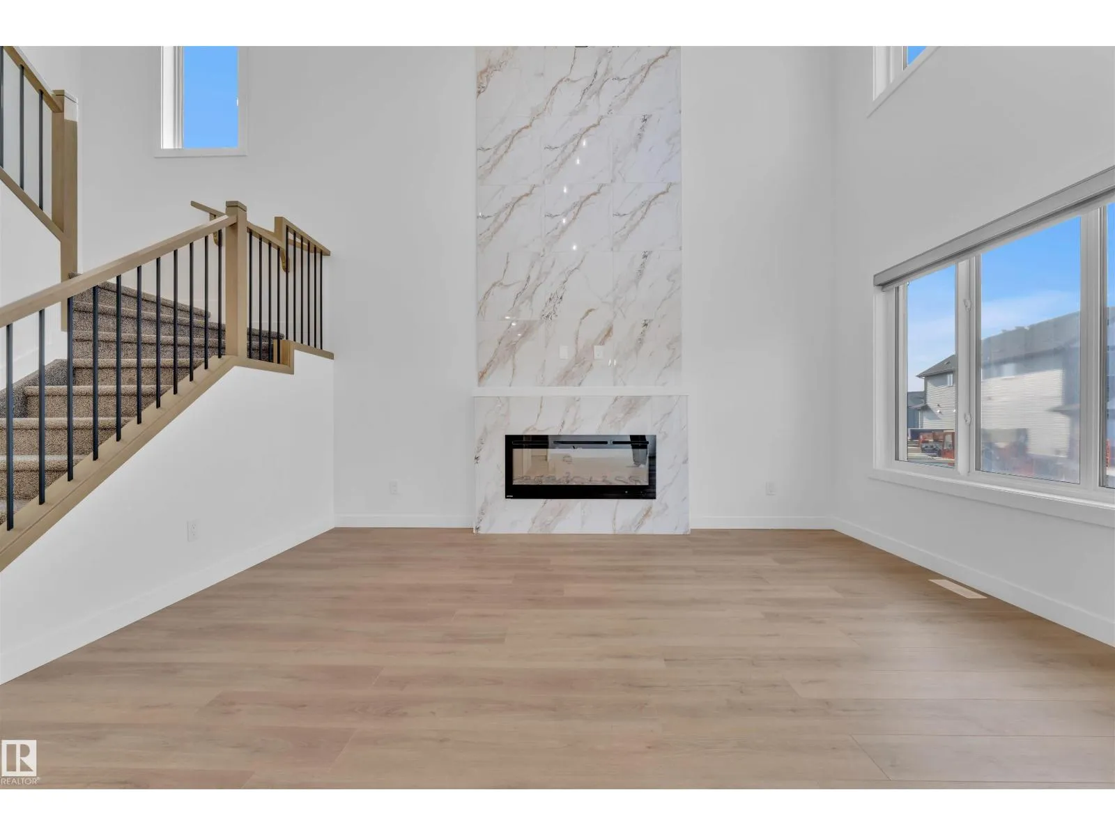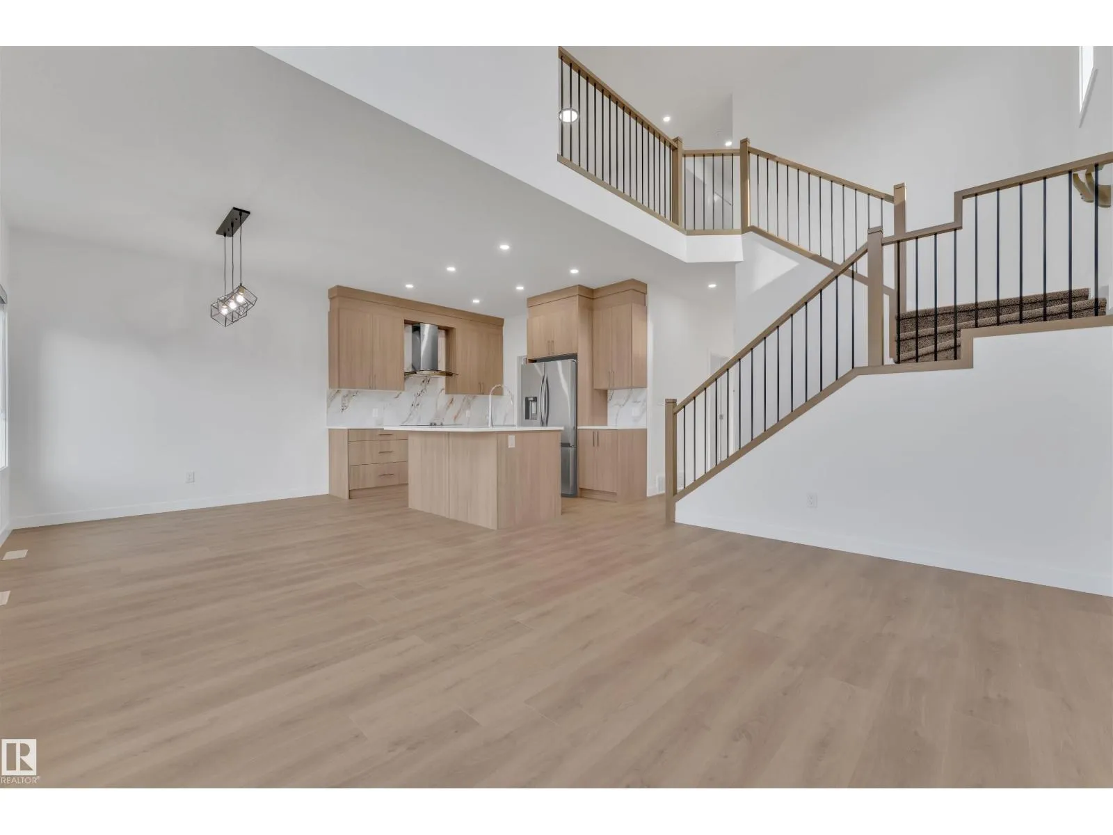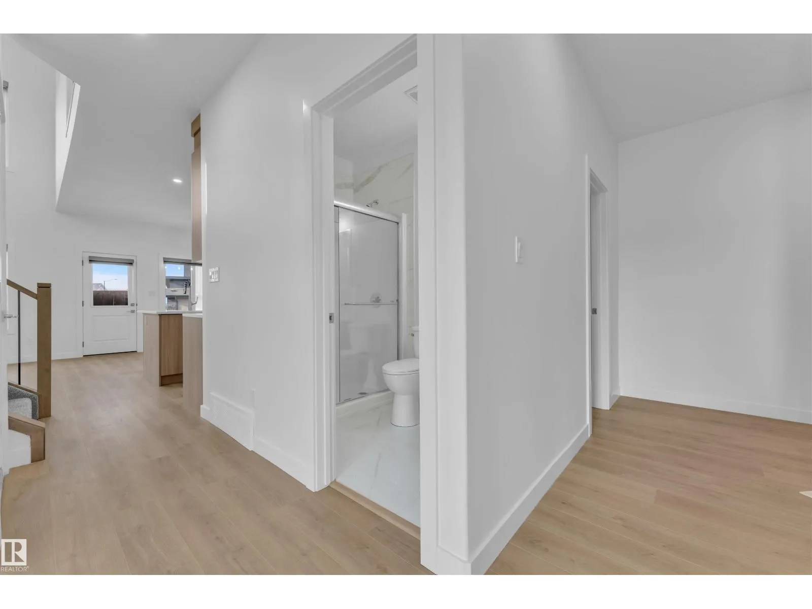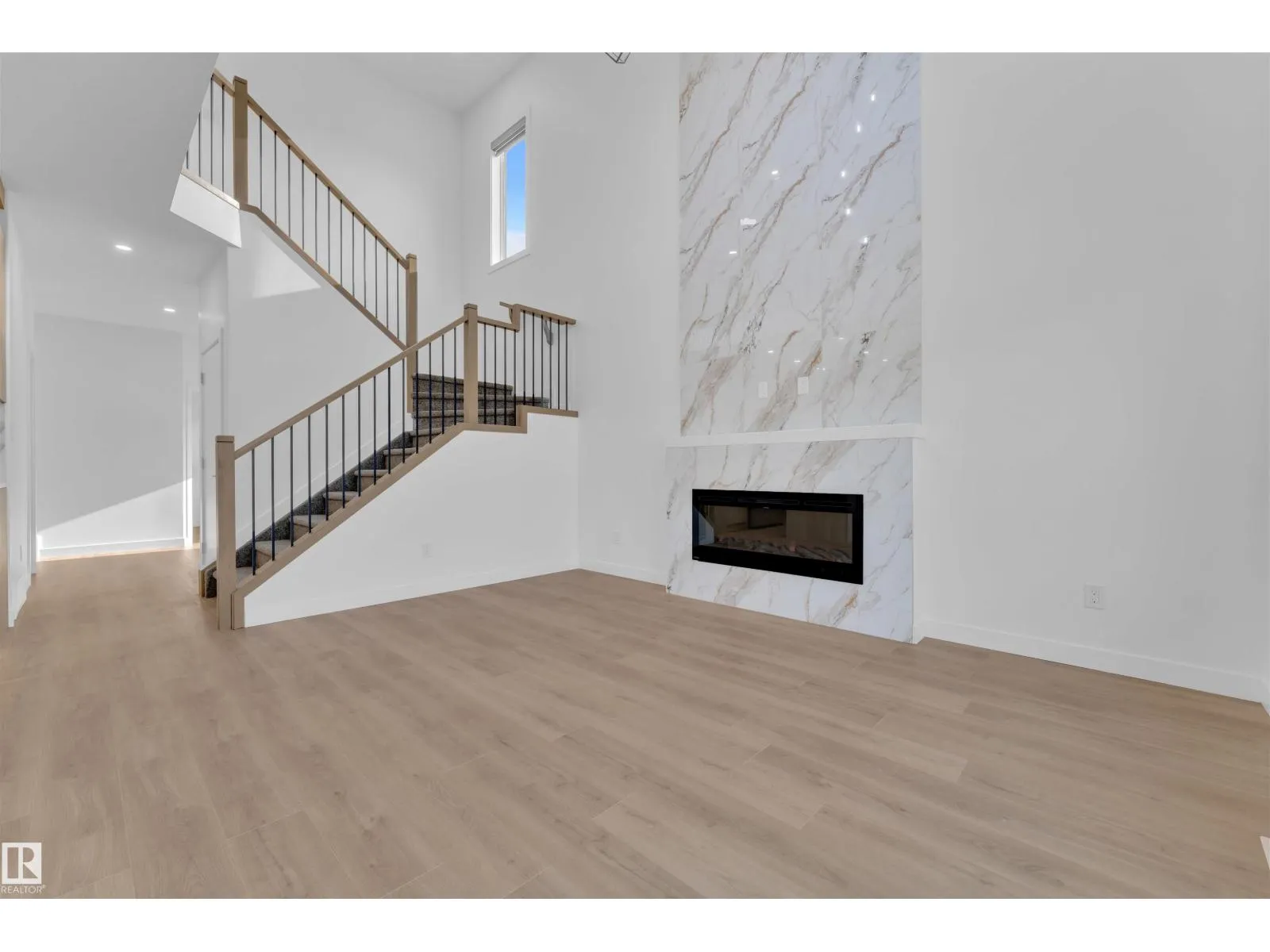 Corner Lot ||26 pocket || Backing to green || Detached front double car garage home on a regular lot in Fenwyck. This open-concept layout features a main floor bedroom with closet and full bath, a modern kitchen with quartz countertops and center island, plus a separate spice kitchen. The living room boasts open-to-below ceiling, an electric fireplace, and tile feature wall. Dining nook opens to the backyard. Vinyl flooring throughout main and upper floors, with elegant railing. Upstairs includes a bonus room, laundry, and three bedrooms, primary with ensuite, walk-in closet, and indent ceiling. Basement has side entrance and two windows. Fenwyck is one of the most sought-after communities, surrounded by 80 acres of preserved forest, offering peaceful natural living near city convenience. Just 11 minutes from Edmonton with direct access to Hwy 16A via Pioneer Roadâideal for first-time buyers or families seeking their forever home. (id:27476)