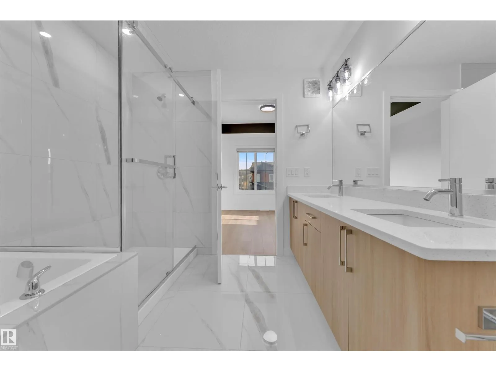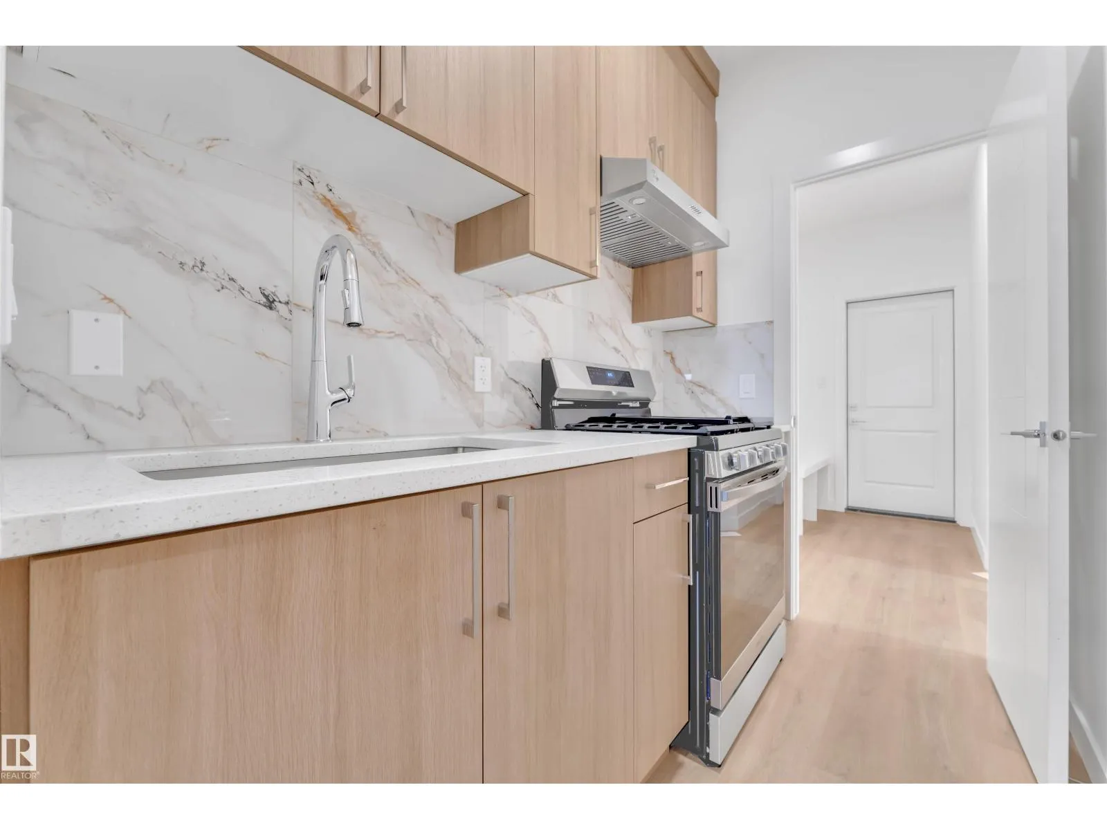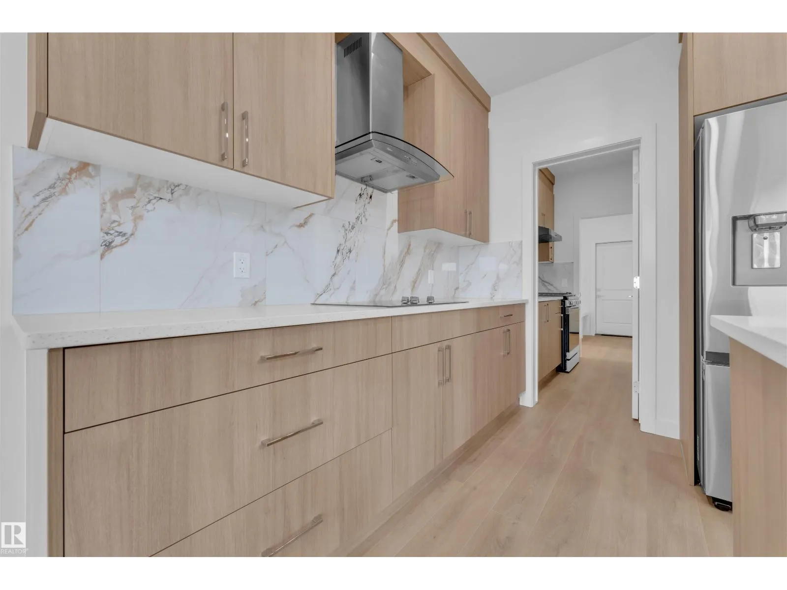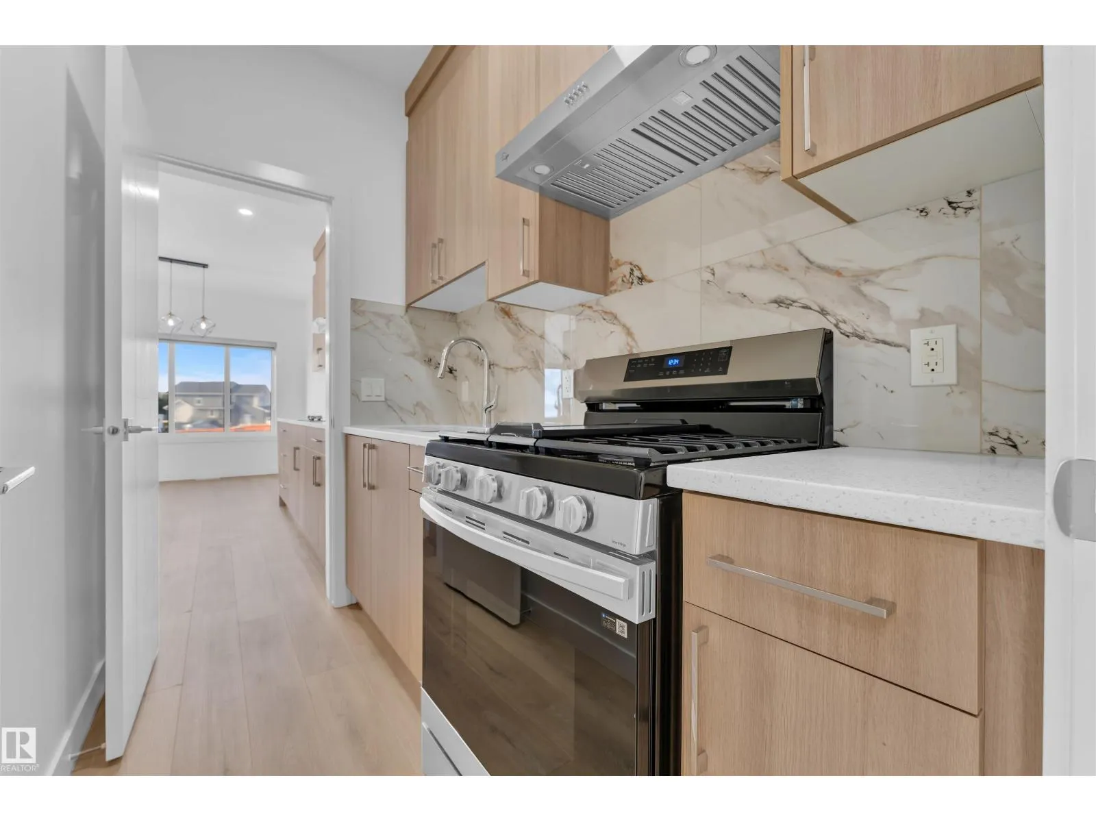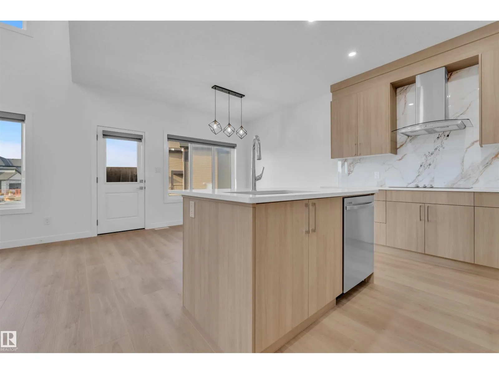 Corner Lot ||26 pocket || Backing to green || Detached front double car garage home on a regular lot in Fenwyck. This open-concept layout features a main floor bedroom with closet and full bath, a modern kitchen with quartz countertops and center island, plus a separate spice kitchen. The living room boasts open-to-below ceiling, an electric fireplace, and tile feature wall. Dining nook opens to the backyard. Vinyl flooring throughout main and upper floors, with elegant railing. Upstairs includes a bonus room, laundry, and three bedrooms, primary with ensuite, walk-in closet, and indent ceiling. Basement has side entrance and two windows. Fenwyck is one of the most sought-after communities, surrounded by 80 acres of preserved forest, offering peaceful natural living near city convenience. Just 11 minutes from Edmonton with direct access to Hwy 16A via Pioneer Roadâideal for first-time buyers or families seeking their forever home. (id:27476)