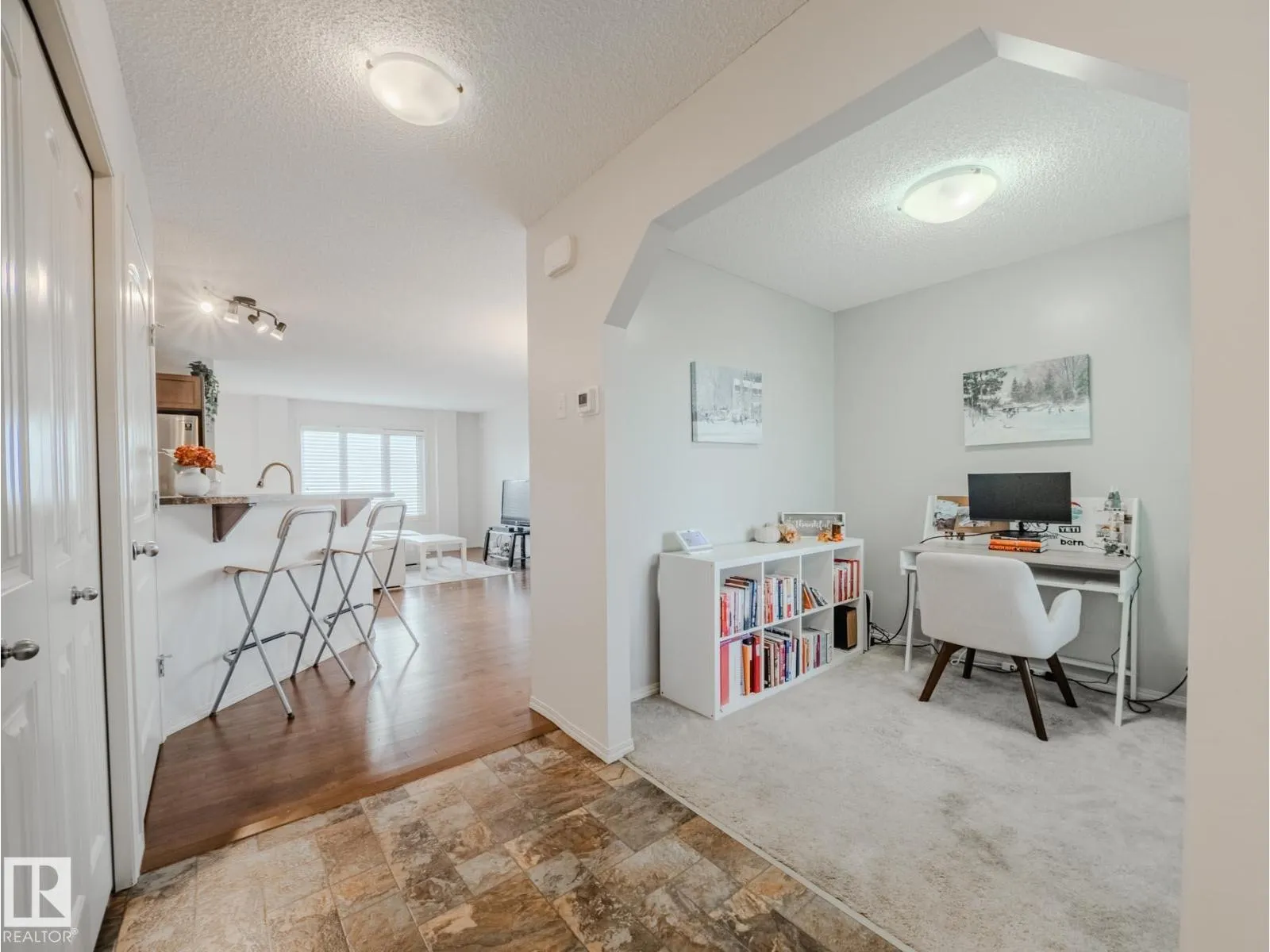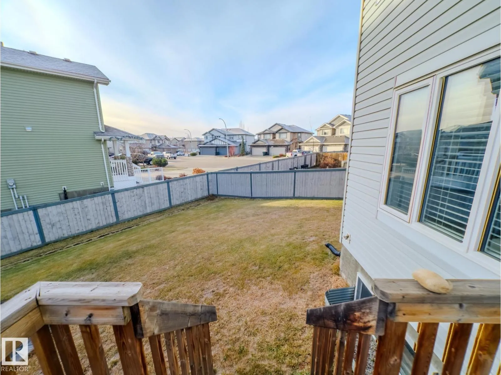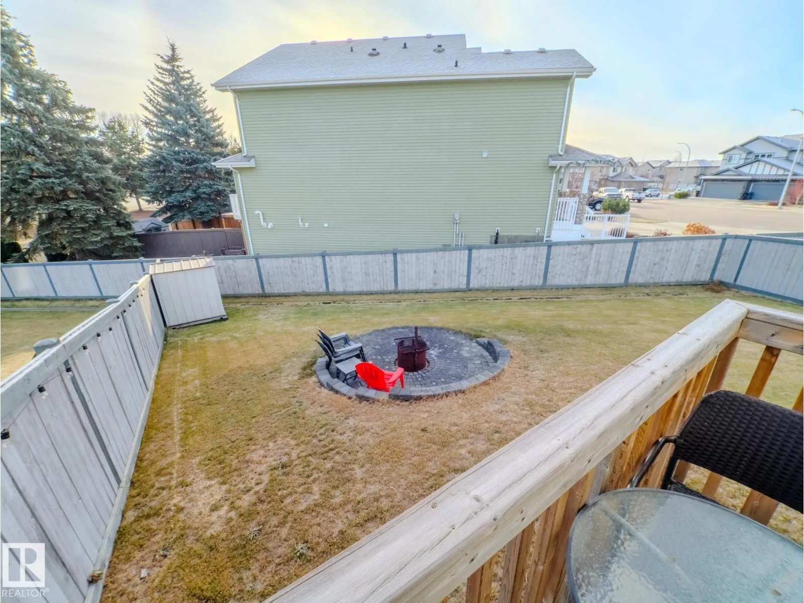 Quick Possession! Nestled on a quiet cul-de-sac in Aspen Glen is this beautiful duplex with over 1500 square feet of living space. Incredibly located on a pie-shaped lot with views of the Links Golf Course. The kitchen has an eat up bar, espresso cabinets, stainless steel appliances & pantry. The bright living room has a large picture window overlooking the massive SE facing backyard. Completing the main floor is a dedicated den and two piece powder room. The upper level features a great size primary bedroom with a walk-in closet and full ensuite. Down the hall are two additional bedrooms, a four piece bathroom & a laundry closet. The unfinished basement has two large windows, providing excellent potential for future development. NEW furnace. Single garage, 21.5' X 11', with shelving and an extra long driveway. The fully fenced backyard has a deck and stone patio with firepit. Situated steps from the Links Golf Course, a man-made lake, parks, walking trails, a large playground, and an outdoor hockey rink. (id:27476)