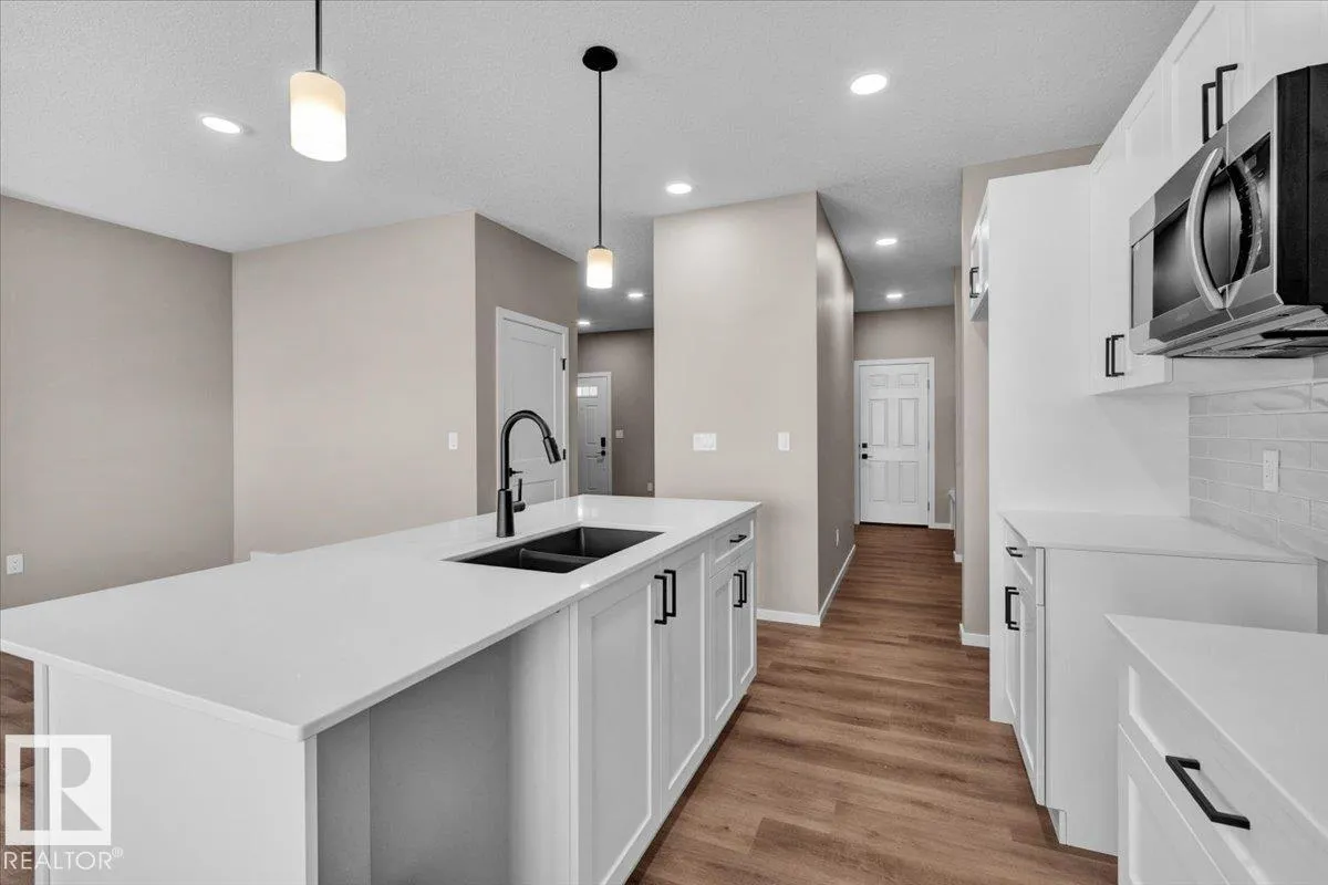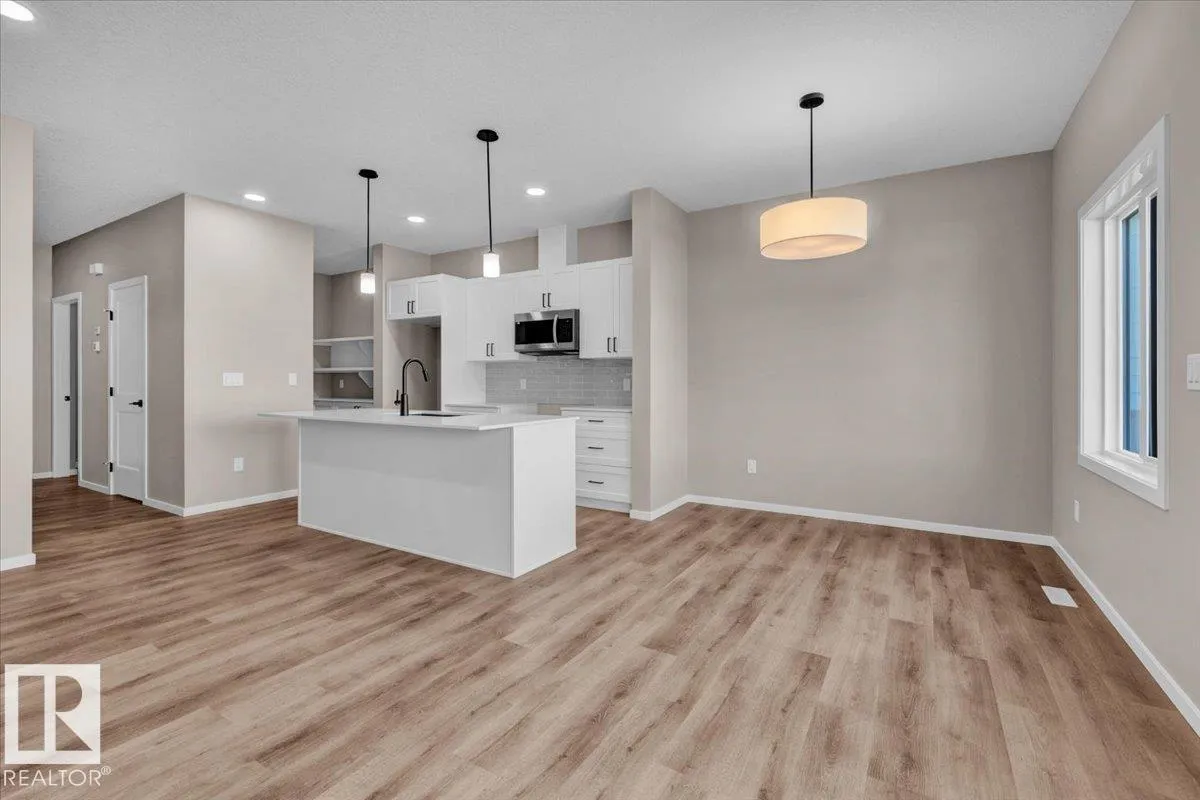 This newly built Alquinn half duplex showcases striking modern design with a prime location, double attached garage featuring EPOXY floors, and a rear DECK for outdoor enjoyment. Inside, the bright and stylish interior is filled with natural light and finished with inviting touches throughout. The functional open-concept main level seamlessly connects the kitchen, dining, and living areas, highlighted by a cozy fireplace and a central island with breakfast barâideal for everyday living and entertaining. The thoughtful layout continues with a walk-through pantry leading to a mudroom with direct access to the garage. Upstairs offers a spacious bonus room, convenient laundry, 2 additional bedrooms, and a full bathroom. The primary bedroom serves as a private retreat, complete with a walk-in closet and a spa-inspired 5pc ensuite. UPGRADES: double attached garage with epoxy flooring, rear deck, walk-through pantry, bonus room, upper-floor laundry, backing Greenspace, list goes on... (id:27476)