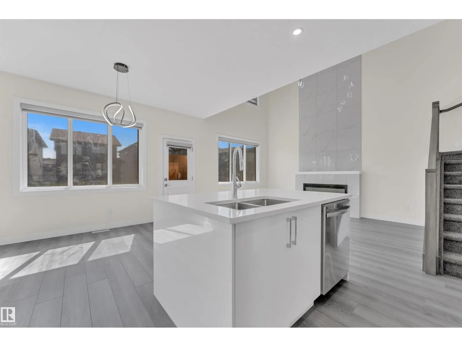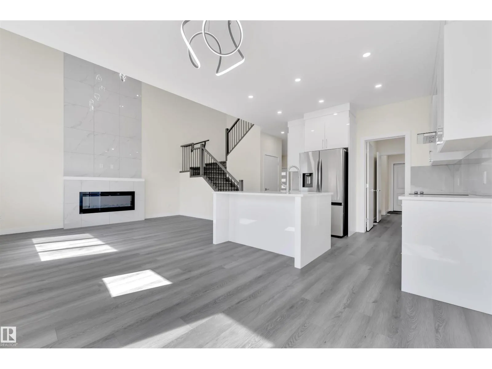 Detached front double car garage home on a regular lot in Fenwyck, backing onto a walking trail. This open-concept layout features a main floor bedroom with closet and full bath, a modern kitchen with quartz countertops and center island, plus a separate spice kitchen. The living room boasts open-to-below ceilings, an electric fireplace, and tile feature wall. Dining nook opens to the backyard. Vinyl flooring throughout main and upper floors, with elegant spindle railings. Upstairs includes a bonus room, laundry, and three bedroomsâprimary with ensuite, walk-in closet, and indent ceiling. Basement has separate side entrance and two windows. Includes all appliances and blinds on main and upper floors. Fenwyck is one of the most sought-after communities, surrounded by 80 acres of preserved forest, offering peaceful natural living near city convenience. Just 11 minutes from Edmonton with direct access to Hwy 16A via Pioneer Roadâideal for first-time buyers or families seeking their forever home. (id:27476)
