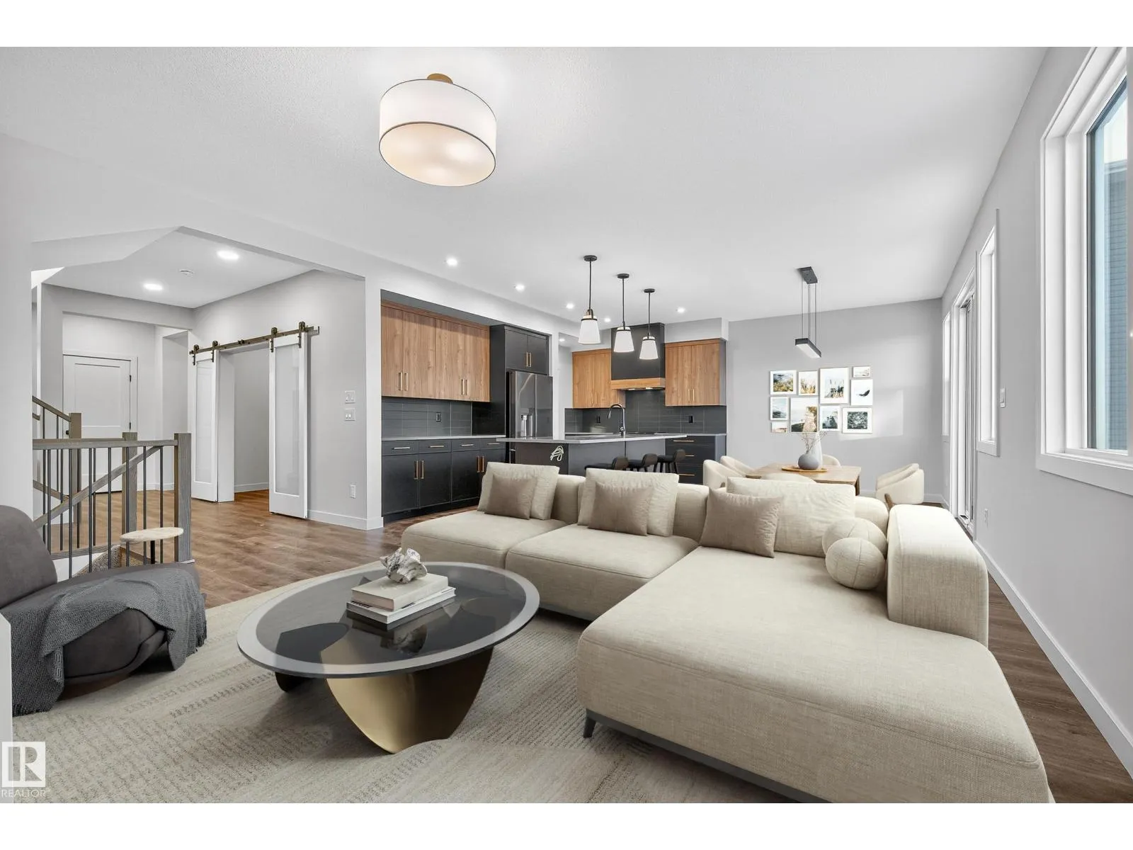 Over 2,500 sq. ft. of beautifully finished living space by Legacy Signature Homes! This stunning home impresses with its modern design, sophisticated finishes, and exceptional attention to detail. Enjoy quartz countertops throughout, a striking open-concept kitchen with rich two-tone cabinetry, a large island, and designer lighting. The main floor includes a spacious den, mudroom, and walkthrough pantry, while the inviting living room centres around a sleek electric fireplace. Upstairs, youâll find a bright vaulted ceiling bonus room, convenient laundry, two generous bedrooms, and a full bathroom. The luxurious primary suite offers a walk-in closet and an incredible ensuite featuring a soaker tub, walk-in shower, dual sinks, and a private water closet. The oversized double garage provides ample space for parking and storage. A truly impressive home that perfectly combines style, function, and craftsmanship.*some photos virtually staged (id:27476)