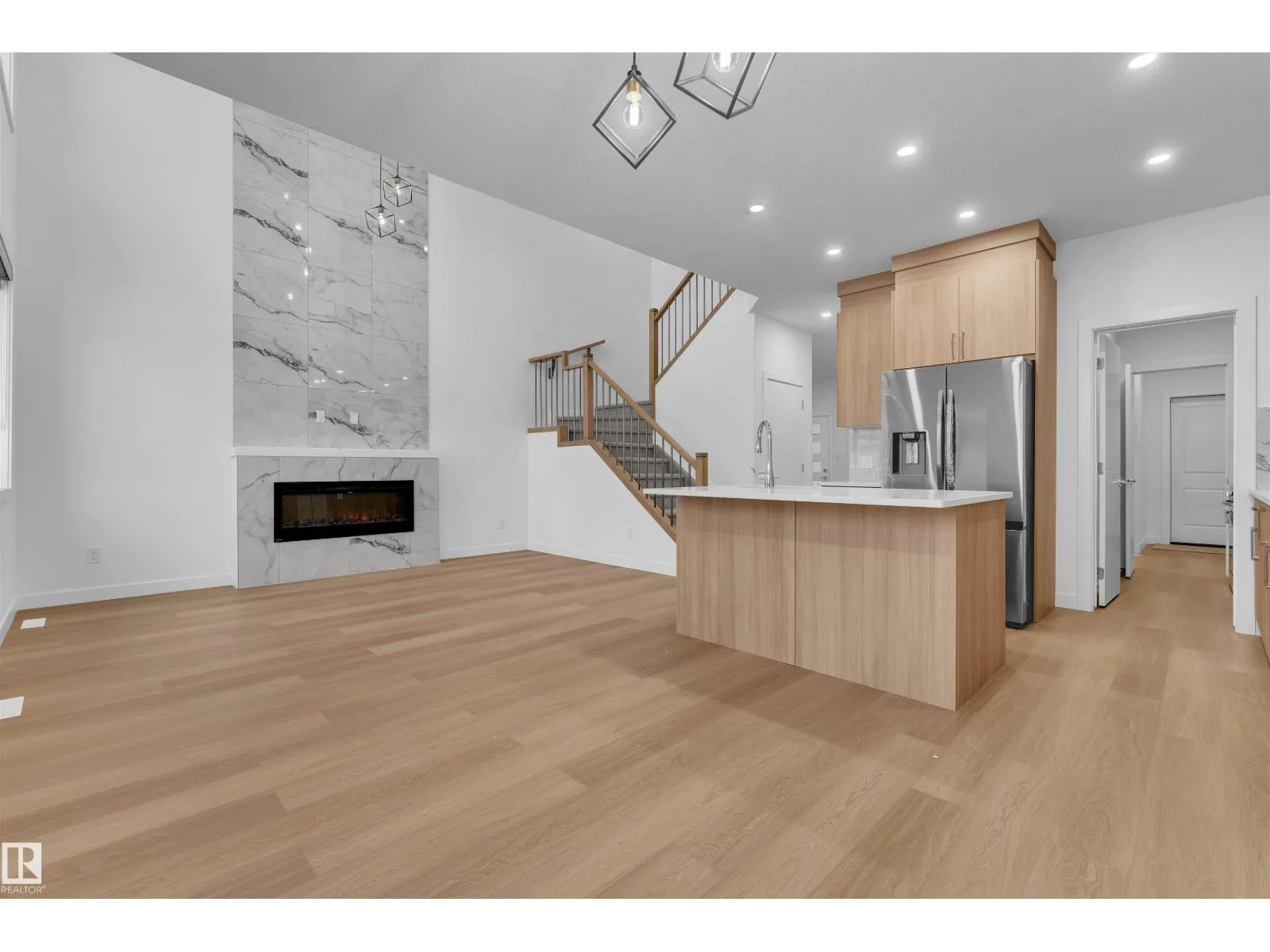 elcome to this stunning detached home. This bright, open-concept home features tiles flooring throughout the main floor, a cozy electric fireplace with a stylish feature wall, and a modern kitchen complete with a beautiful backsplash, built-in appliances & Spice Kitchen. The seamless flow between the kitchen, dining, and living areas makes it ideal for both entertaining and everyday living. A main floor bedroom with a large window, full closet, and a full bathroom offers excellent flexibility for guests, extended family, or a home office. Upstairs, you'll find a versatile bonus room, a spacious primary suite with a feature wall and primary ensuite, two additional bedrooms, a shared full bath, and convenient second-floor laundry. Large windows throughout the home flood every room with natural light, creating a warm and welcoming atmosphere. (id:27476)