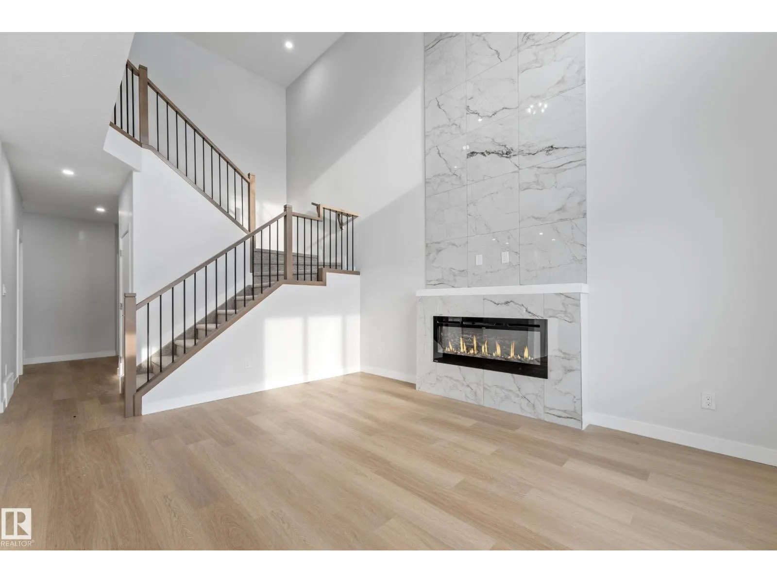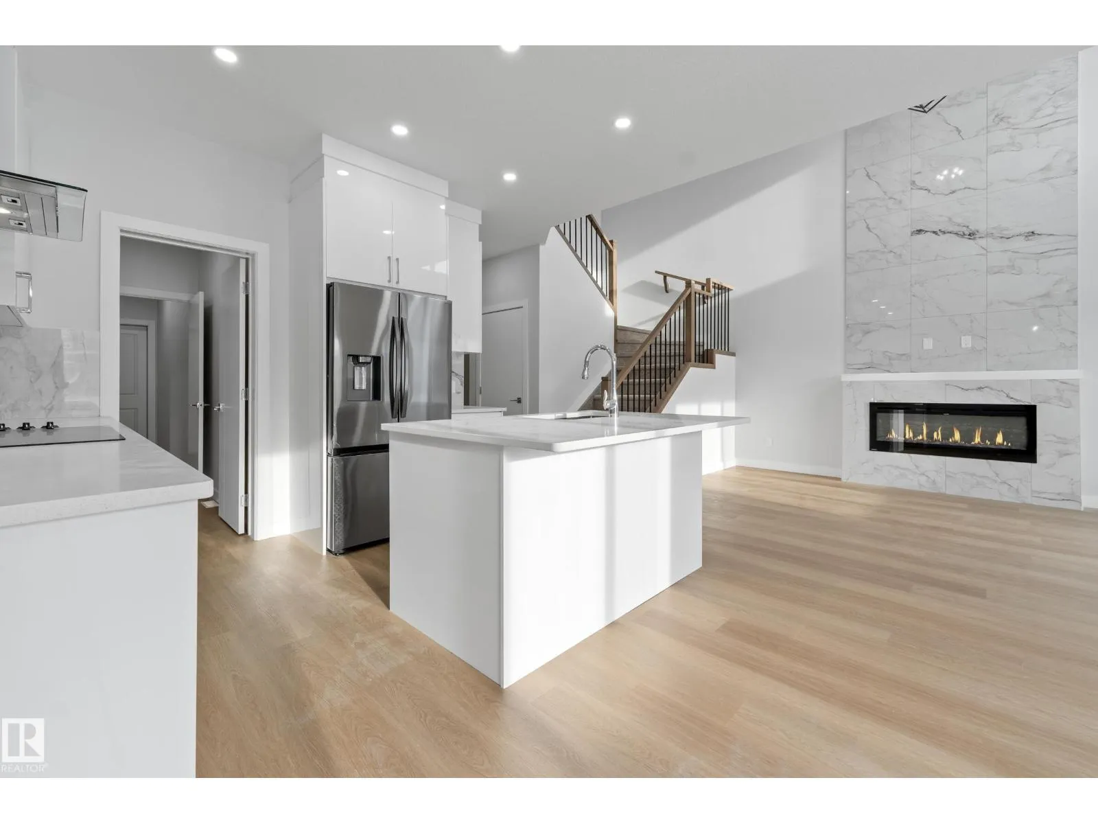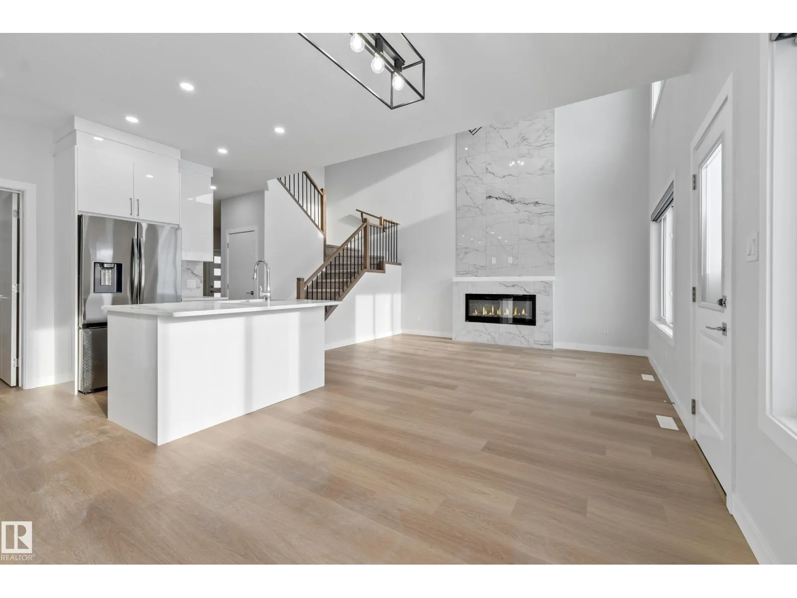 Welcome to this stunning detached home. This bright, open-concept home features tiles flooring throughout the main floor, a cozy electric fireplace with a stylish feature wall, and a modern kitchen complete with a beautiful backsplash, built-in appliances & Spice Kitchen. The seamless flow between the kitchen, dining, and living areas makes it ideal for both entertaining and everyday living. A main floor bedroom with a large window, full closet, and a full bathroom offers excellent flexibility for guests, extended family, or a home office. Upstairs, you'll find a versatile bonus room, a spacious primary suite with a feature wall and primary ensuite, two additional bedrooms, a shared full bath, and convenient second-floor laundry. Large windows throughout the home flood every room with natural light, creating a warm and welcoming atmosphere. (id:27476)
