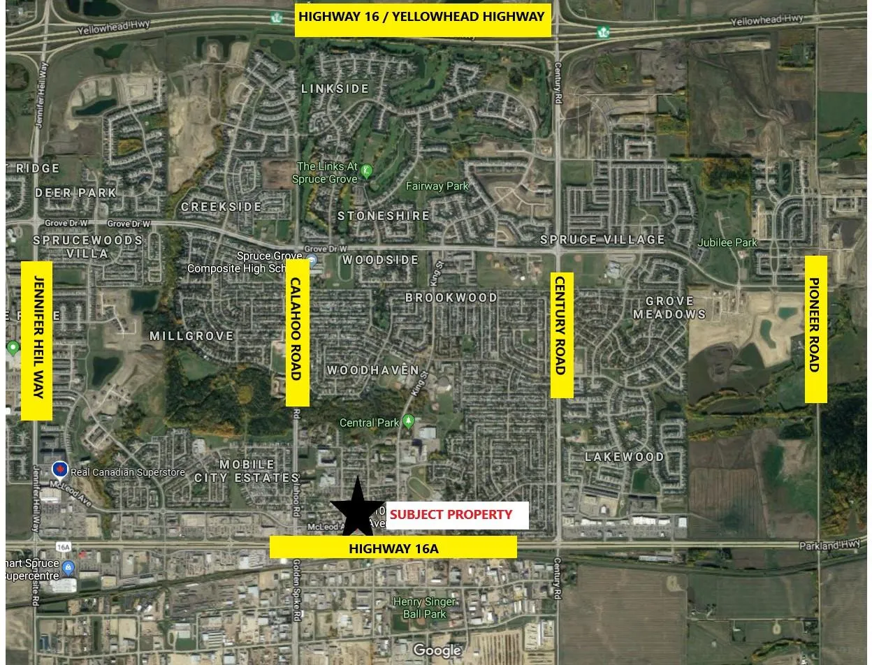 Located in the heart of Spruce Grove, this well maintained retail property offers a rare opportunity to acquire a fully leased investment property. The building consists of 9 units totaling 10,209 SqFt, with a diverse mix of long-standing tenants already in place. Situated just off Highway 16A, the site provides excellent visibility and accessibility, with front and rear parking for customers and staff. The property is zoned C1- City Centre Commercial, permitting a wide range of uses including professional offices, retail. personal services, and health services. This is a strong turnkey investment in a growing community with stable income potential.Subject Space Width: 59 (id:27476)