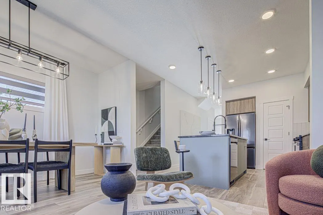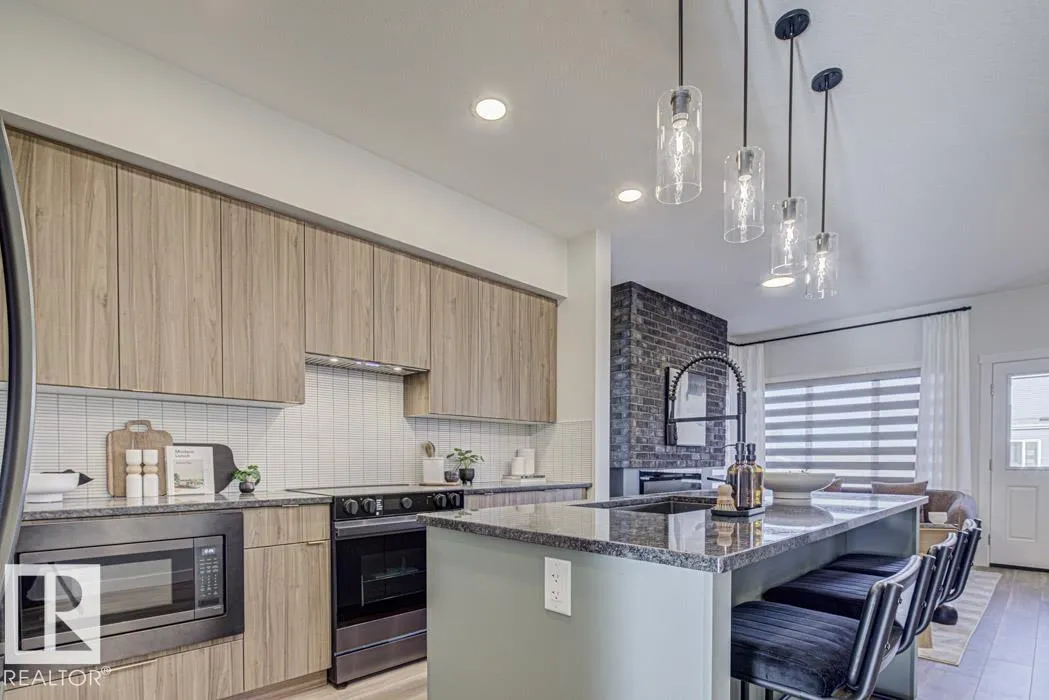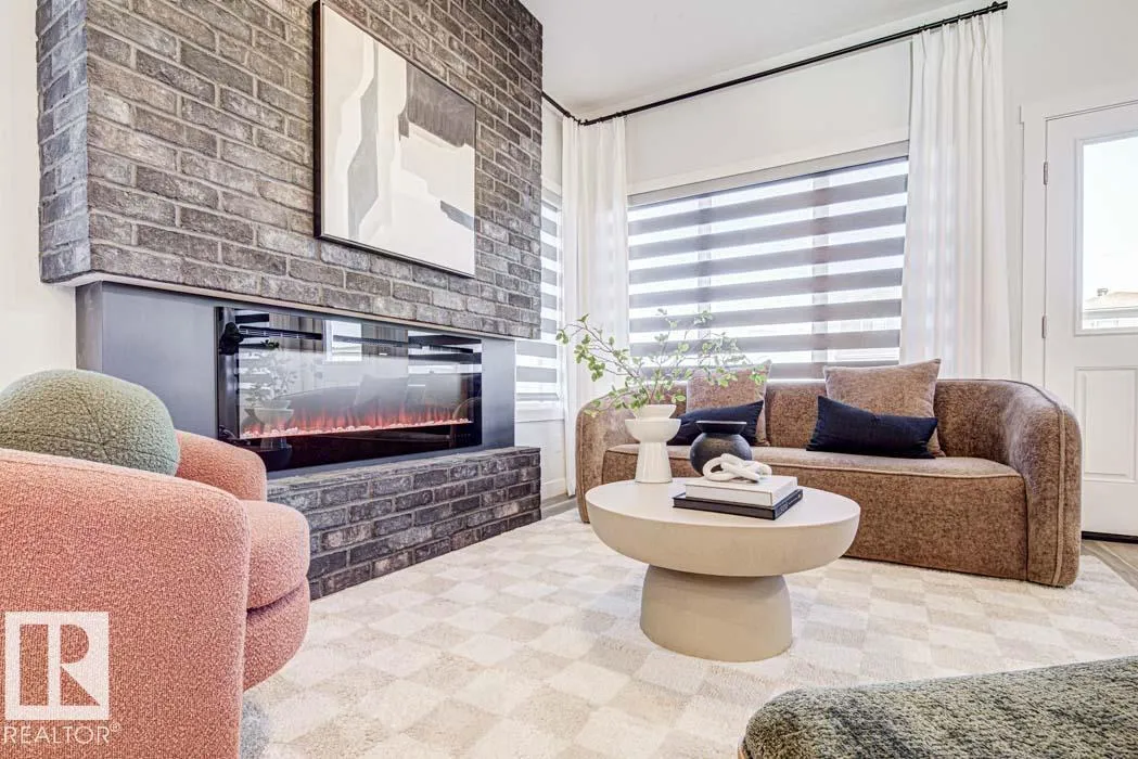 Introducing The Sapphire, a beautifully staged 1,619 sq. ft. home on a premium corner lot in desirable Easton. Enjoy 9â ceilings, luxury vinyl plank flooring, and an open, light-filled layout. The upscale kitchen showcases granite countertops, a large island, soft-close cabinetry, custom hood fan, full-height tile backsplash, and built-in microwave. A striking floor-to-ceiling brick fireplace anchors the living space, while a main-floor bedroom and chic 3-piece bath offer flexibility. Upstairs features a serene primary retreat with walk-in closet and tiled glass shower ensuite, plus two additional bedrooms, a bonus room, full bath, and laundry. Complete with A/C, black fixtures, landscaped yard with deck, blinds, appliances, and a 9â basement with side entrance and rough-ins. (id:27476)