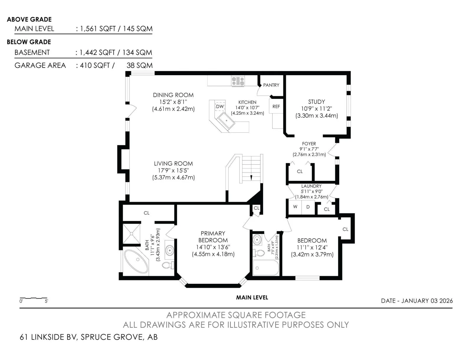 This beautiful spacious BUNGALOW in the Linkside subdivision. With over 3000 sq ft total living space, this home has a beautiful west facing deck and an east facing front porch to enjoy the sunrise and sunsets. The backyard is gorgeous with perennials, this low maintenance yard includes a garden shed and is fully fenced and has inground sprinkler system front and back. The main level entry is spacious and has a large den off to the side. The main floor features your open concept kitchen, living/ dining room with a gas fireplace and stone surround. Access to your heated o/s garage is just off the main floor laundry. There is a full bath and another bedroom on the main & the primary suite features a 4 pc ensuite. The finished basement has a wet bar & family room with another gas fireplace. Additionally there are 2 bedrooms, storage room & full 4 pc bath downstairs which makes this basement perfect for entertaining the whole family! This home is meticulous and has been well cared for. (id:27476)