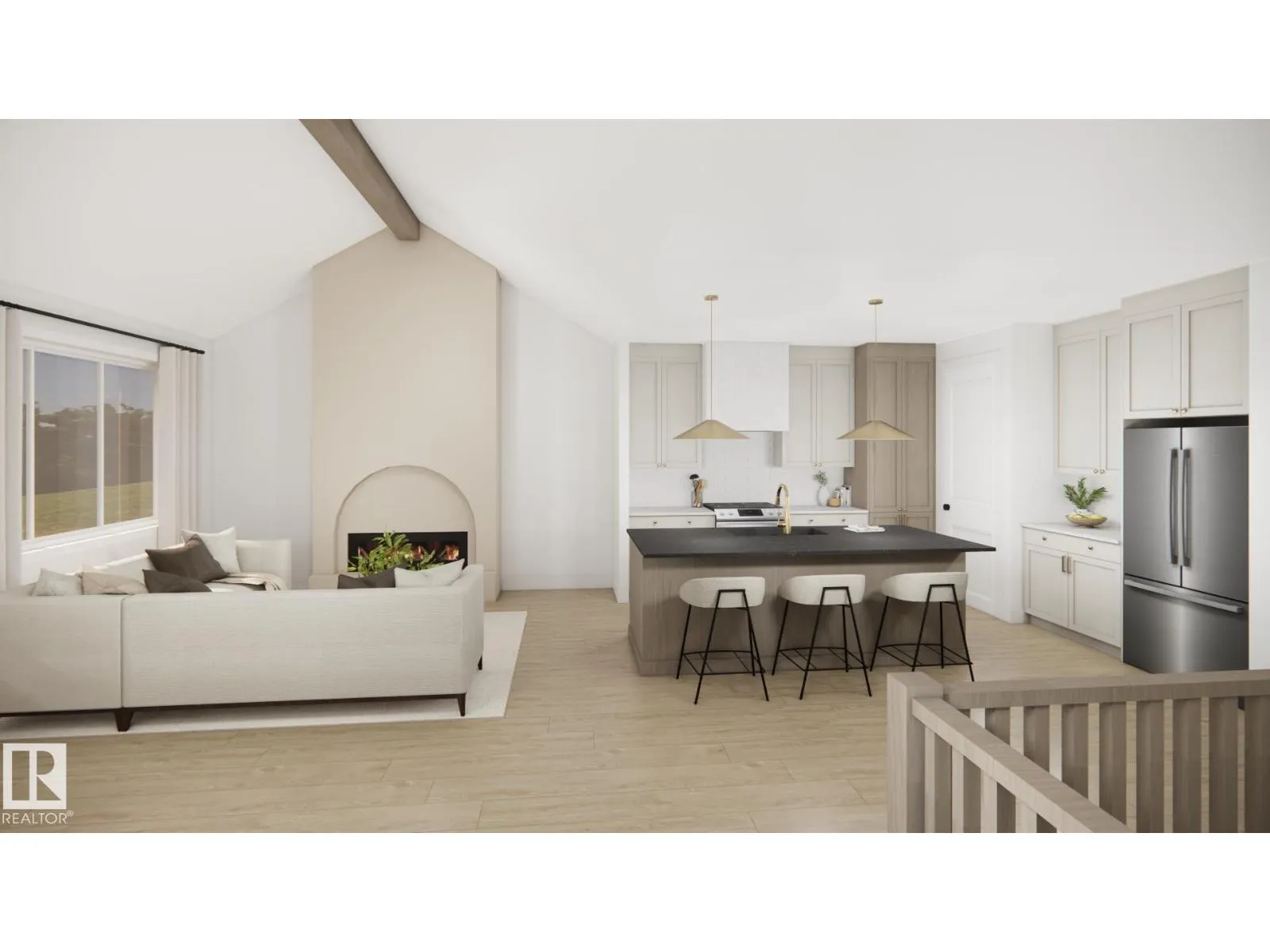Backing the Fenwyck forest awaits a stunning bungalow built by HRD Homes. With over 1,400 sqft of living space this 1 bed, 1.5 bath home w/ a heated triple garage is waiting for You to call it home. Featuring vaulted ceilings w/ a stained maple beam that spans the living & dining room, custom two toned cabinetry & tiled hood fan, s/s appliances, quartz countertops, vinyl plank flooring, gas fireplace, his/her sinks w/ custom tiled shower in your 5 pce ensuite, spacious walk-in closet, 8ft solid core doors, central A/C, main floor laundry w/ sink, tankless hot water system, beautifully accented bronze fixtures & lighting, hot/cold taps in the garage w/ floor drain, BBQ gas line & custom built ins throughout. With its timeless & sophisticated design this home is perfect for the empty nester or those looking to downsize yet still wanting the high end finishings and attention to detail. *listing photos are design team renderings* (id:27476)
