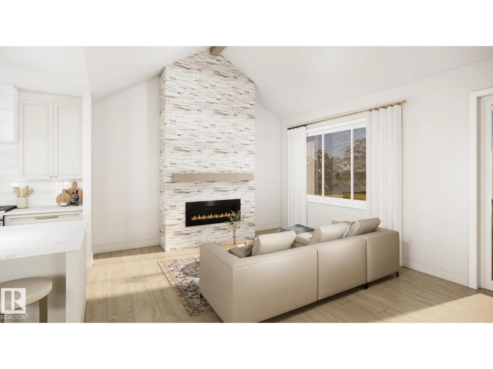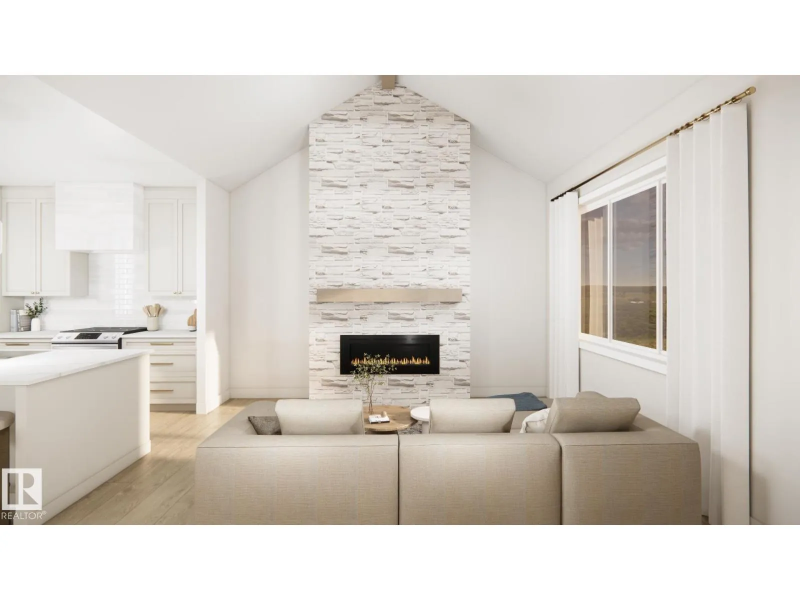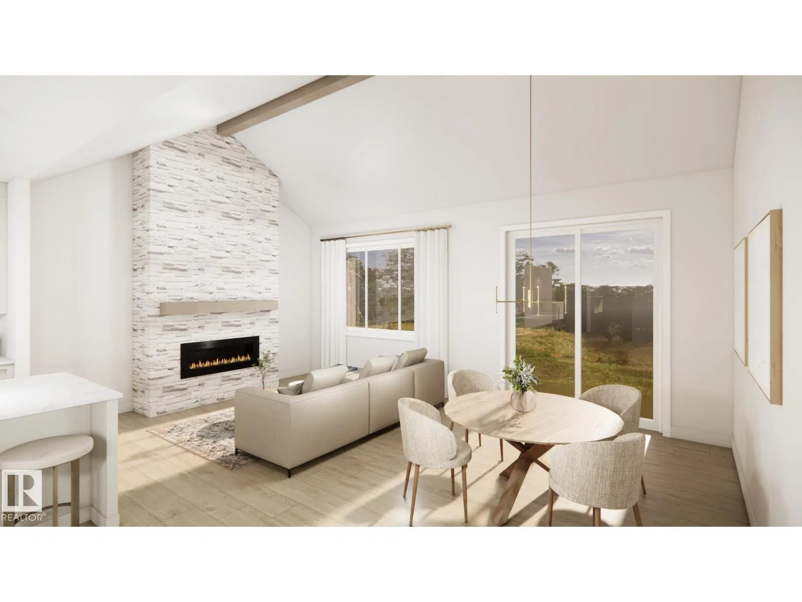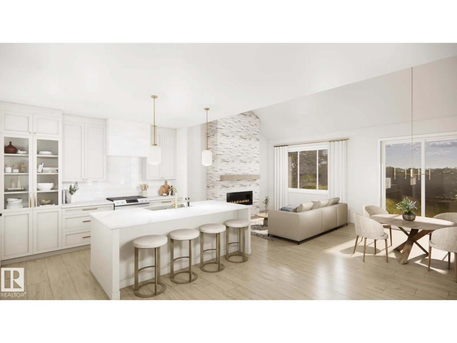 Stunning walkout bungalow backing a pond in Deer Park! HRD Homes presents The Beckett, a unique and RARE floor plan in Spruce Grove feat. over 1,400sqft or living space PLUS a triple heated garage with a 40' RV bay. This home features a bright & airy floor plan incl. vaulted ceilings w/ accented maple beam, an abundance of natural light, large entryway windows and so much more. Premium upgrades incl. vinyl plank flooring, 8ft solid core doors, s/s appliances, glass display doors in the kitchen, beautifully accented champagne bronze fixtures & lighting, gas fireplace w/ full height masonry to the ceiling, vaulted primary bedroom ceiling, his/her sinks w/ custom tiled shower in your 5 pce ensuite, walk-in closet, main floor laundry w/ sink, tankless hot water system, central A/C, hot/cold taps in the garage w/ floor drain, BBQ gas line & custom built ins throughout. This is the perfect place for snowbirds to call their own! *listing photos are design team renderings* (id:27476)