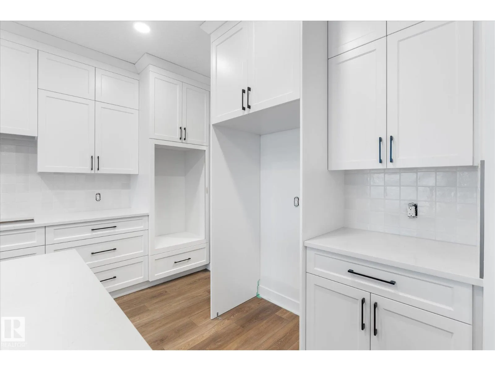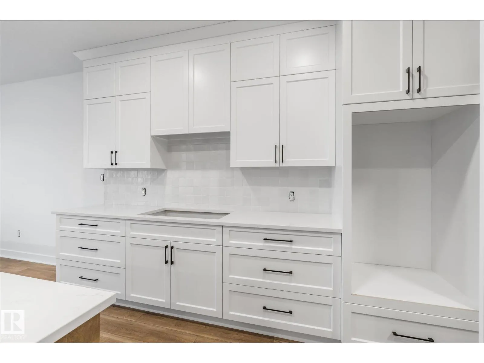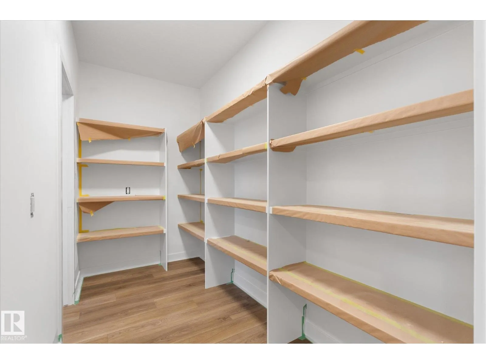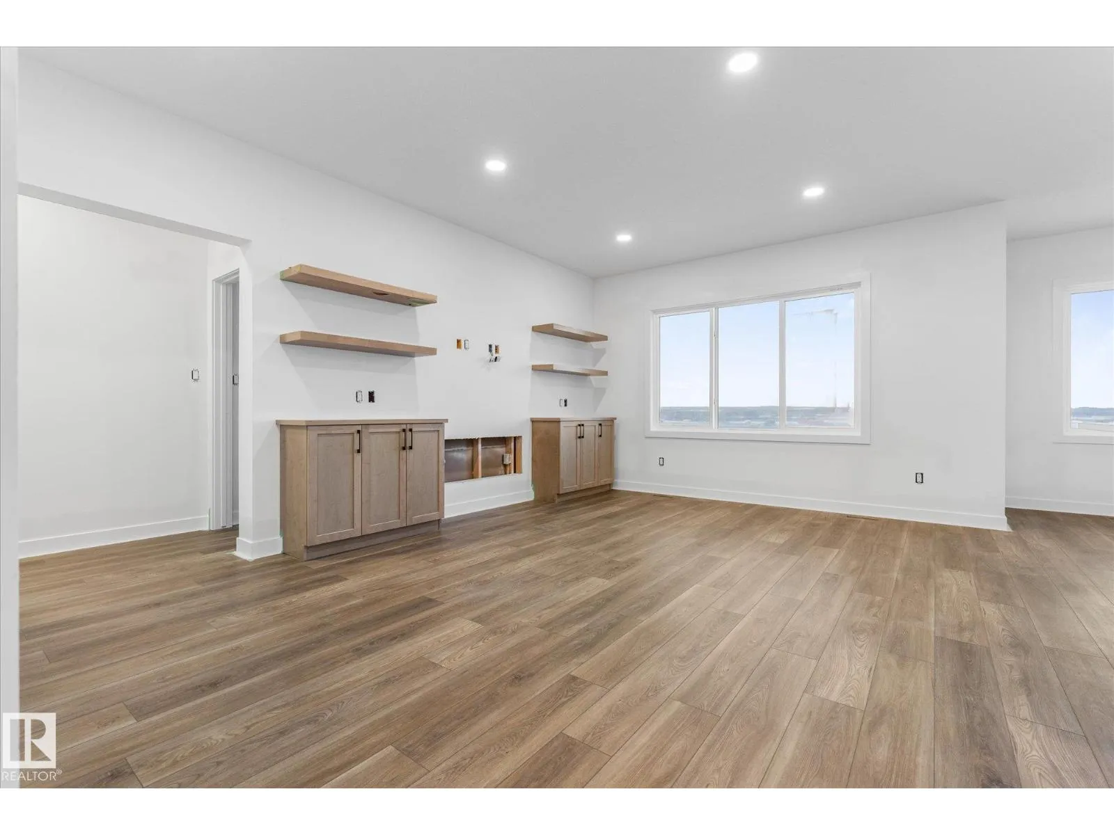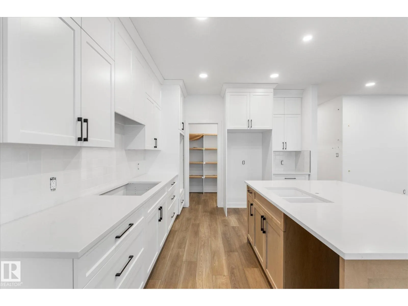 Brand new executive bungalow by Southbend Developments in Deer Park, Spruce Grove. This open-concept home features wide LVP flooring, recessed lighting, and a stunning electric fireplace with custom cabinetry and floating shelves. The kitchen is elegantly finished with full-height white cabinetry, white quartz countertops, a substantial island with concealed under-island storage, wall oven, and a massive walk-through pantry designed for seamless organization. Primary suite includes deck access, walk-in closet, and 4-piece ensuite with his and hers sinks and large walk-in tiled shower. Second bedroom/den, additional 4-piece bath, and mudroom with laundry off the triple attached garage. Separate side entrance to basement provides excellent future development or suite potential. Deck access from dining and primary. Close to parks, schools, and amenities. (id:27476)