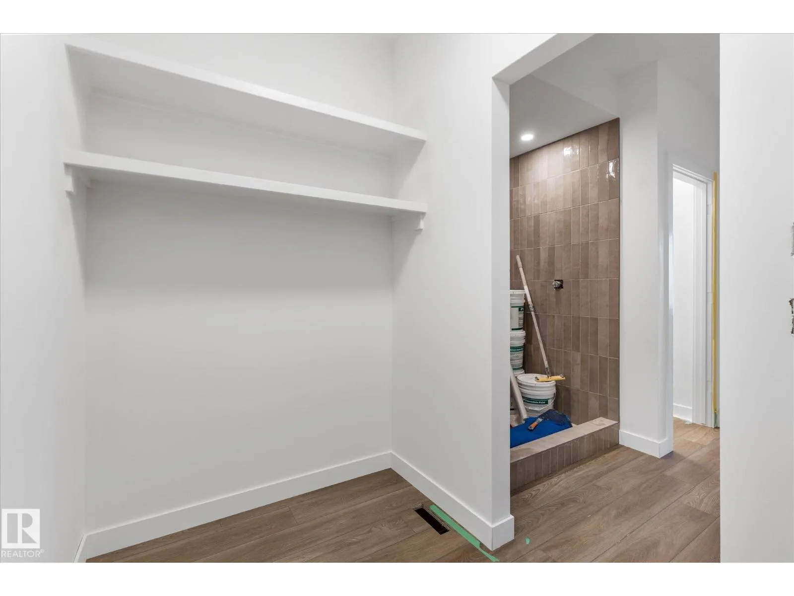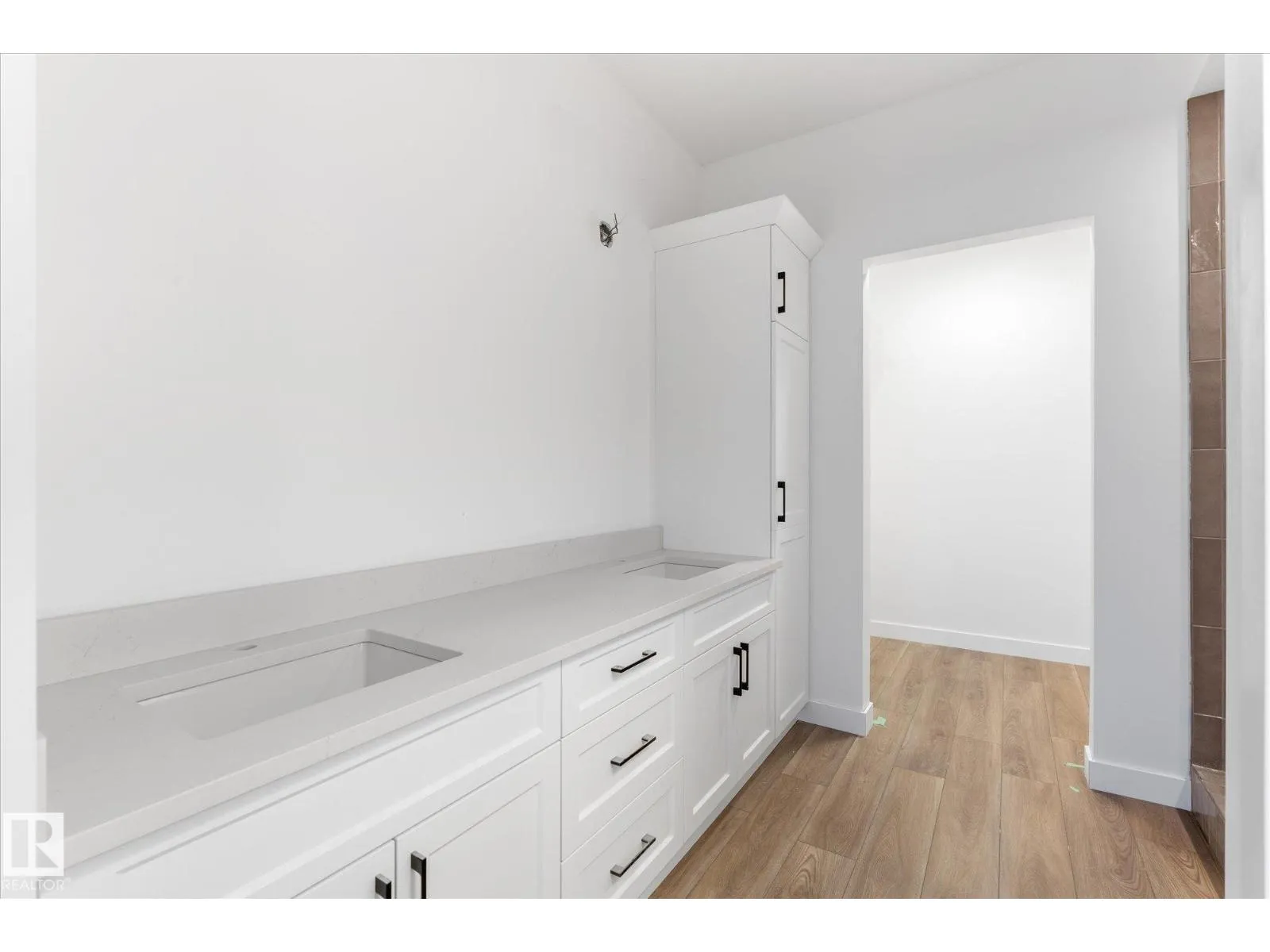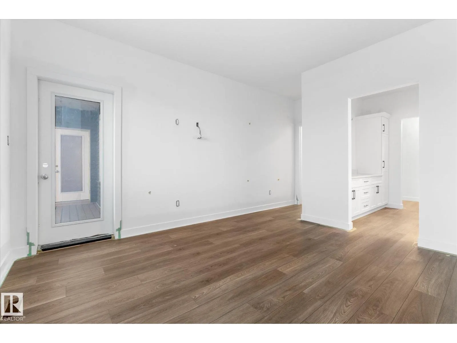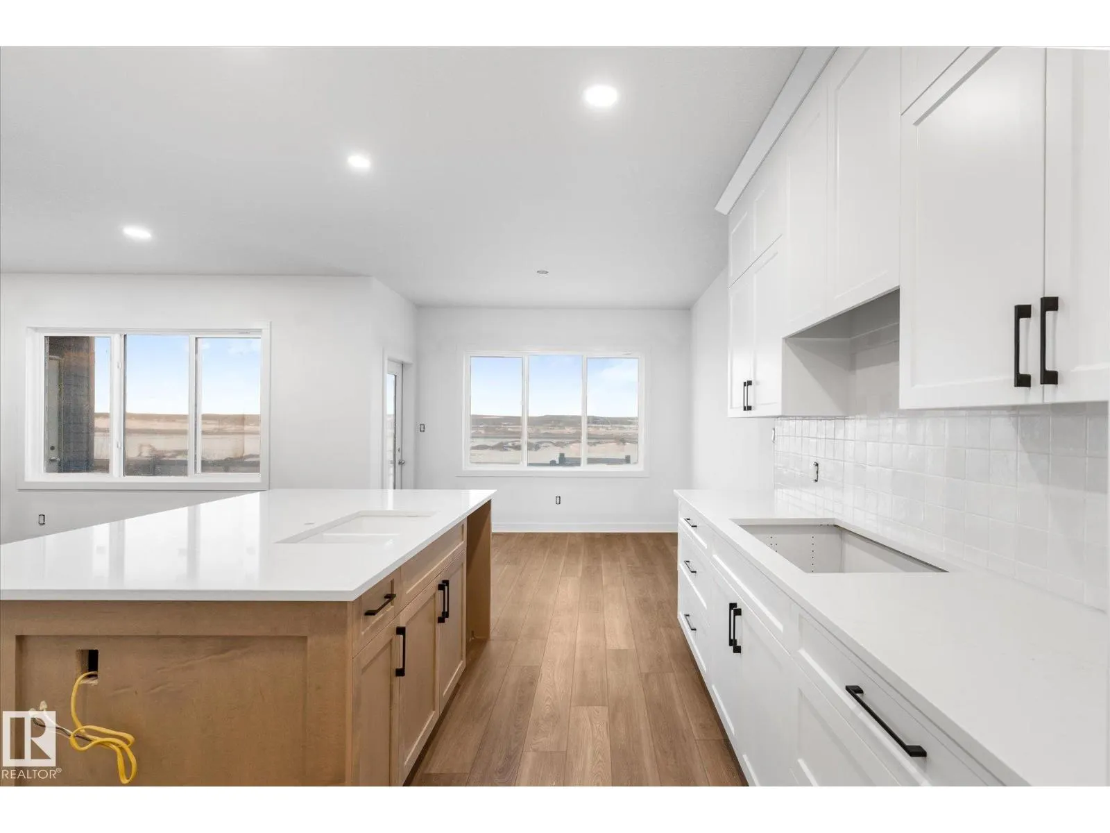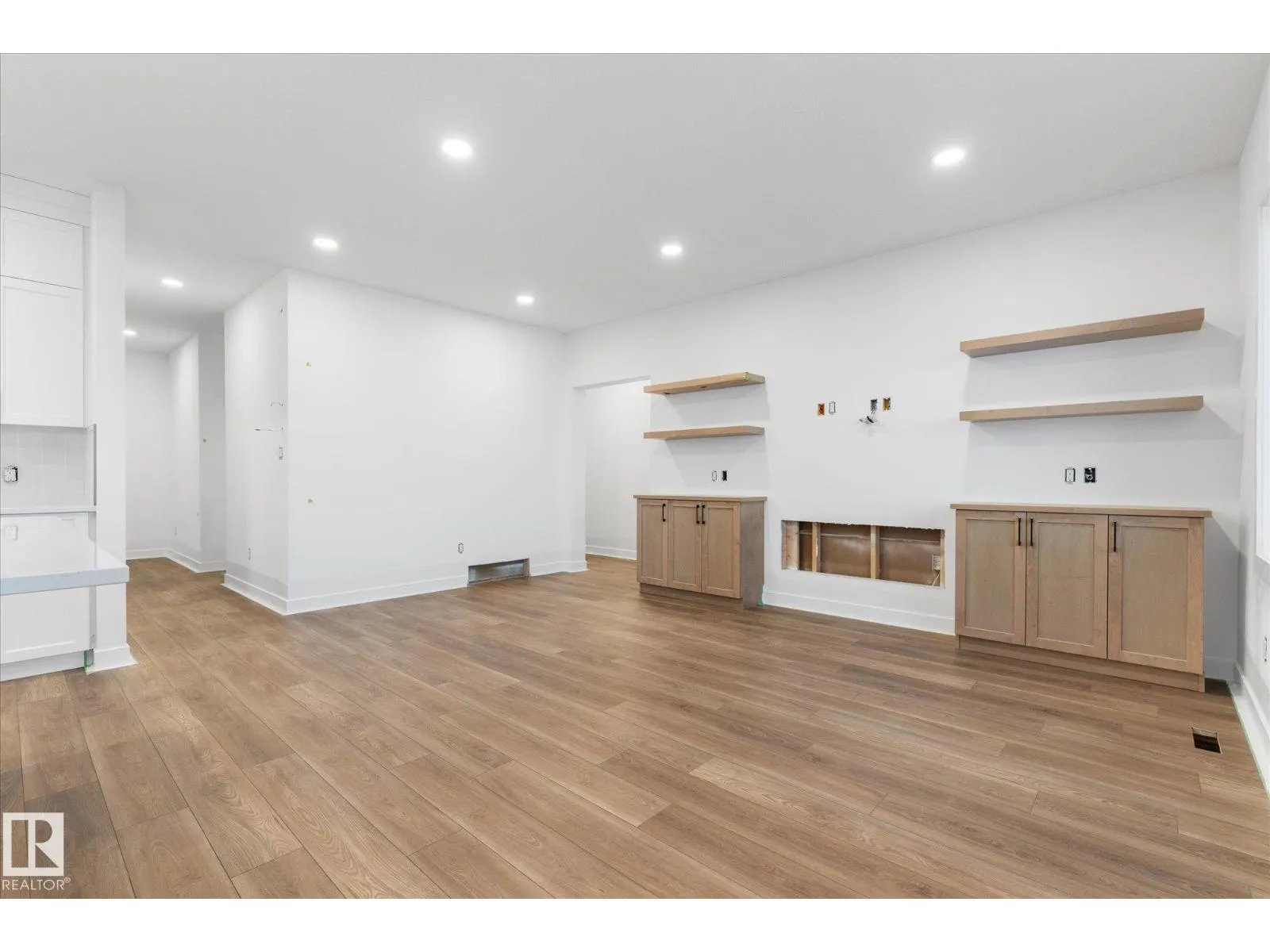Brand new executive bungalow by Southbend Developments in Deer Park, Spruce Grove. This open-concept home features wide LVP flooring, recessed lighting, and a stunning electric fireplace with custom cabinetry and floating shelves. The kitchen is elegantly finished with full-height white cabinetry, white quartz countertops, a substantial island with concealed under-island storage, wall oven, and a massive walk-through pantry designed for seamless organization. Primary suite includes deck access, walk-in closet, and 4-piece ensuite with his and hers sinks and large walk-in tiled shower. Second bedroom/den, additional 4-piece bath, and mudroom with laundry off the triple attached garage. Separate side entrance to basement provides excellent future development or suite potential. Deck access from dining and primary. Close to parks, schools, and amenities. (id:27476)