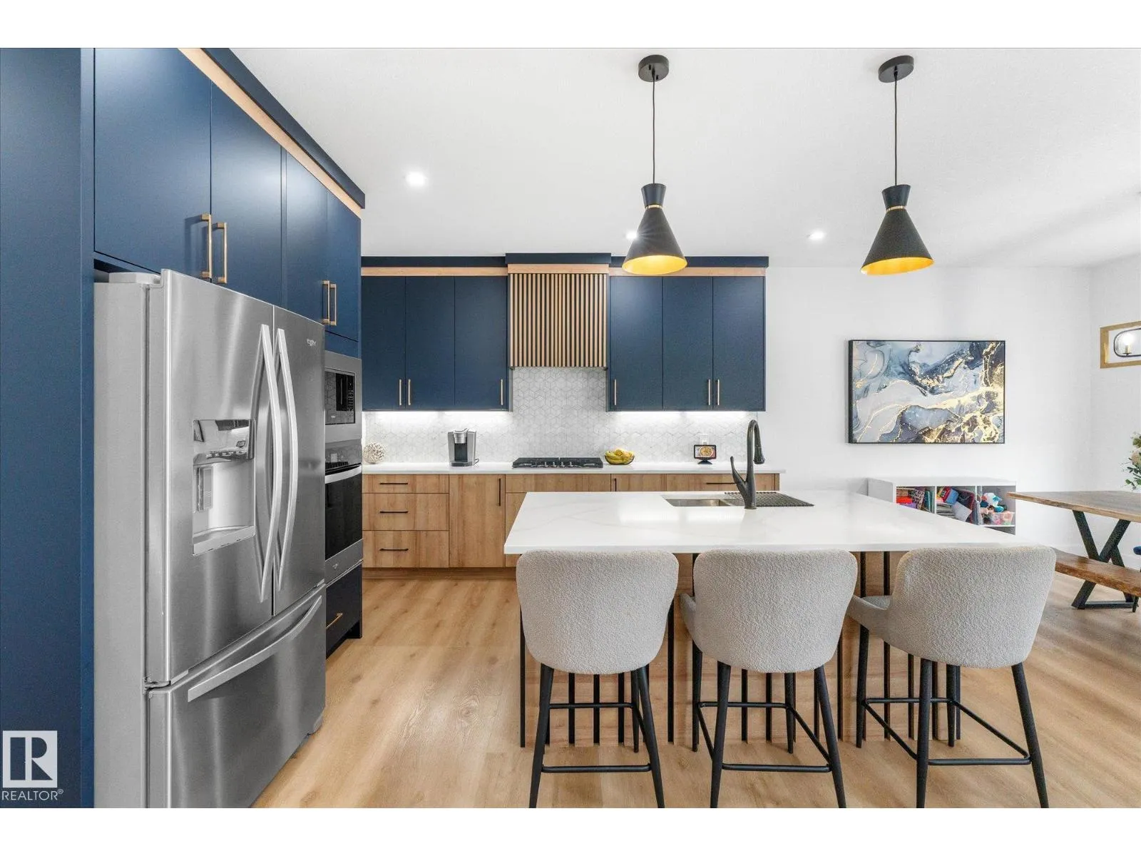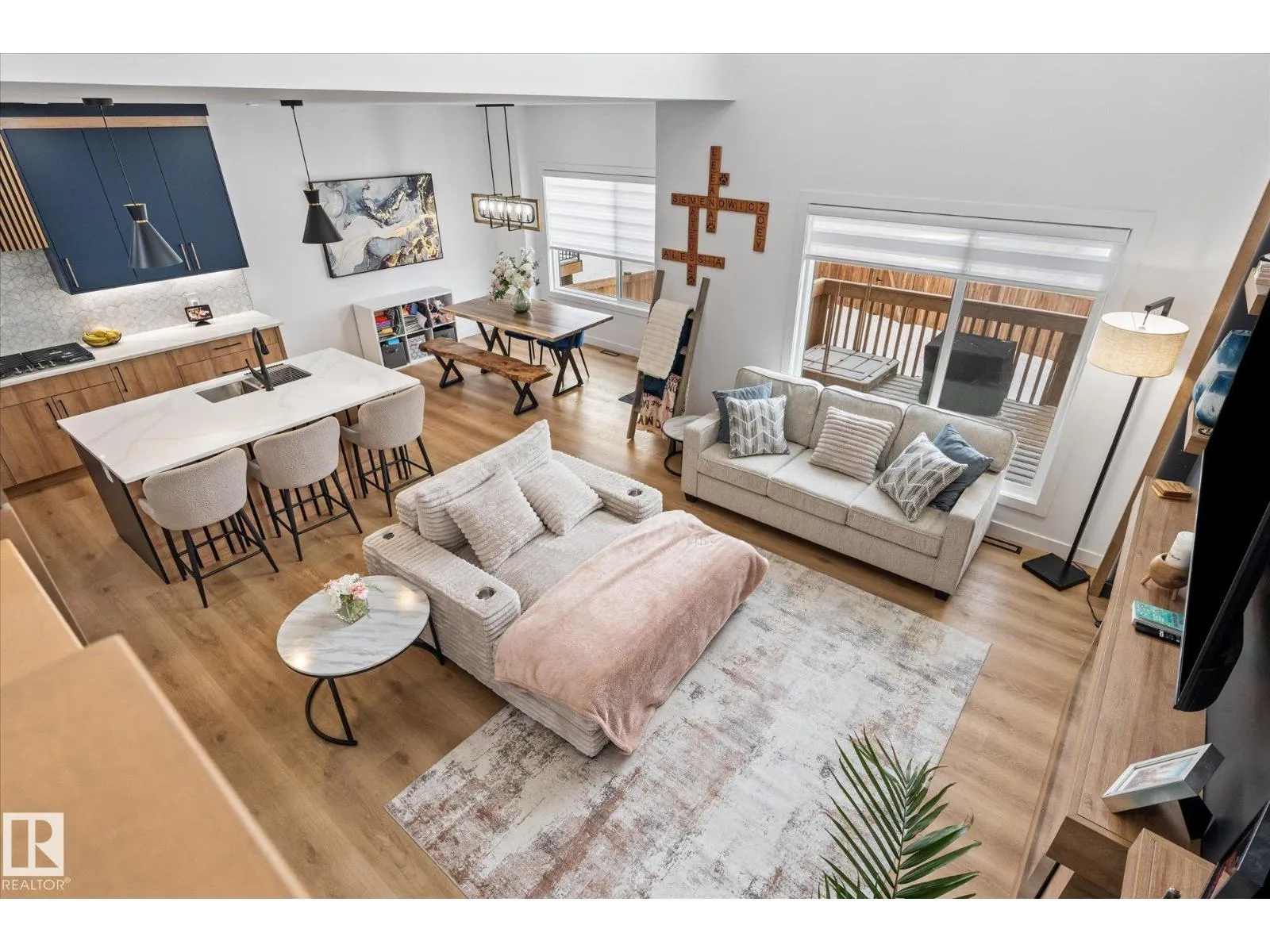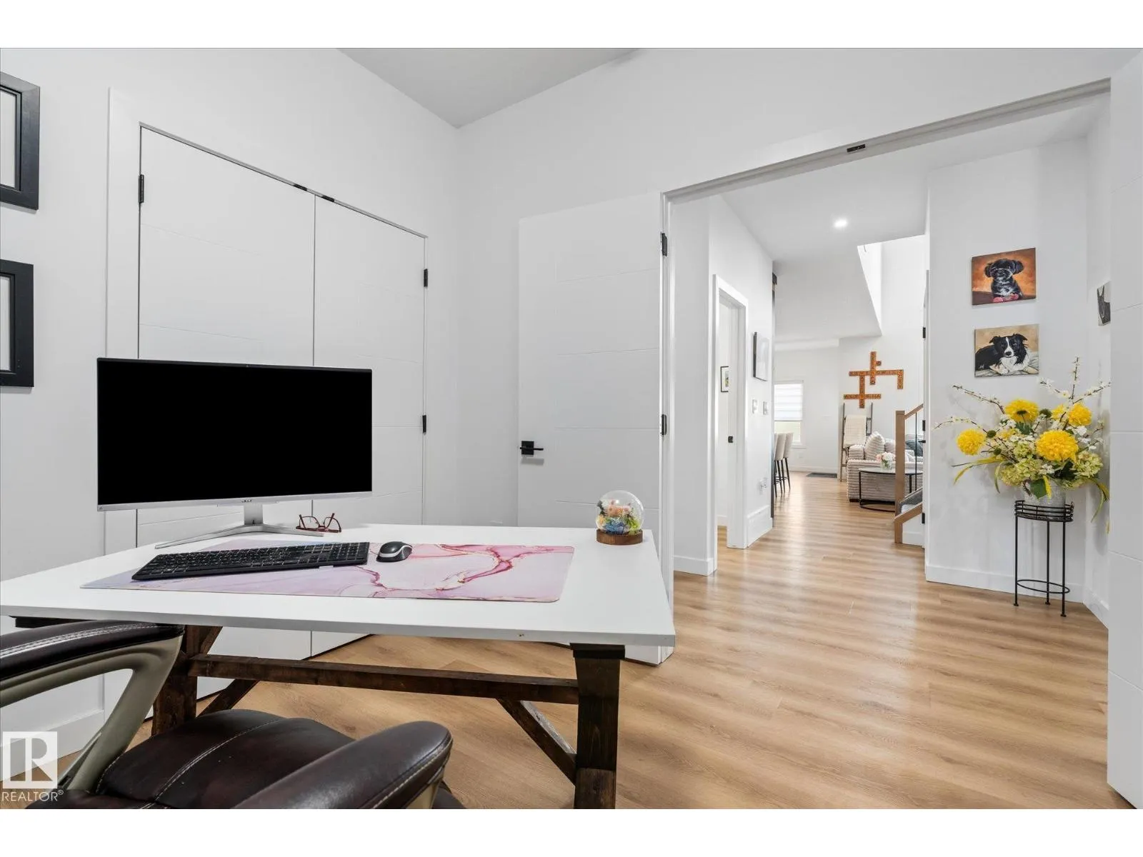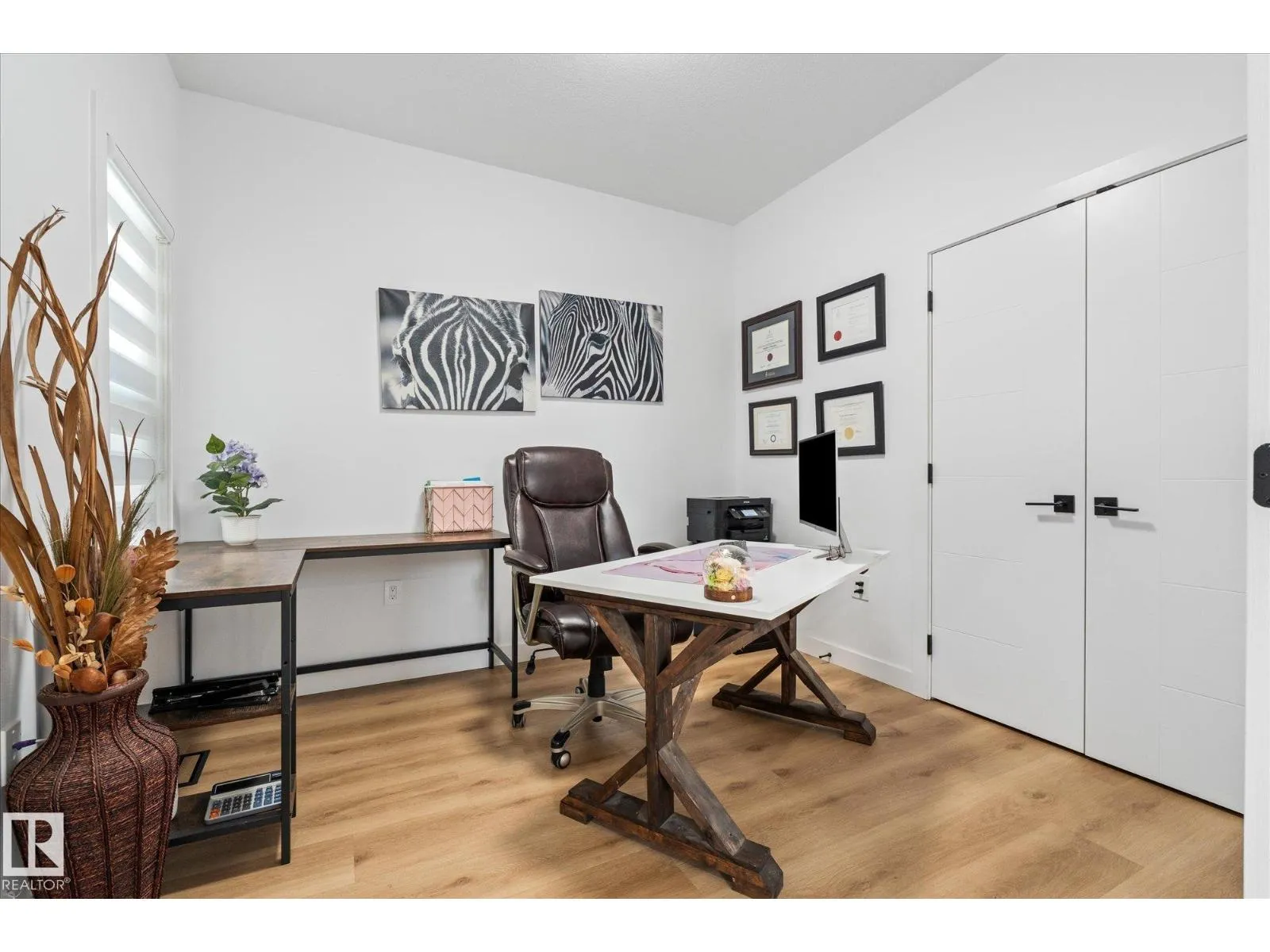 Located in the community of Tonewood, this impressive two storey home offers almost 2,300 sq. ft. of air conditioned living space designed for modern family life. The main floor features vinyl plank flooring, a versatile bedroom or office, and a show stopping open living area with soaring ceilings and a gas fireplace. The sleek kitchen shines with quartz countertops, full height cabinetry, stainless steel appliances, a large island, and a walk through pantry flowing seamlessly into a sun filled dining space. Upstairs, the primary retreat boasts a five piece ensuite and a giant walk in closet with custom, high end organizers, while two additional bedrooms each offer generously sized closets with incredible built in organizers. A full bath, upper floor laundry, and a spacious bonus room complete the level. The unfinished basement provides future development potential, while the fully fenced and landscaped backyard with deck, triple pane windows throughout, and a gas BBQ hookup make this move in ready. (id:27476)