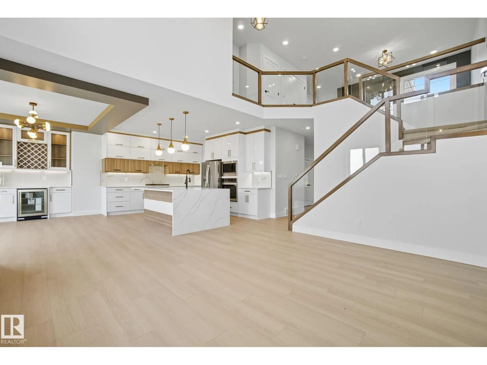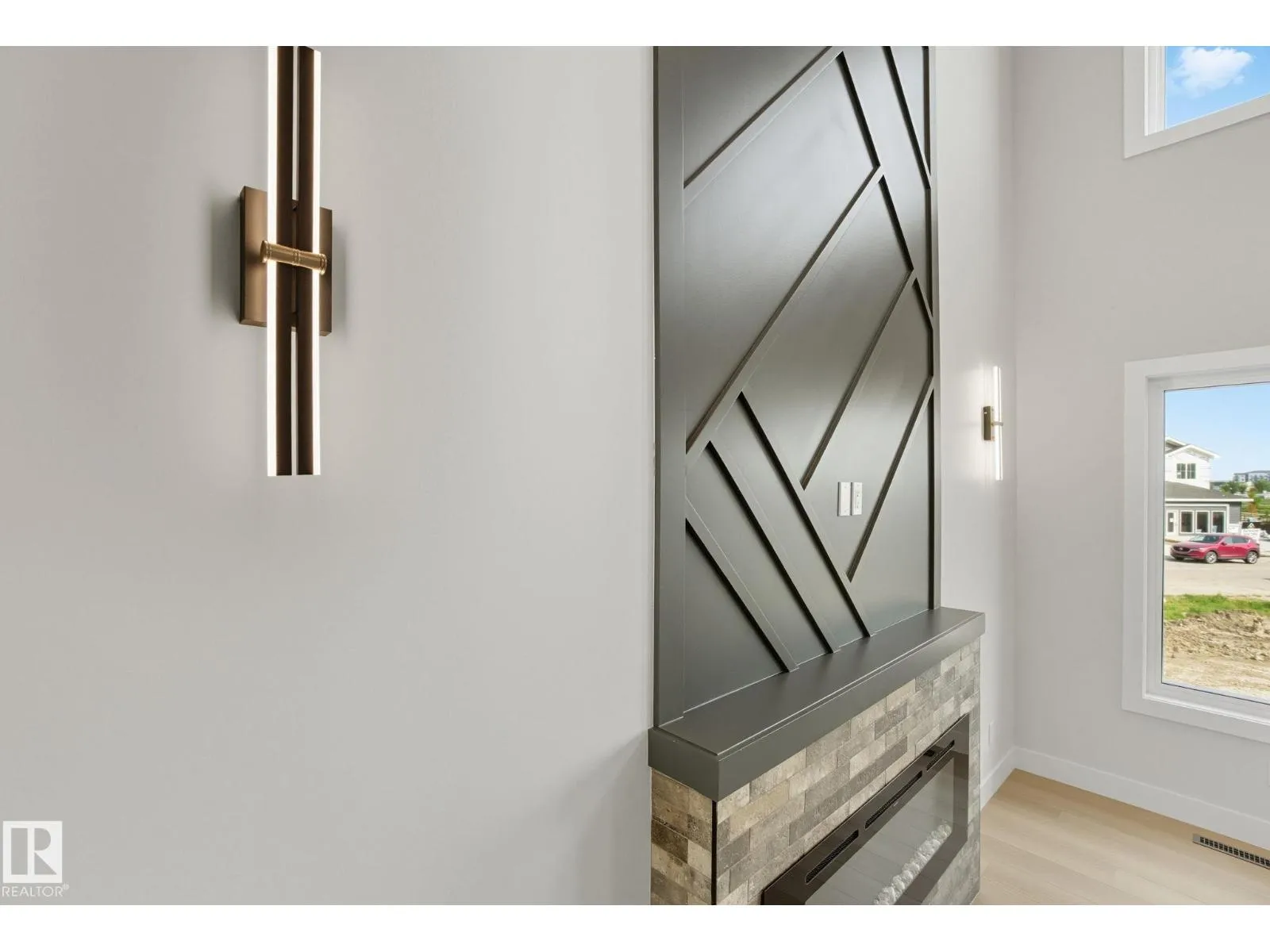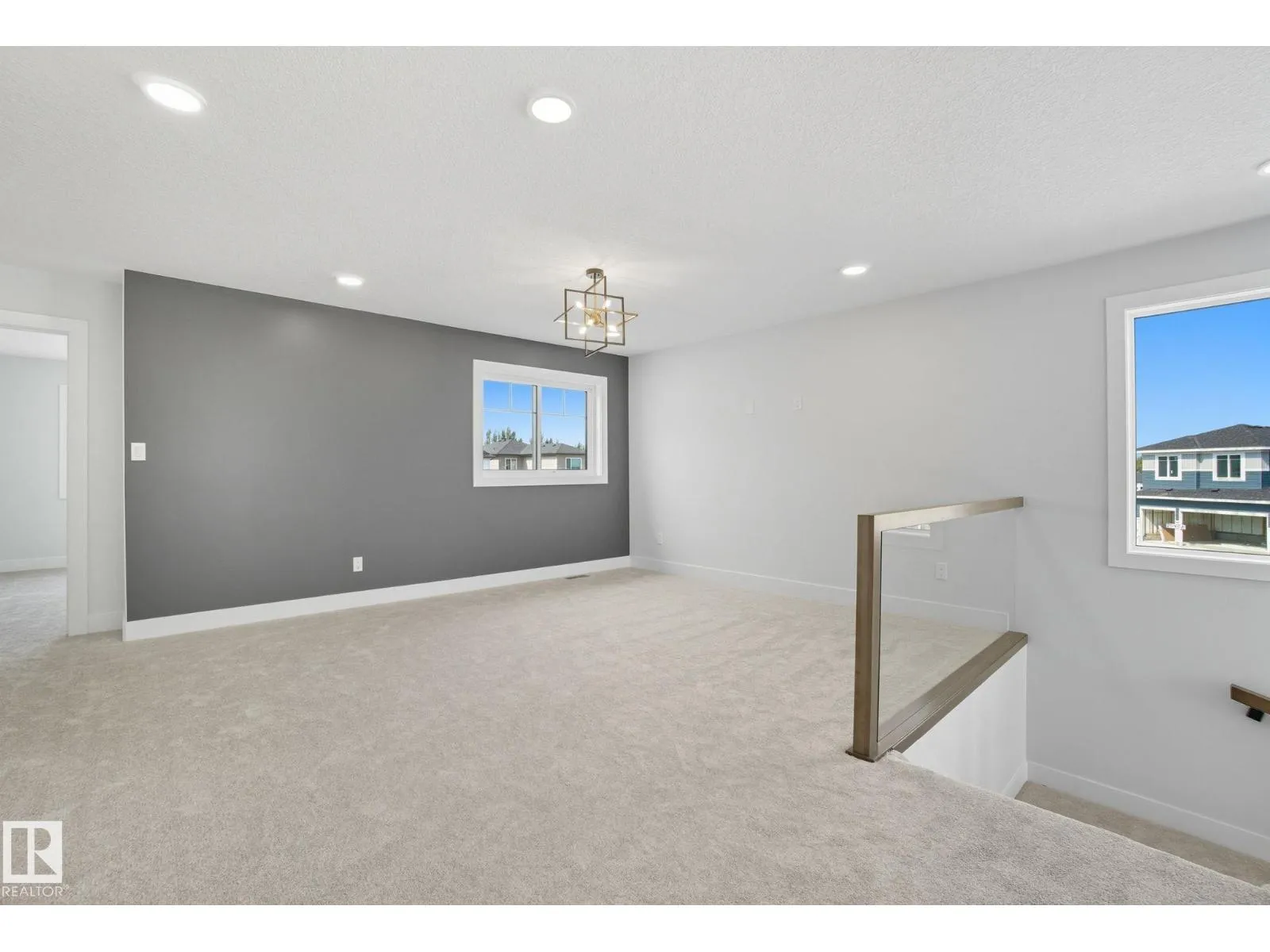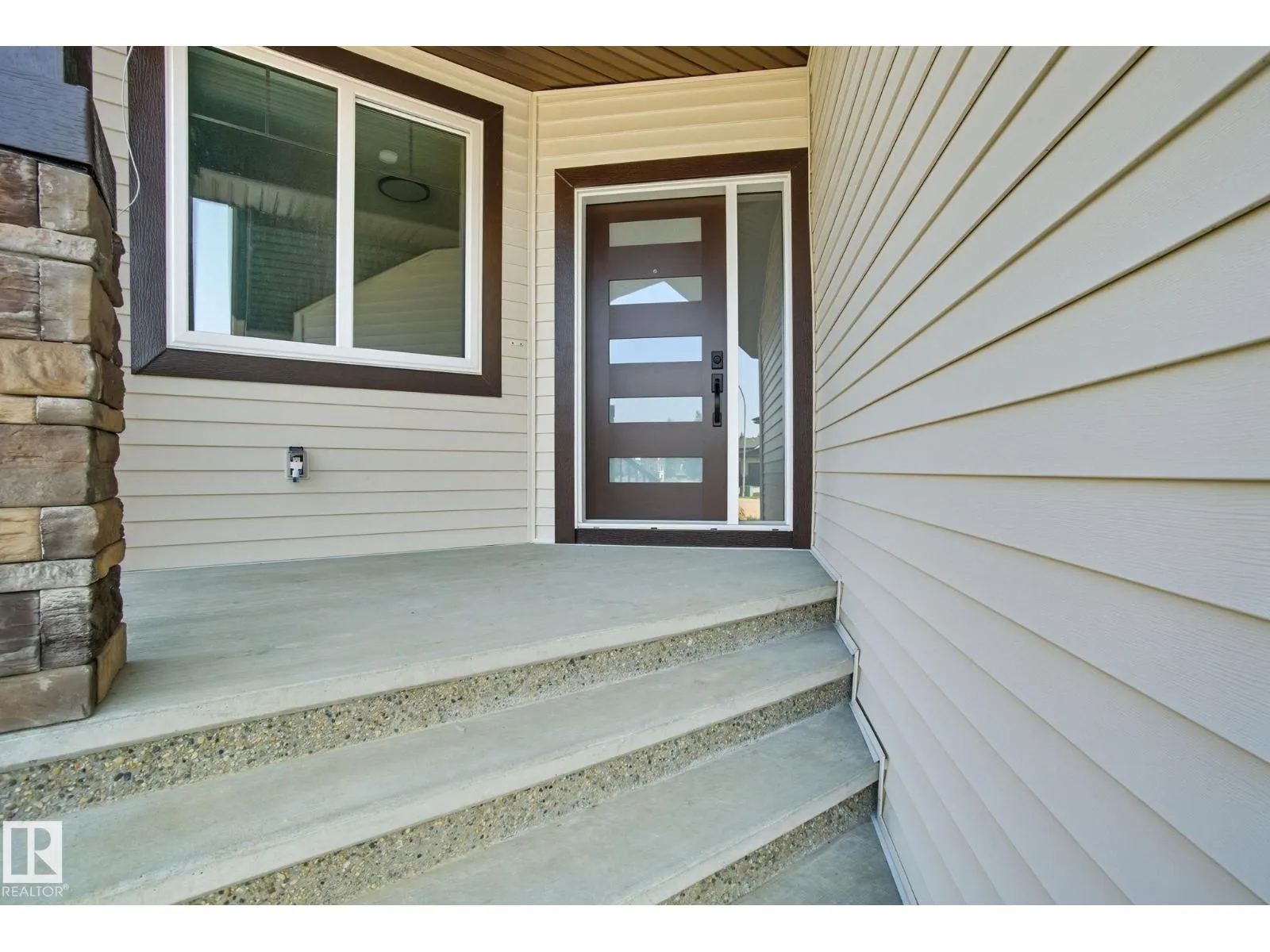 Built by Sunnyview Homes. 4 bedrooms and 3 full bathrooms. TRIPLE car garage w/huge driveway. This stunning home offers a main floor bedroom and full bathroom. The spacious open to below great room features a beautiful accent wall with electric fireplace. The upgraded kitchen boasts sleek ceiling height cabinetry, a walkthrough pantry and a nook with a built-in beverage station. The mudroom offers double coat closets w/a built in bench. A glass railing staircase with maple handrail and step lighting leads to the upper level central bonus room. The primary suite showcases a coffered ceiling and barn door entry to a spa like en-suite with double vanity, jacuzzi, custom glass-enclosed shower, and a WIC with MDF shelving. 2 additional bedrooms share a 4-piece bathroom. Finished with modern upgrades and quality craftsmanship throughout. Features, 3 gas lines, quartz, designer lighting pkg, plush carpet, accent walls, garage w/drain and hot/cold water lines. SEPARATE side entrance to the basement. (id:27476)