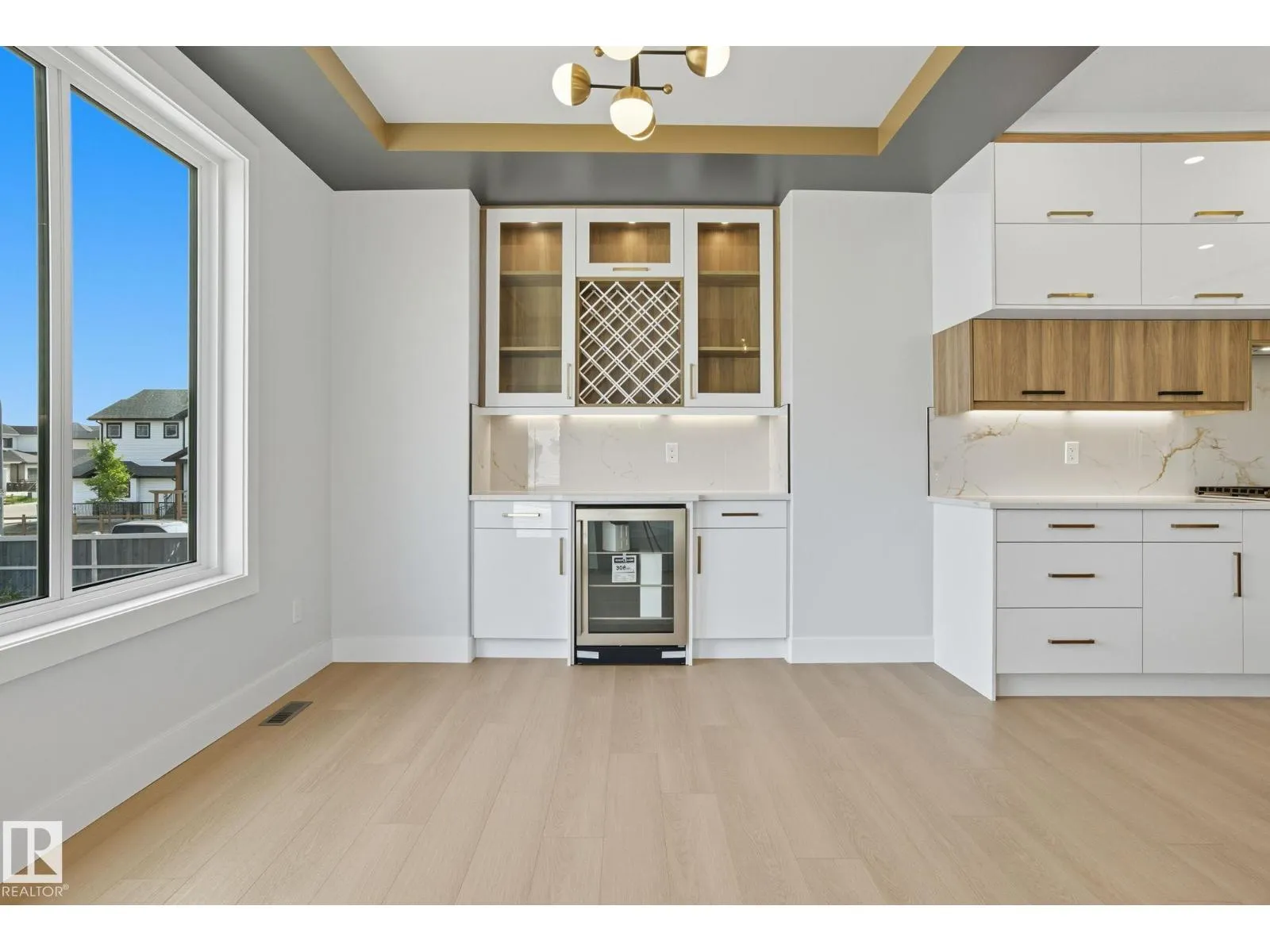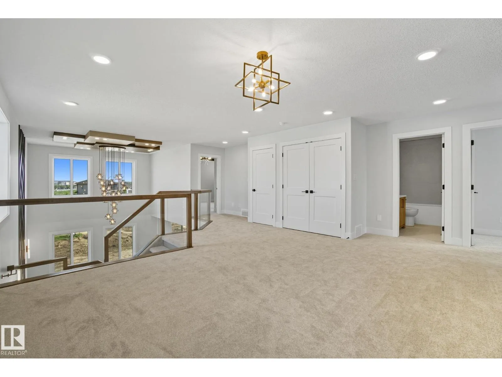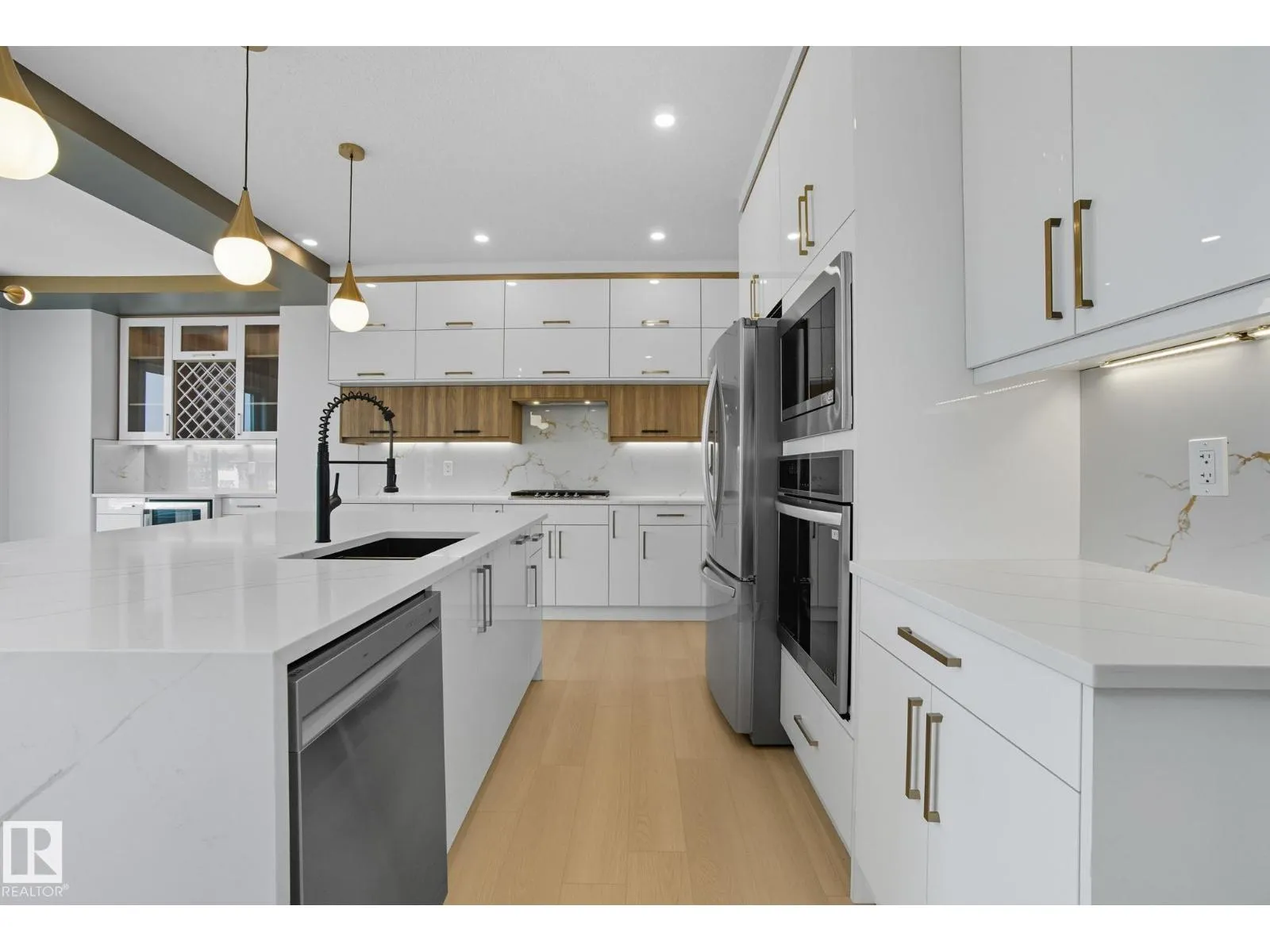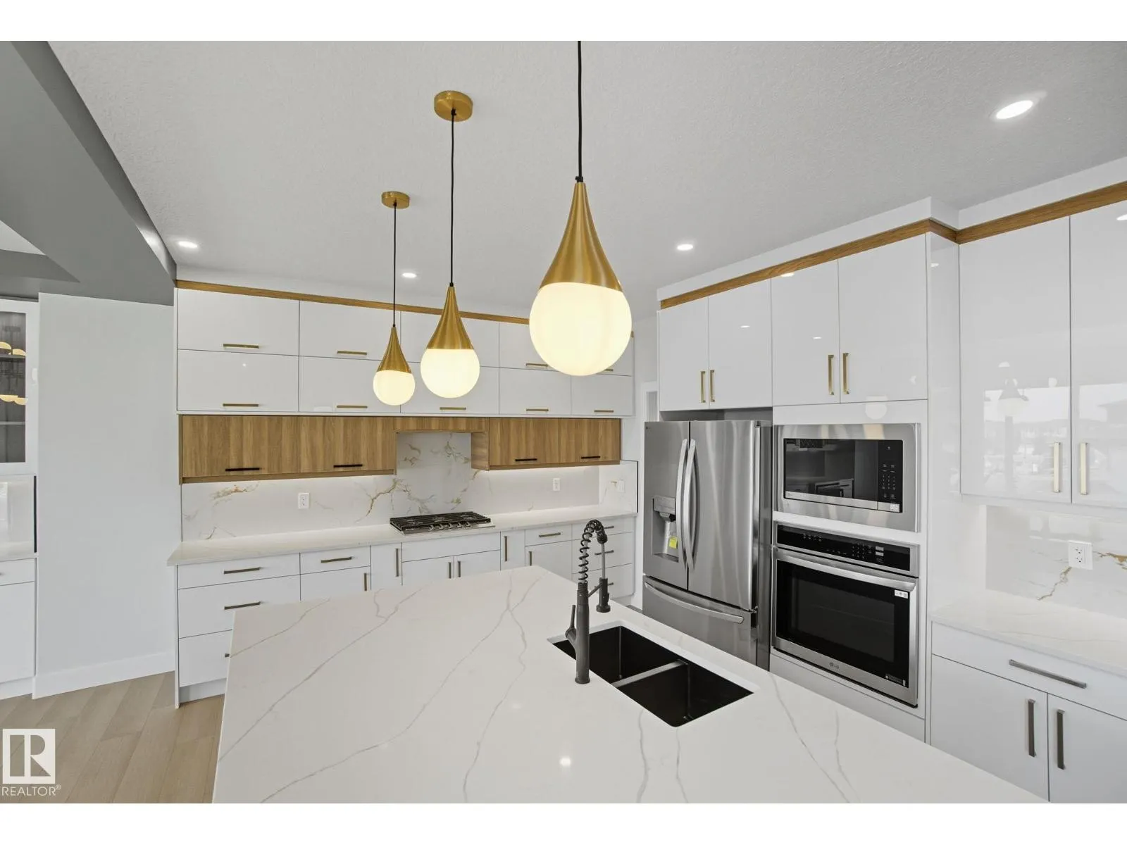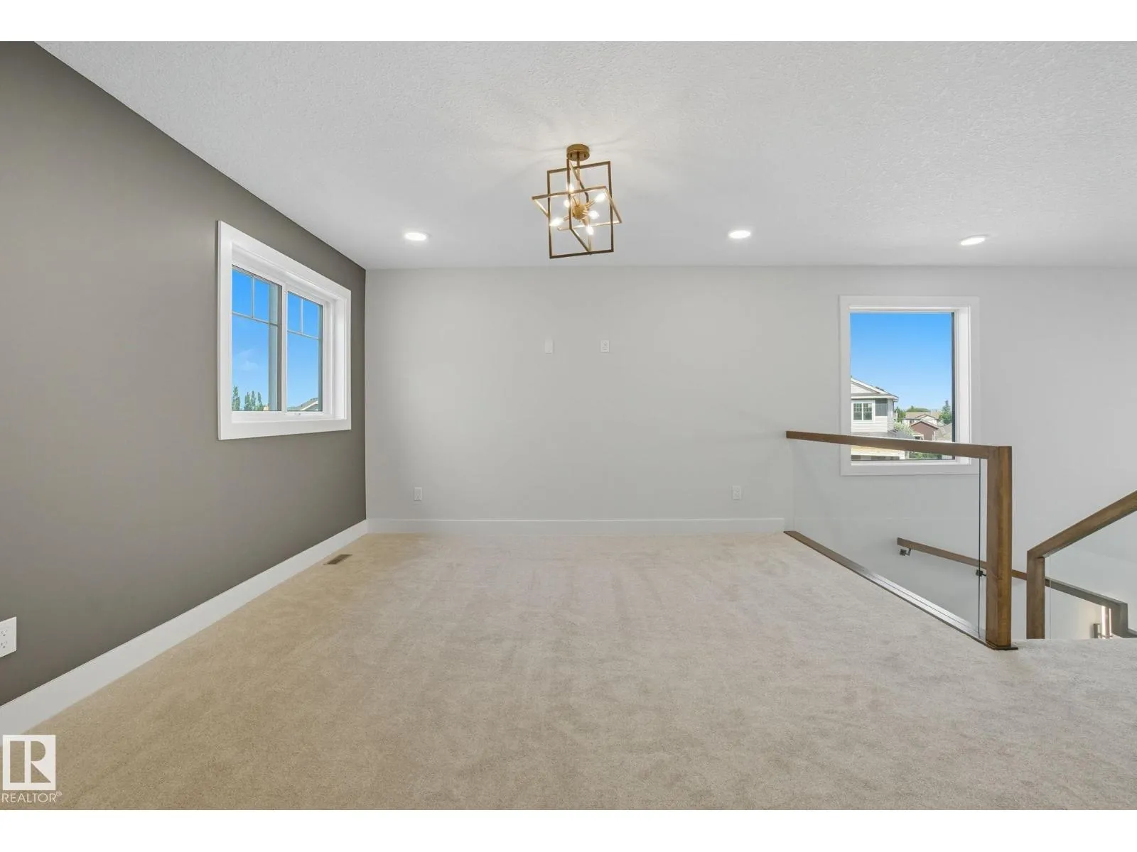 Built by Sunnyview Homes. 4 bedrooms and 3 full bathrooms. TRIPLE car garage w/huge driveway. This stunning home offers a main floor bedroom and full bathroom. The spacious open to below great room features a beautiful accent wall with electric fireplace. The upgraded kitchen boasts sleek ceiling height cabinetry, a walkthrough pantry and a nook with a built-in beverage station. The mudroom offers double coat closets w/a built in bench. A glass railing staircase with maple handrail and step lighting leads to the upper level central bonus room. The primary suite showcases a coffered ceiling and barn door entry to a spa like en-suite with double vanity, jacuzzi, custom glass-enclosed shower, and a WIC with MDF shelving. 2 additional bedrooms share a 4-piece bathroom. Finished with modern upgrades and quality craftsmanship throughout. Features, 3 gas lines, quartz, designer lighting pkg, plush carpet, accent walls, garage w/drain and hot/cold water lines. SEPARATE side entrance to the basement. (id:27476)