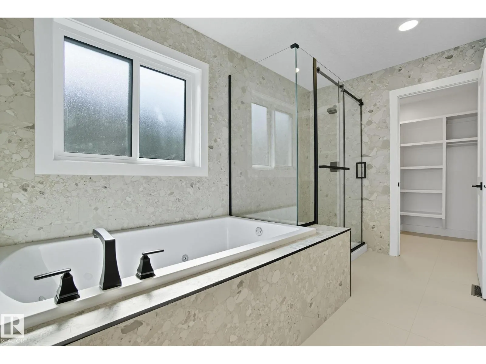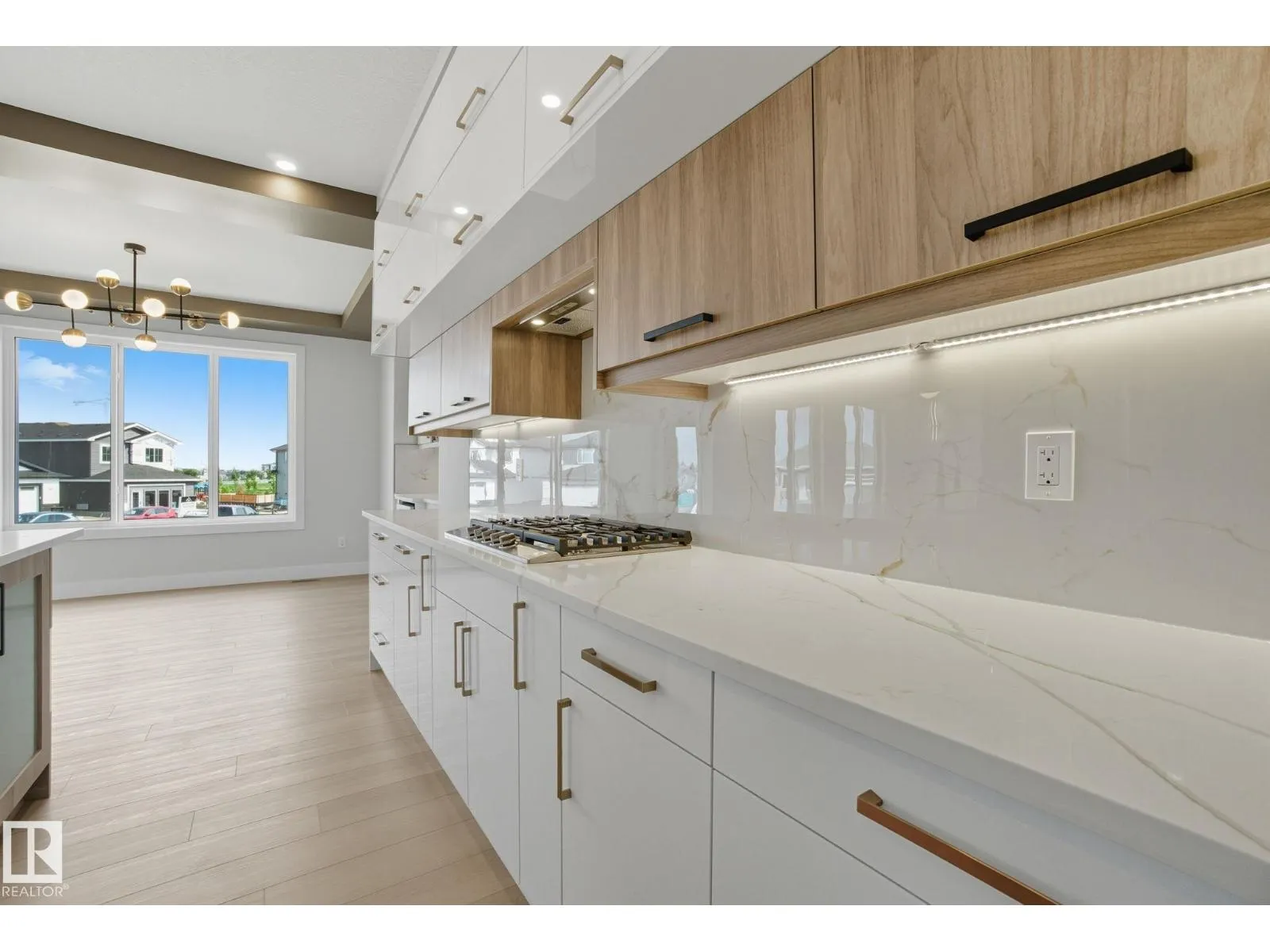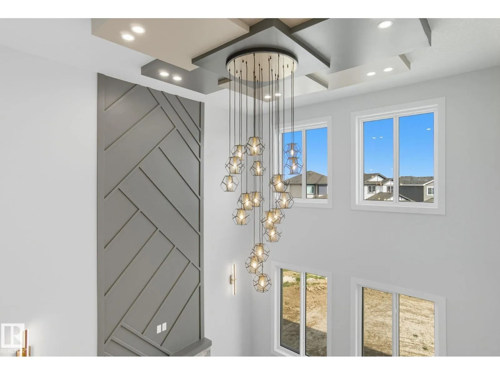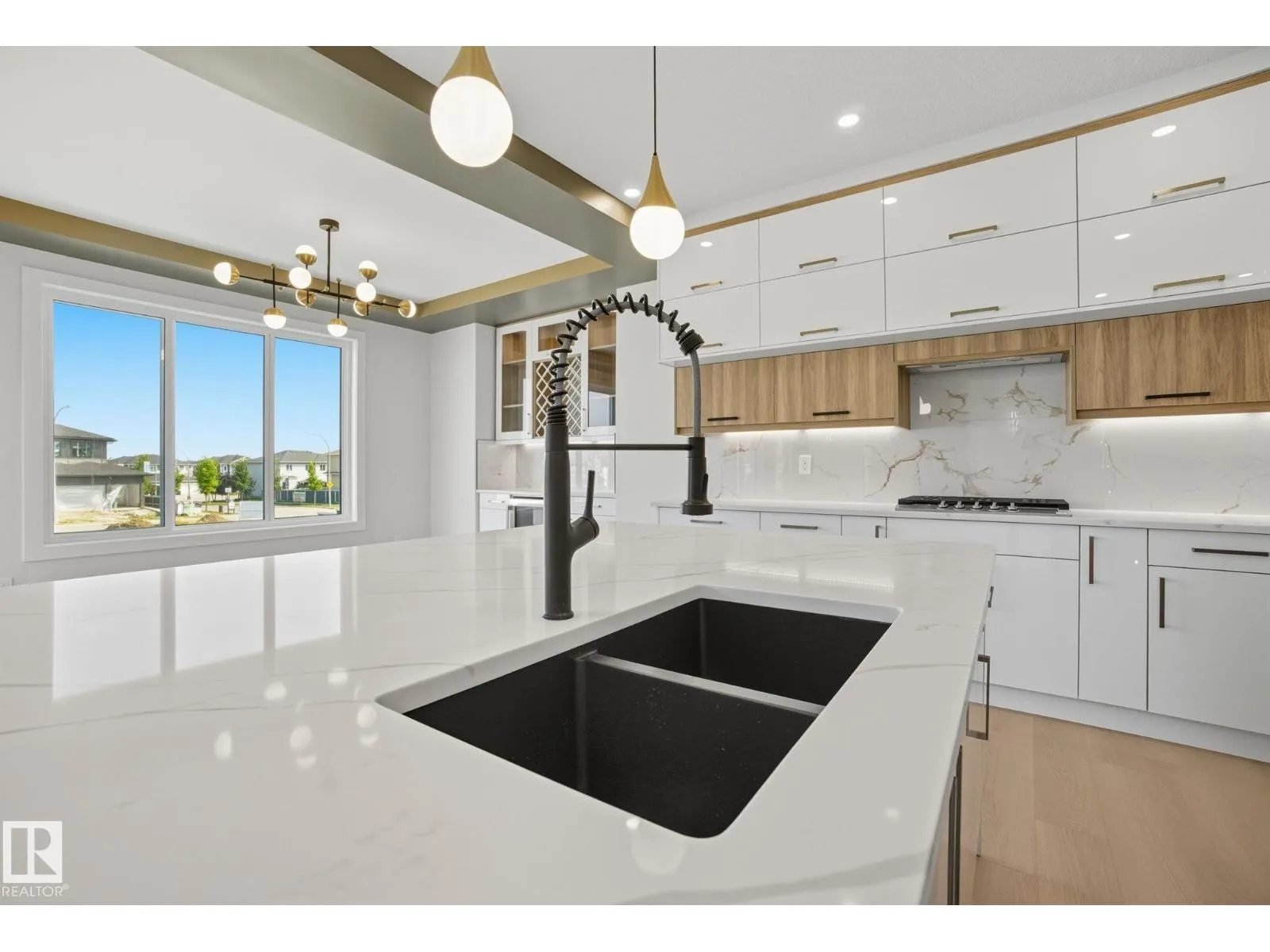 Built by Sunnyview Homes. 4 bedrooms and 3 full bathrooms. TRIPLE car garage w/huge driveway. This stunning home offers a main floor bedroom and full bathroom. The spacious open to below great room features a beautiful accent wall with electric fireplace. The upgraded kitchen boasts sleek ceiling height cabinetry, a walkthrough pantry and a nook with a built-in beverage station. The mudroom offers double coat closets w/a built in bench. A glass railing staircase with maple handrail and step lighting leads to the upper level central bonus room. The primary suite showcases a coffered ceiling and barn door entry to a spa like en-suite with double vanity, jacuzzi, custom glass-enclosed shower, and a WIC with MDF shelving. 2 additional bedrooms share a 4-piece bathroom. Finished with modern upgrades and quality craftsmanship throughout. Features, 3 gas lines, quartz, designer lighting pkg, plush carpet, accent walls, garage w/drain and hot/cold water lines. SEPARATE side entrance to the basement. (id:27476)
