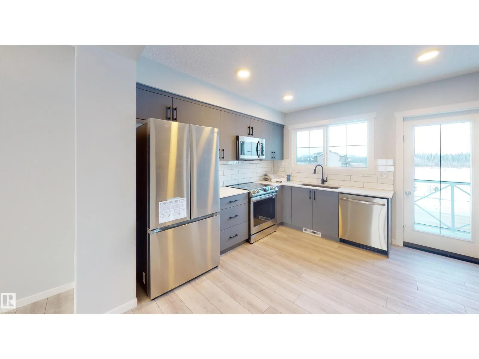 NO CONDO FEES and AMAZING VALUE! You read that right welcome to this brand new townhouse unit the âAbbeyâ Built by StreetSide Developments and is located in one of Spruce Groves newest premier communities of Easton. With almost 1098 square Feet, it comes with front yard landscaping and a single over sized attached garage, this opportunity is perfect for a young family or young couple. Your main floor is complete with upgrade luxury Vinyl Plank flooring throughout the great room and the kitchen. The main entrance/ main floor has a good sized Den that can be also used as a bedroom, it also had a 2 piece bathroom. Highlighted in your new kitchen are upgraded cabinets, upgraded counter tops and a tile back splash. The upper level has 2 bedrooms and 2 full bathrooms. *** Photos used are from the same style home recently built recently the color's and finishings may vary ,will be complete this week and photos will be updated *** (id:27476)
