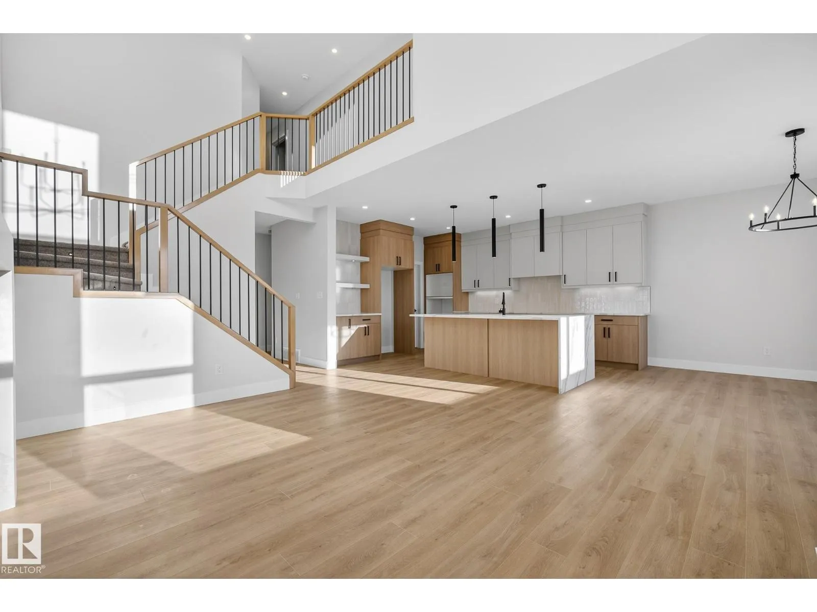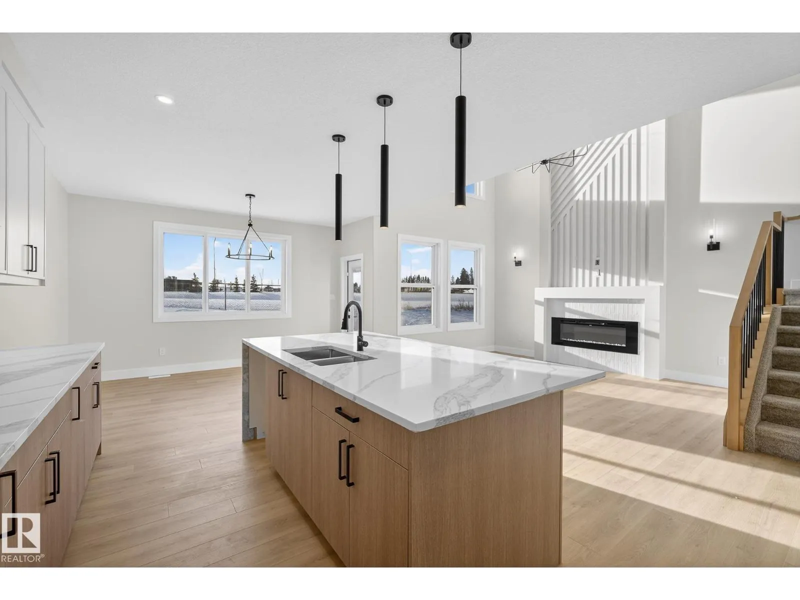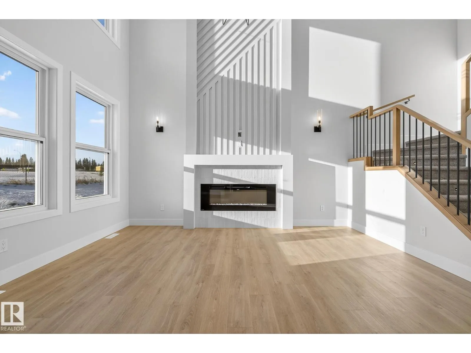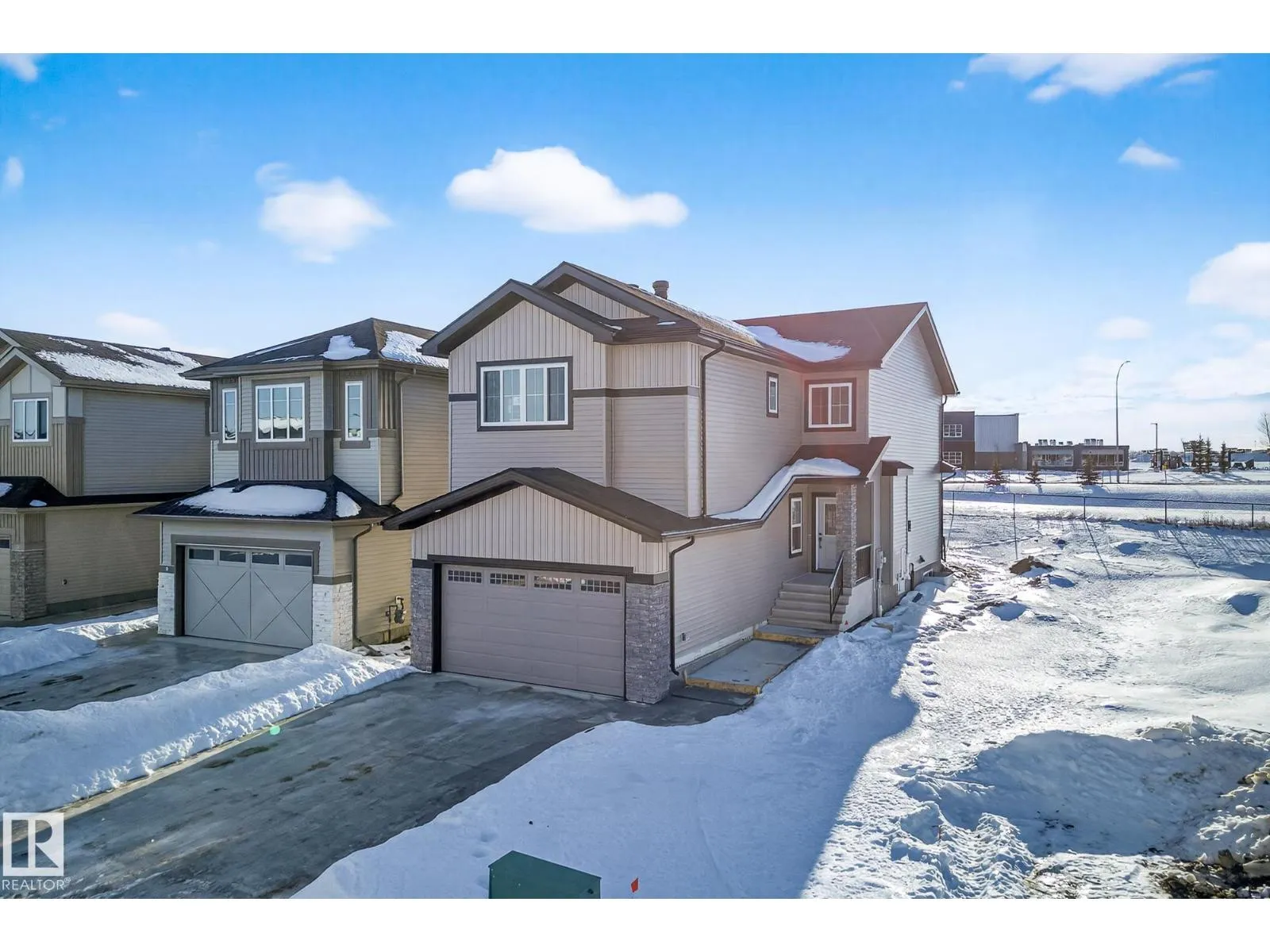 Experience this stunning New Era home with no rear neighbours, offering exceptional privacy and modern design. Thoughtfully crafted with an open-concept layout, the home features 9' ceilings on the main and basement levels and a dramatic open-to-above great room complete with an electric fireplace and custom feature wall. The main floor offers a versatile den or optional fourth bedroom, a convenient half bath, and a chef-inspired kitchen showcasing quartz countertops and full-height cabinetry. Upstairs, enjoy a spacious bonus room with a tray ceiling, three well-appointed bedrooms, and a laundry room that connects directly to the primary ensuite for added convenience. The primary retreat features dual sinks, a freestanding soaker tub, and a tiled shower, creating a true spa-like experience. Additional highlights include a separate side entrance, tankless gas hot water system, MDF shelving, and an unfinished basement ready for your personal touch. MOVE-IN READY. (id:27476)