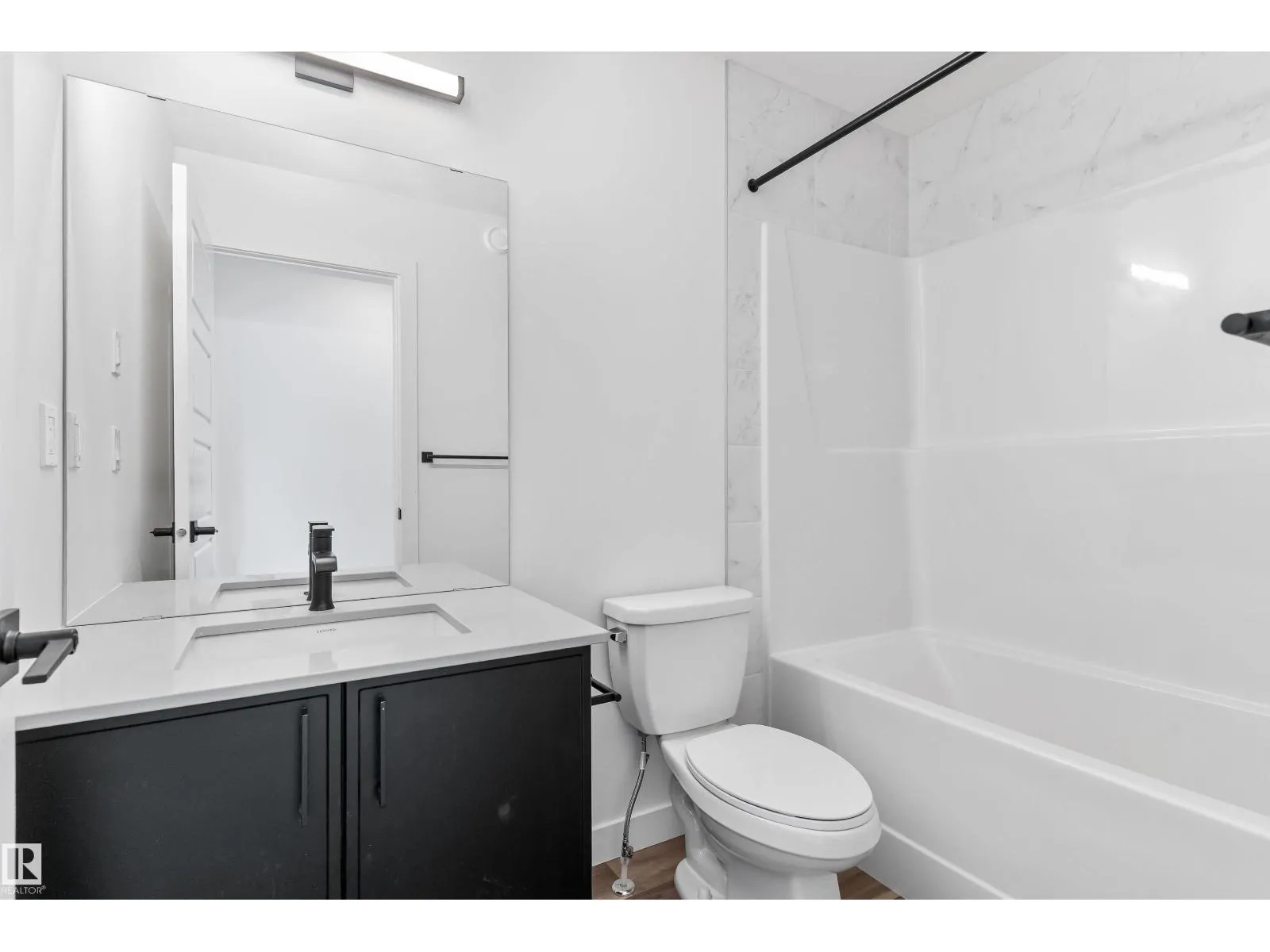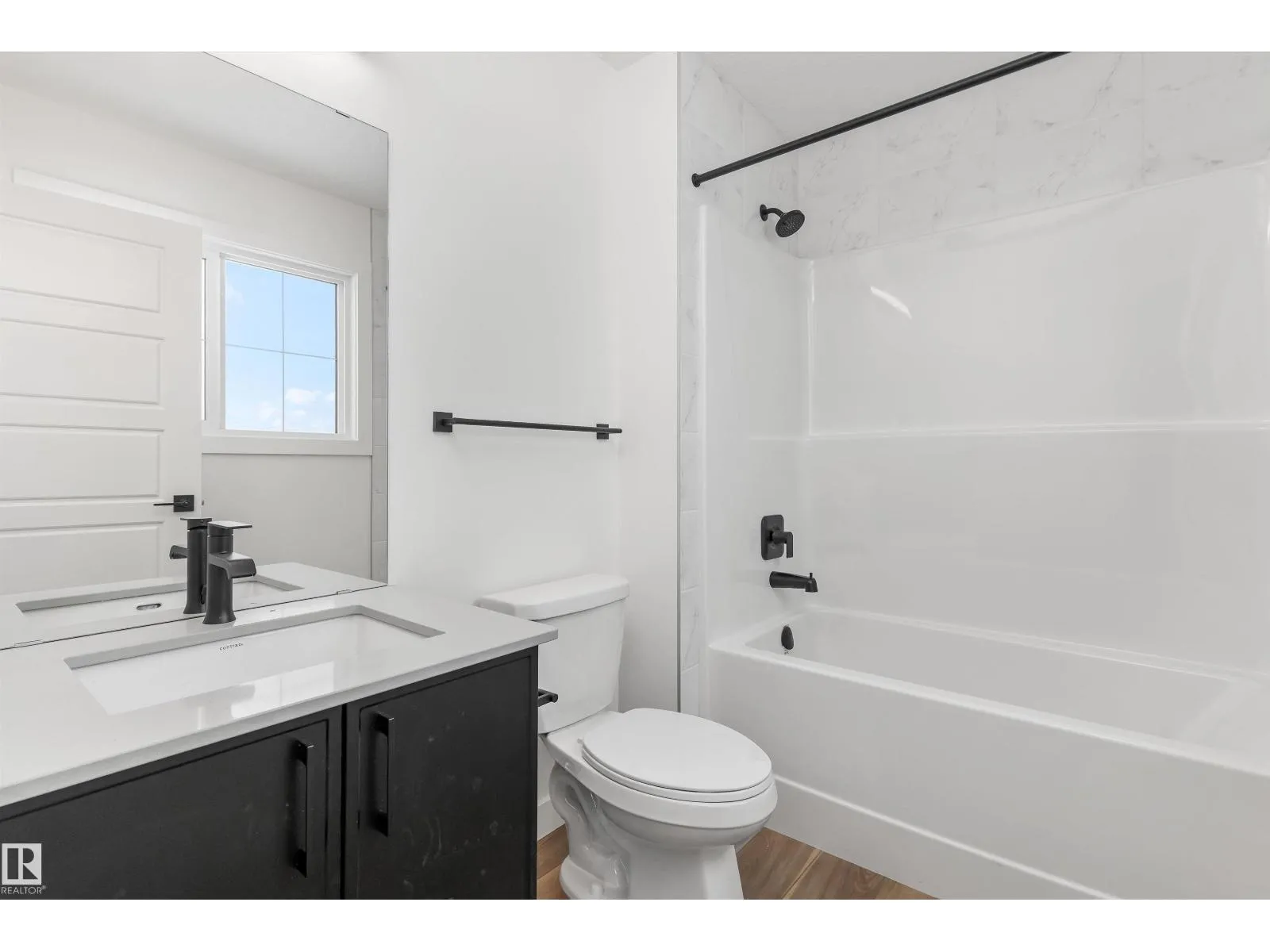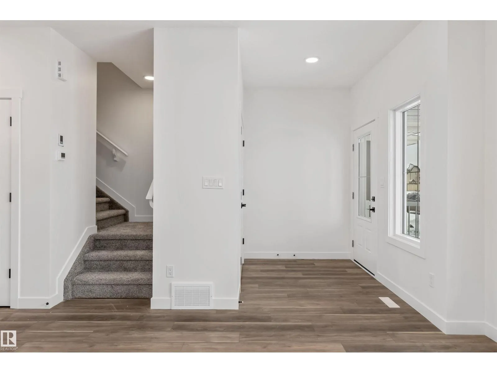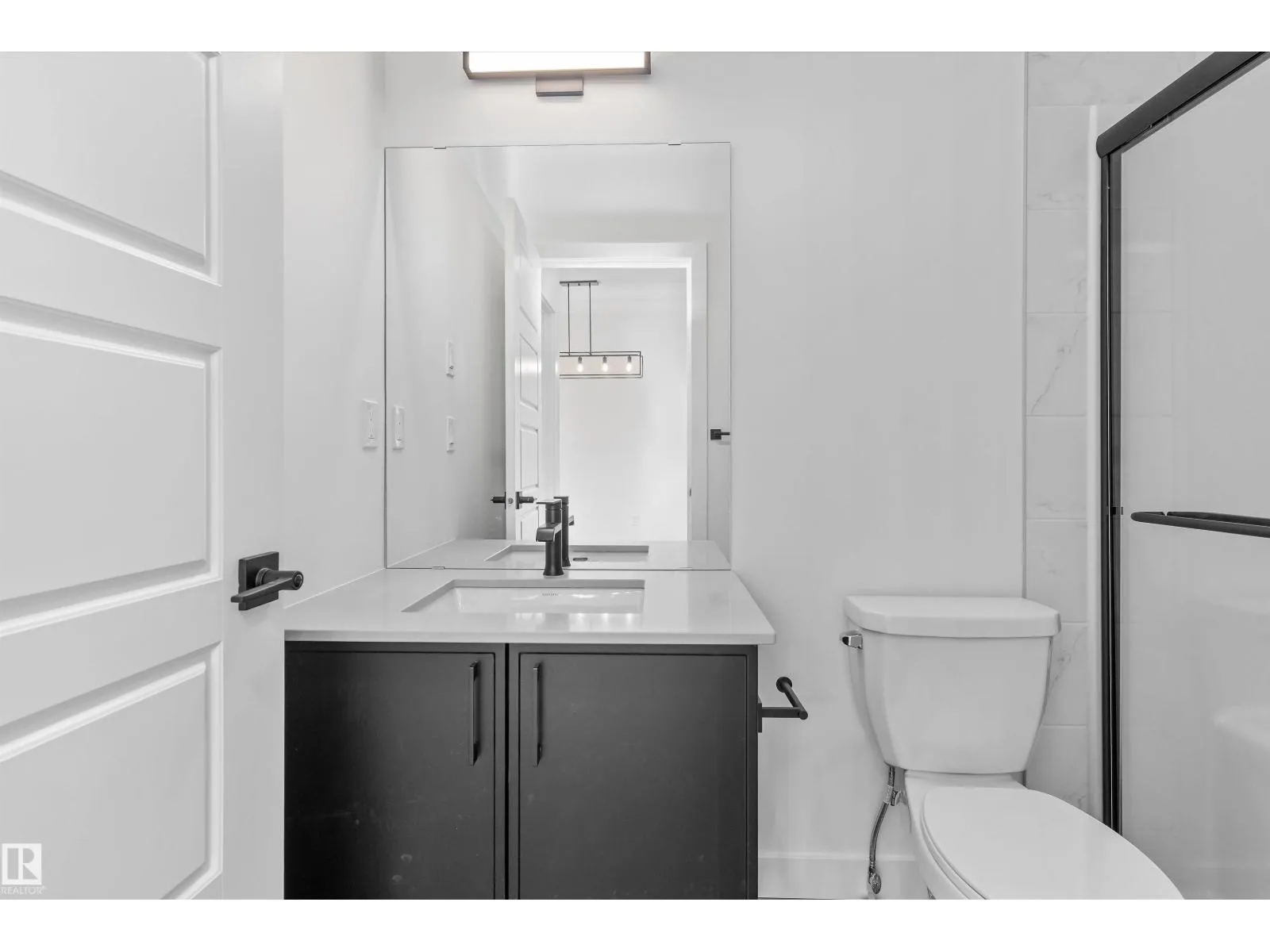 The Sylvan exudes superior craftsmanship, featuring 9â ceilings and Luxury Vinyl Plank flooring that transitions from an inviting foyer into a sun-filled front great room. The central kitchen functions as a stylish hub, equipped with quartz surfaces, a flush-ledge island with a Silgranit sink, and upgraded soft-close cabinetry paired with a tucked-away pantry. Uniquely designed for flexibility, the rear of the main floor includes a secluded bedroom and a full three-piece bath with a walk-in shower, situated near a bright nook and garden door. Upstairs, the primary suite offers a private sanctuary with a walk-in closet and ensuite, while two additional bedrooms share a second full bath and a convenient laundry closet. Finished with modern black fixtures and a rear parking pad with optional garage potential, this four-bedroom layout delivers exceptional utility and elegance. (id:27476)
