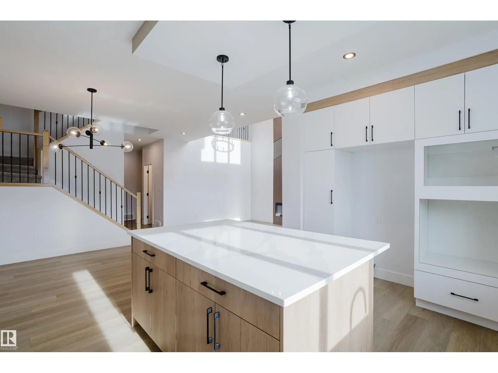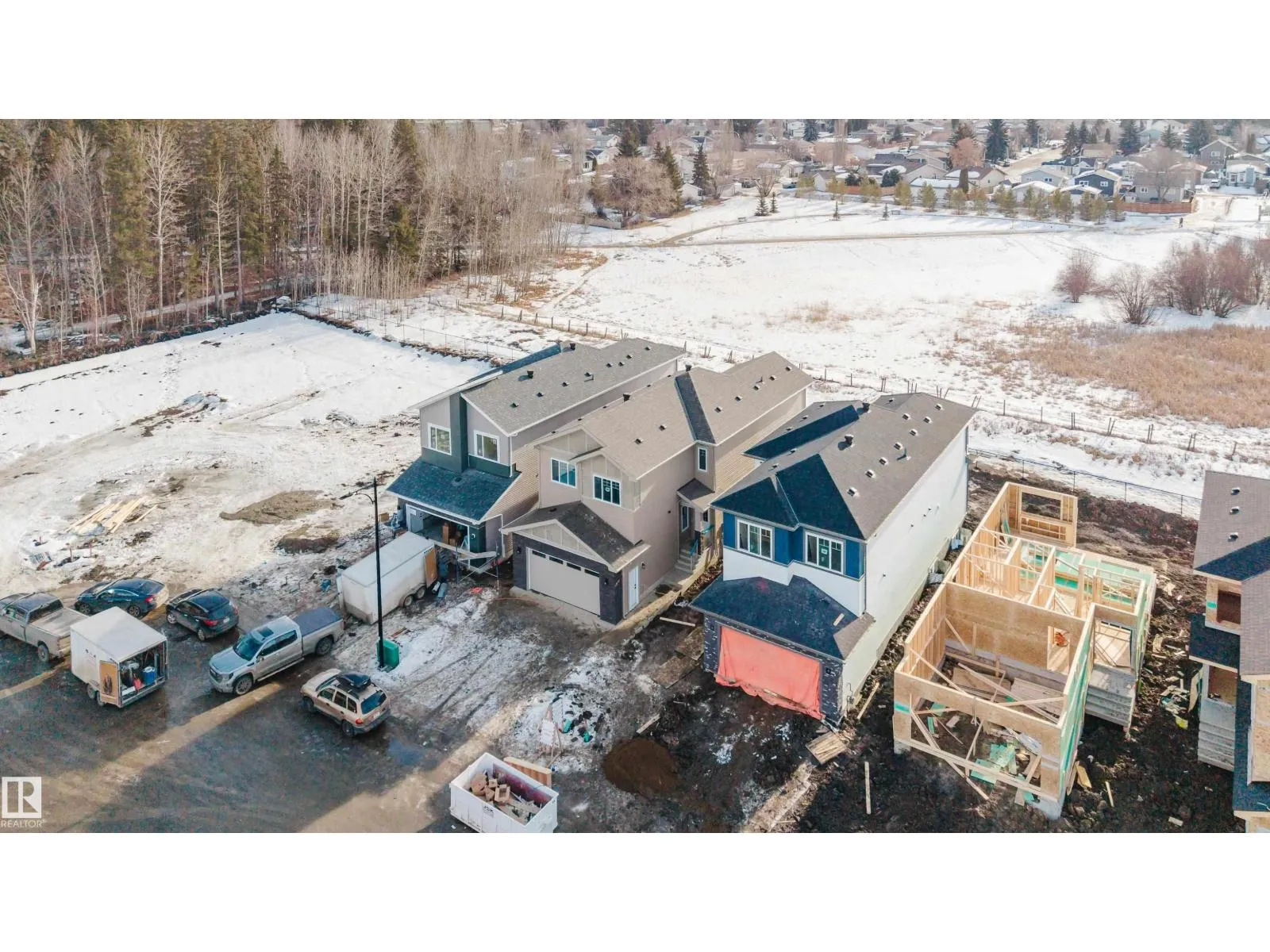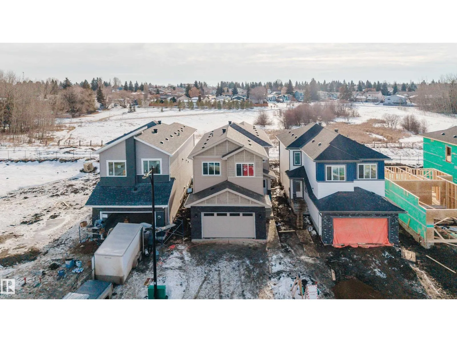 Backing onto a park and recreation area in the community of McLaughlin, Spruce Grove, this brand-new home offers a modern layout designed for comfortable family living. The main floor features a den and a full bathroom with a standing shower, perfect for guests, a home office, or a quiet retreat. The bright open-to-below living room with a fireplace creates an inviting, light-filled space. The wrap-around kitchen boasts a large island, quartz countertops, soft-close modern cabinetry, luxury vinyl plank flooring, and is complemented by contemporary light fixtures throughout. Upstairs, youâll find 3 bedrooms and a second den, along with a spacious bonus room and convenient laundry area, offering flexibility and comfort for the whole family. A side entrance provides excellent potential for future basement development, while the double attached garage adds year-round convenience. Backing onto green space with park and recreation views, this home combines style, functionality, and a family-friendly setting. (id:27476)