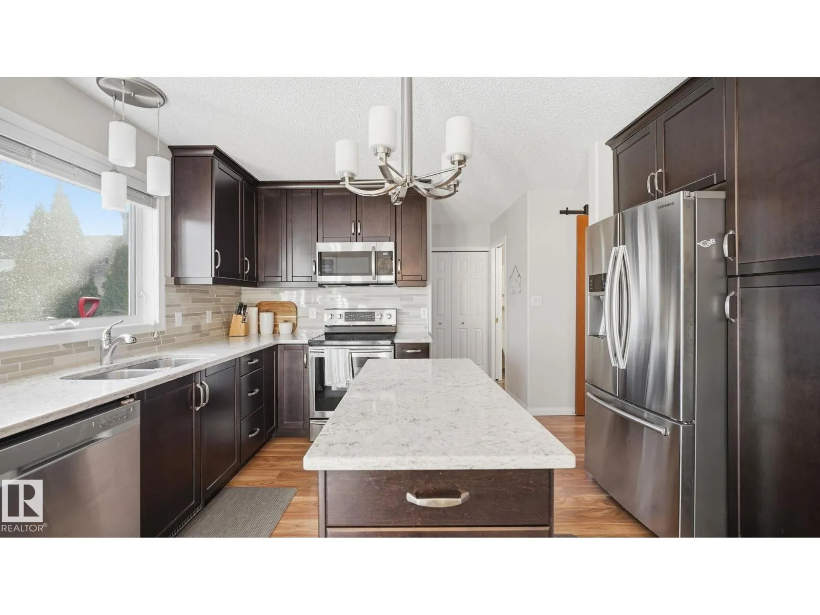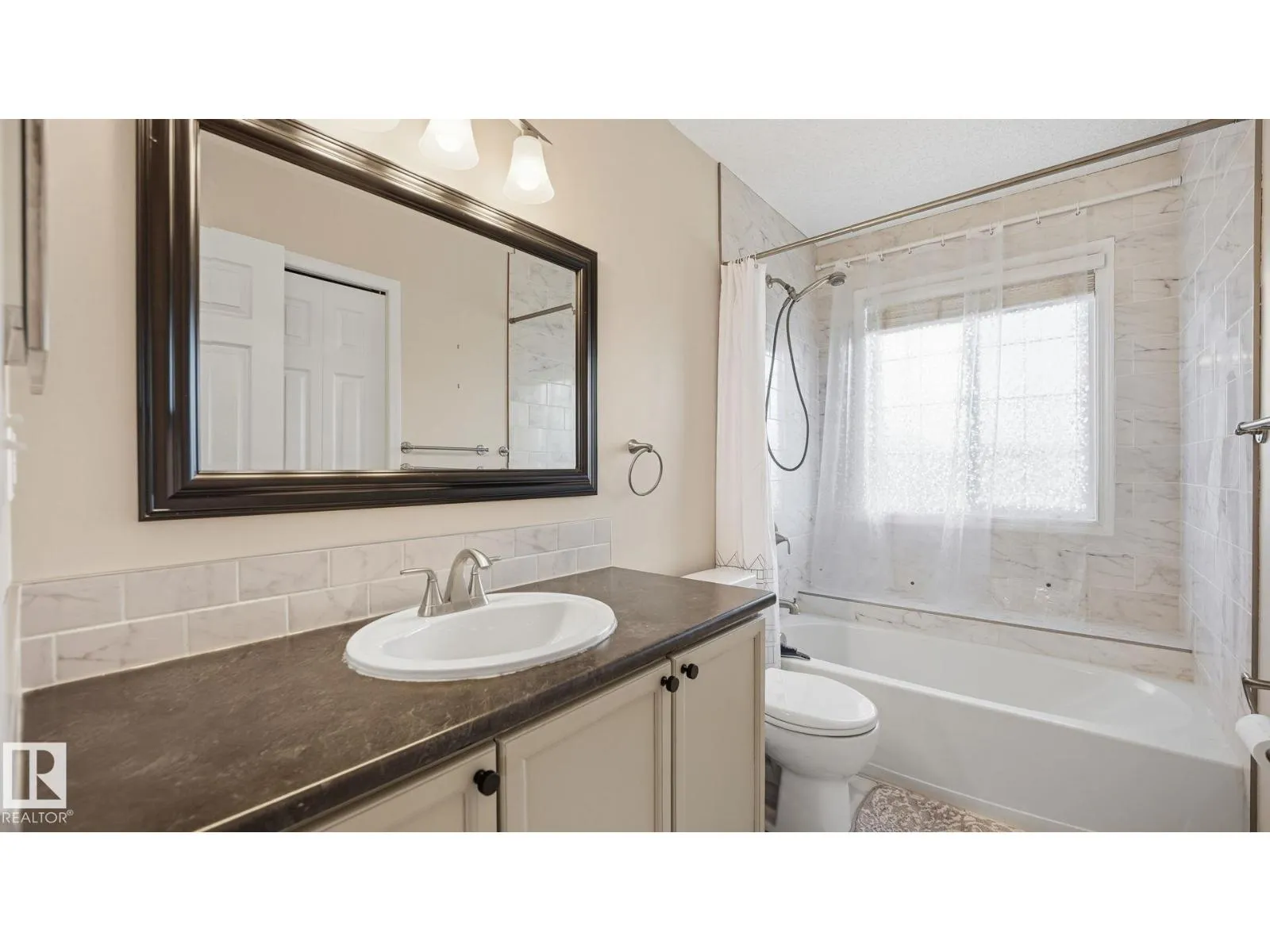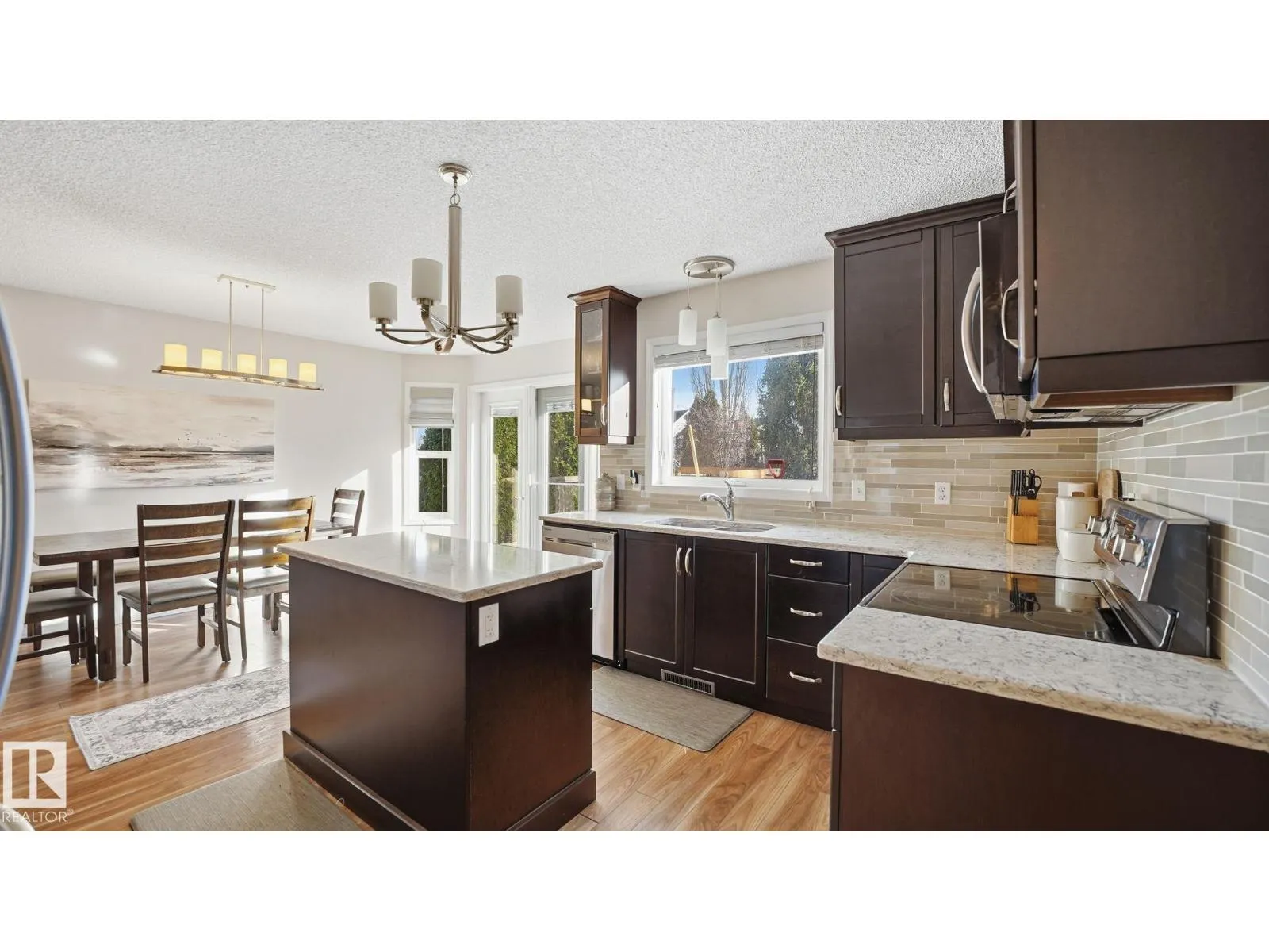 Beautifully maintained in the heart of family-friendly Lakewood! A welcoming foyer w/towering ceilings & soaring vaults sets the tone for this bright, inviting home flooded w/natural light from windows on all sides. The main floor, perfect for everyday living has a spacious living room w/wood-burning fireplace, plus a fully renovated kitchen w/real wood floor/ceiling cabinetry, quartz countertops, undermount sink, SS appliances, center island & a picture window overlooking the backyard. A cozy dinette w/garden doors leads to the cedar deck, ideal for family BBQs. Main level also has durable laminate flring, a 2pc bath & laundry. Upstairs features spacious bedrooms w/no carpet, a 4pc bath & a king-sized primary suite w/4pc ensuite. The fully finished basement adds even more space w/brand new carpet, fresh paint, a rec room, 3pc bath & 4th bedroom. Enjoy the oversized garage, newer shingles, hot water tank (2024), mature trees, hot tub & private yard w/playground, trail system & shopping all nearby (id:27476)