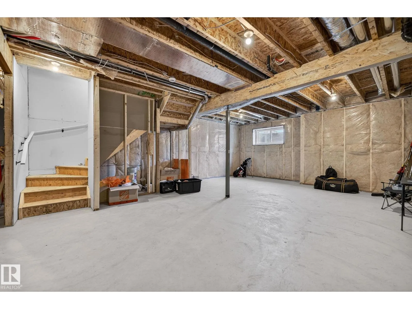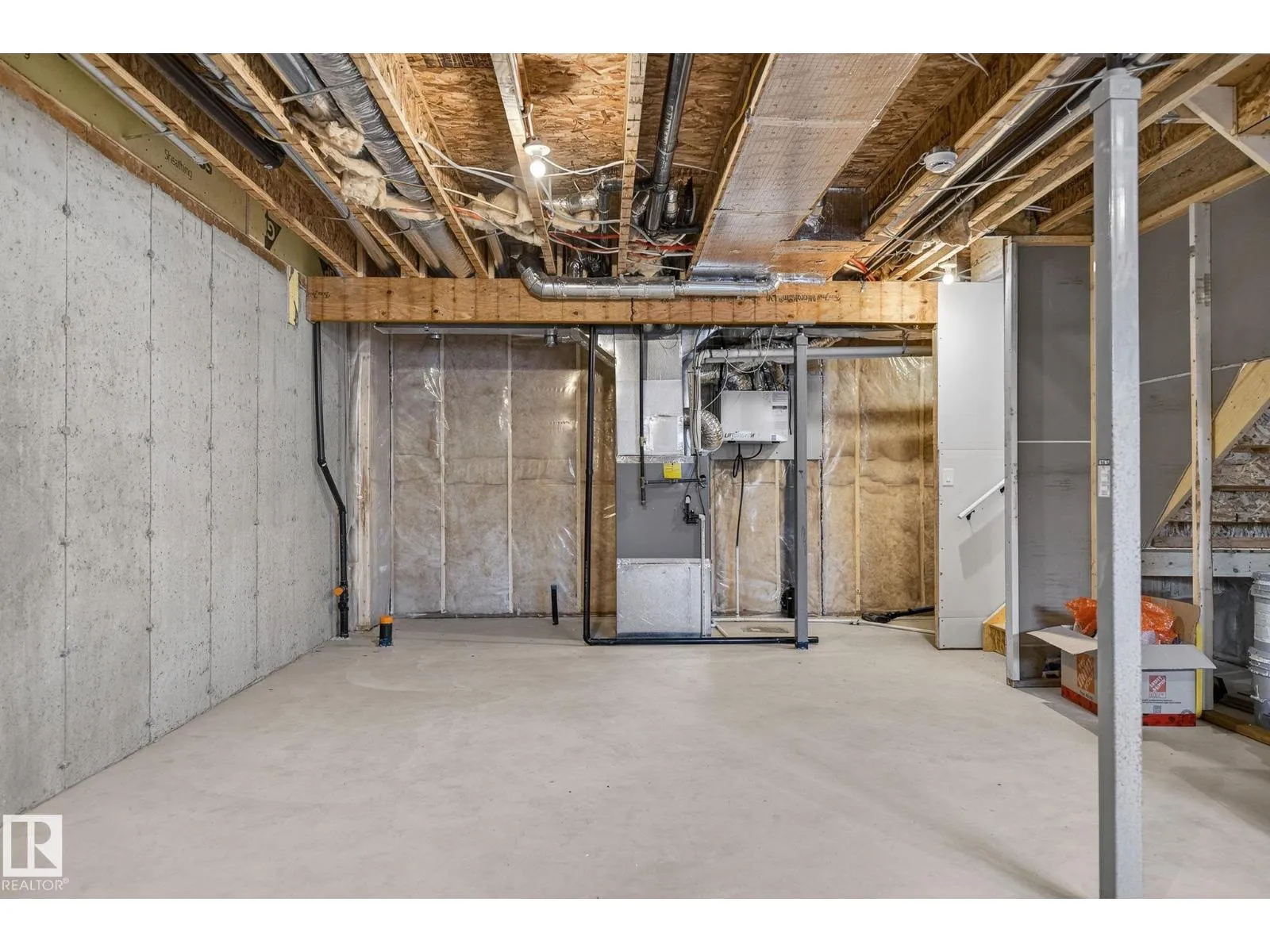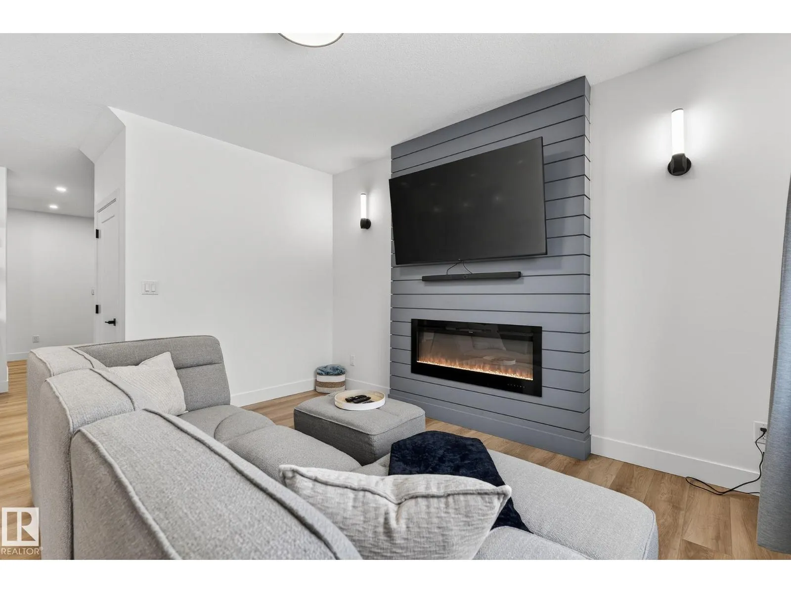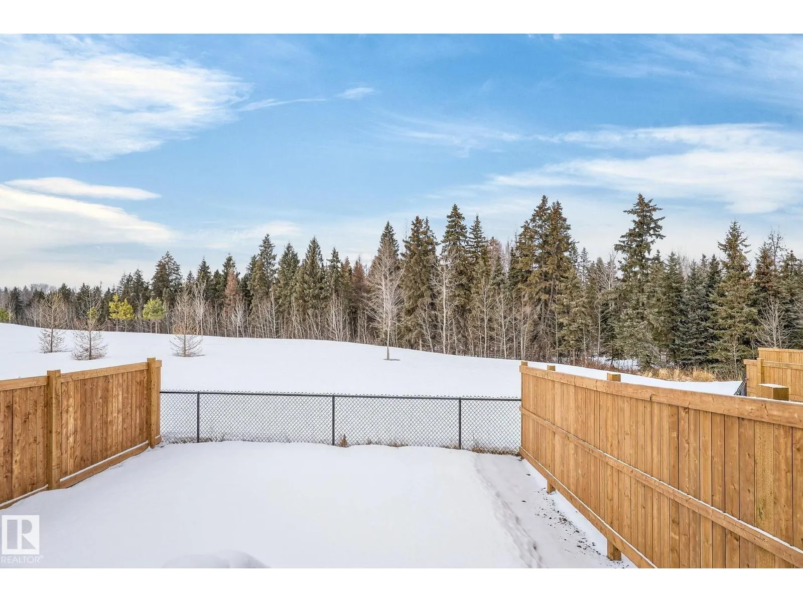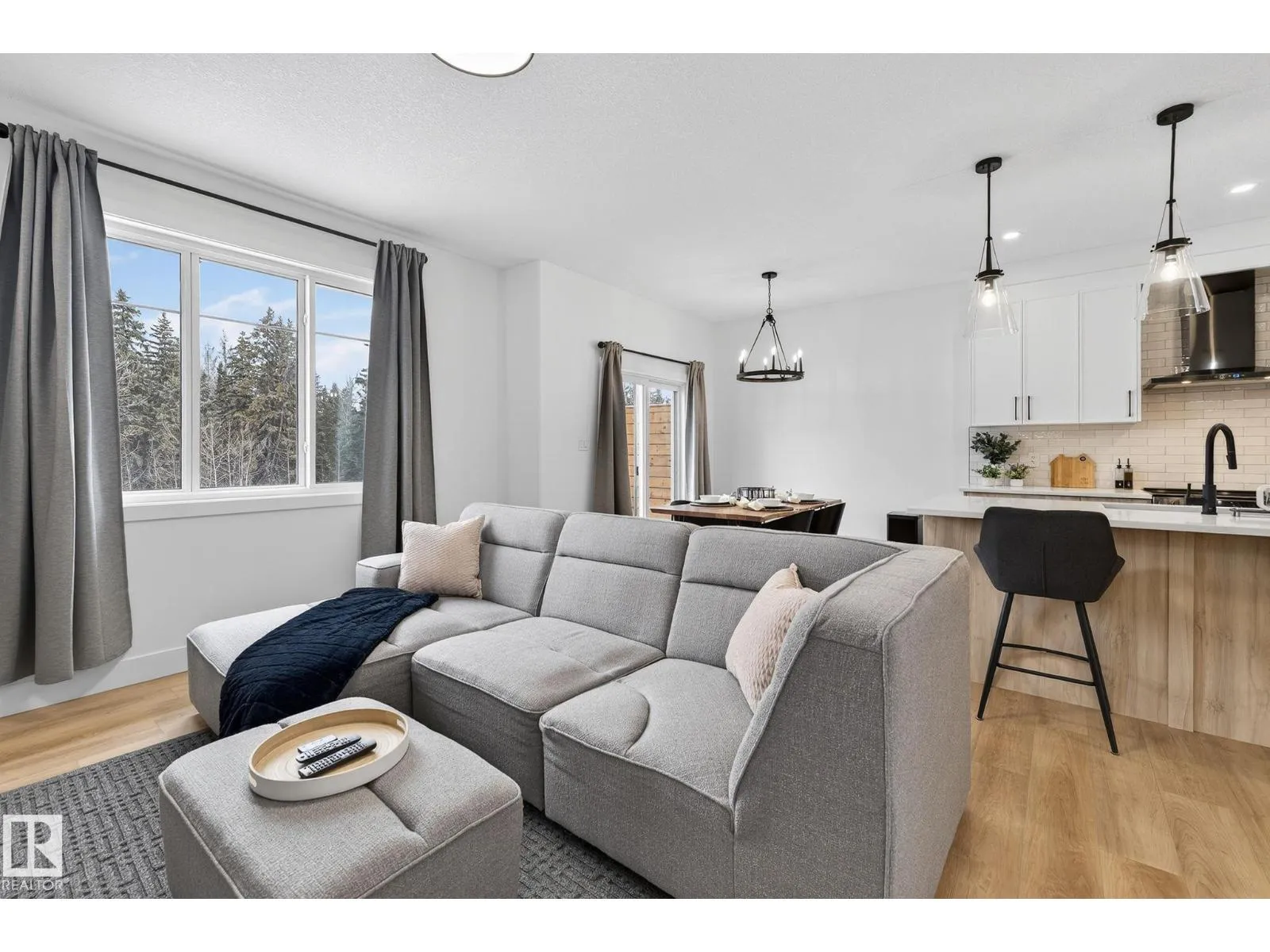 Welcome to this beautiful half duplex in Harvest Ridge, perfectly positioned backing onto mature trees. The main floor is thoughtfully designed with a bright, open-concept filled with natural light, which makes an immediate impression with its modern floor-to-ceiling feature wall and sleek electric fireplace. The kitchen is beautifully appointed with quartz countertops, soft-close cabinetry, and a walk-through pantry. Upstairs, a spacious bonus room offers flexible living space, while the primary suite offers a 4-piece ensuite and a generous walk-in closet that conveniently connects to the laundry room. Two additional bedrooms and a second 4-piece bath complete this level. Thoughtfully designed with MDF shelving throughout every closet, pantry, and mudroom, plus upgrades like a garage drain and BBQ gas line, blending style with function. A fully fenced backyard and an unfinished basement with a side entrance offer incredible future potential. This home is move-in ready and beautifully finished! (id:27476)