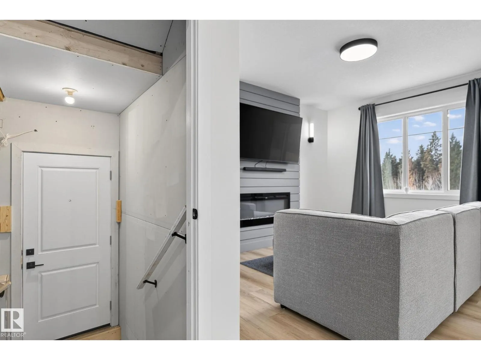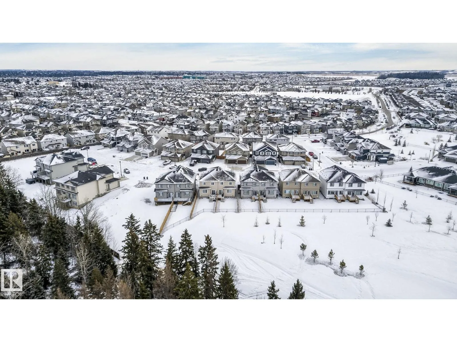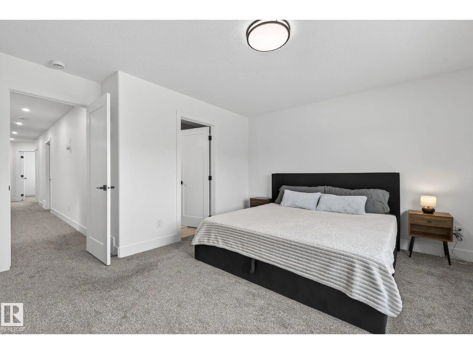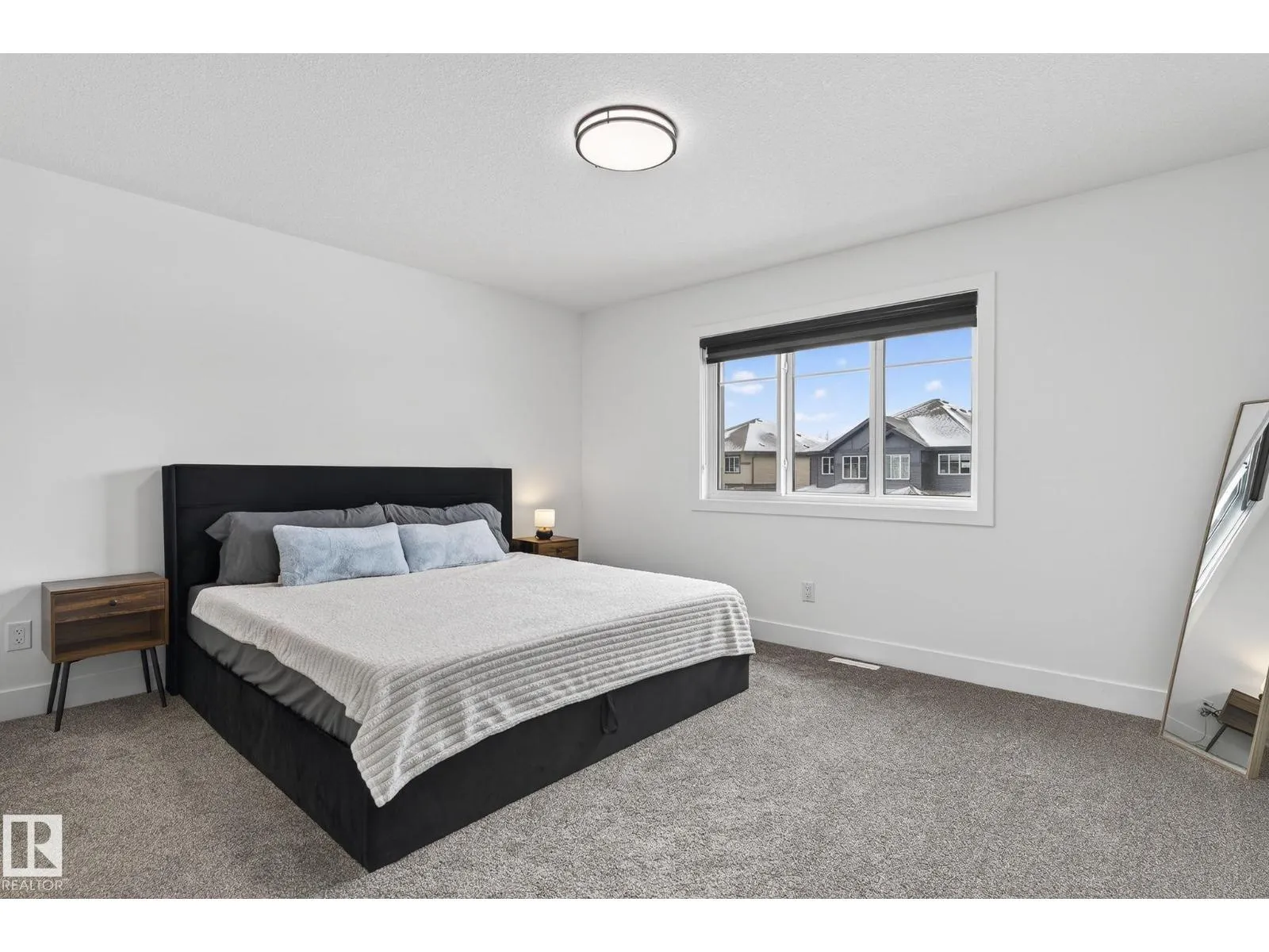 Welcome to this beautiful half duplex in Harvest Ridge, perfectly positioned backing onto mature trees. The main floor is thoughtfully designed with a bright, open-concept filled with natural light, which makes an immediate impression with its modern floor-to-ceiling feature wall and sleek electric fireplace. The kitchen is beautifully appointed with quartz countertops, soft-close cabinetry, and a walk-through pantry. Upstairs, a spacious bonus room offers flexible living space, while the primary suite offers a 4-piece ensuite and a generous walk-in closet that conveniently connects to the laundry room. Two additional bedrooms and a second 4-piece bath complete this level. Thoughtfully designed with MDF shelving throughout every closet, pantry, and mudroom, plus upgrades like a garage drain and BBQ gas line, blending style with function. A fully fenced backyard and an unfinished basement with a side entrance offer incredible future potential. This home is move-in ready and beautifully finished! (id:27476)