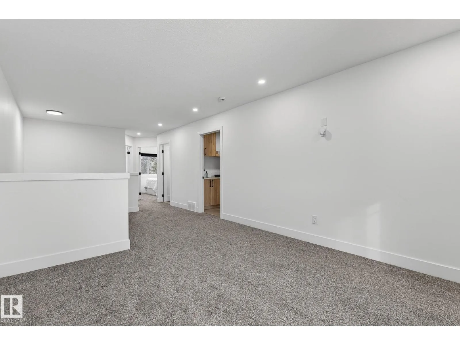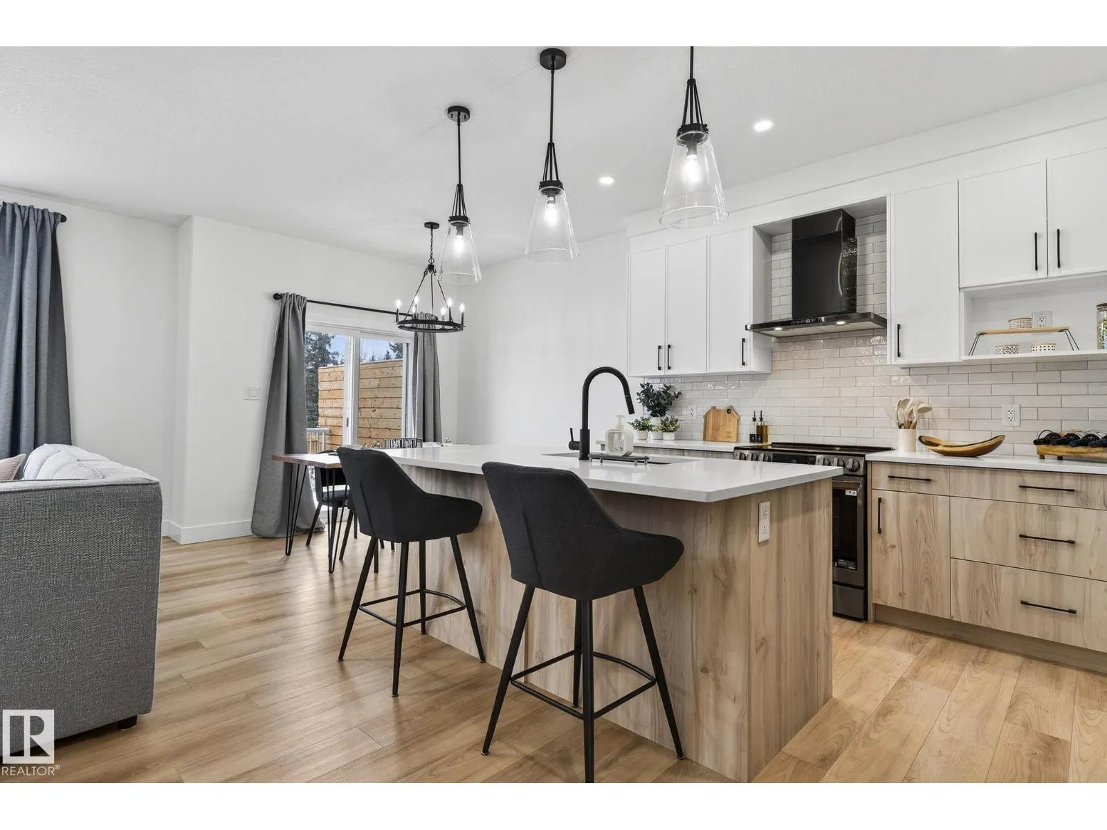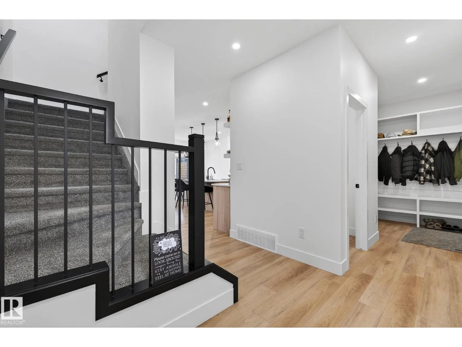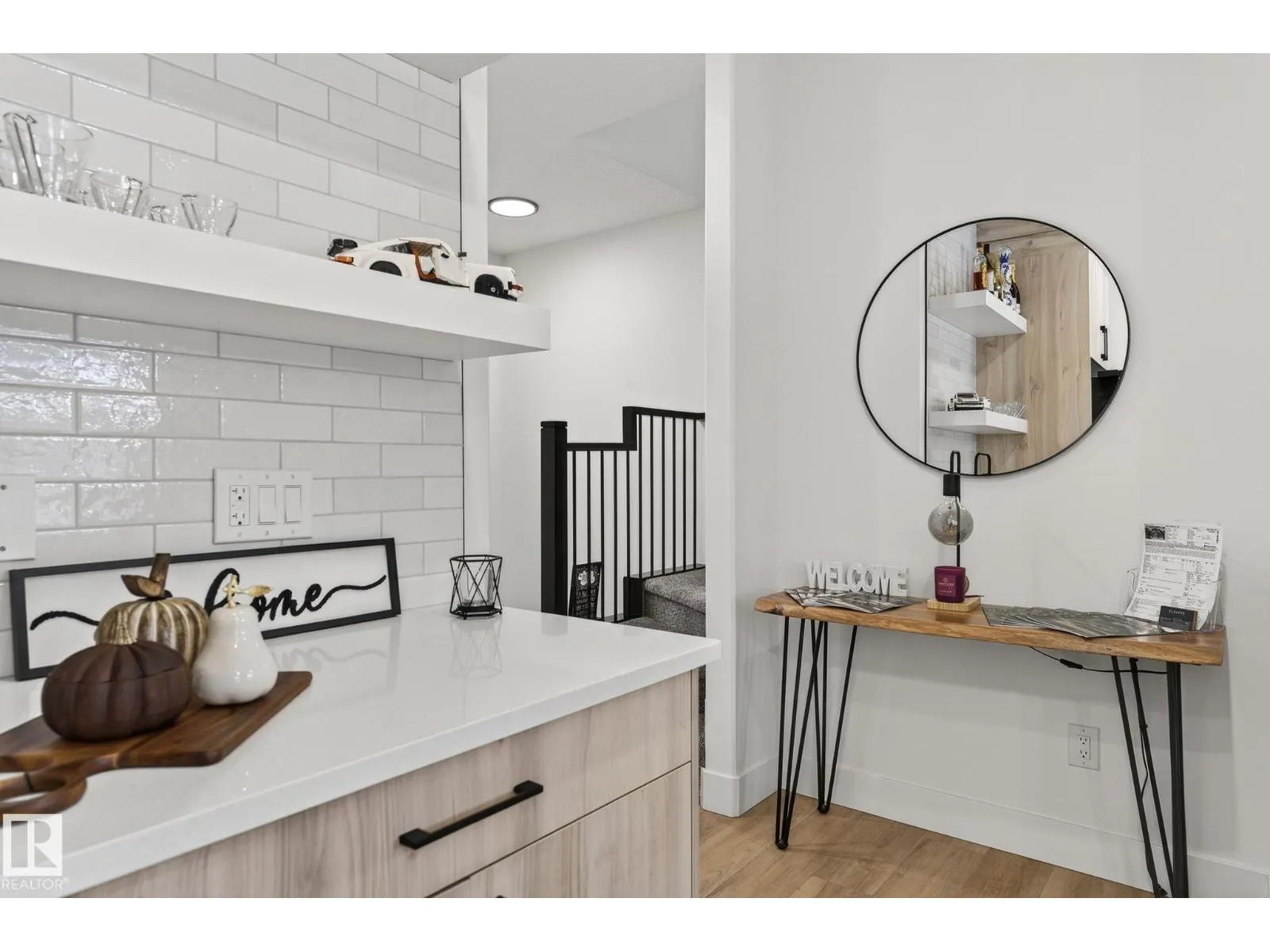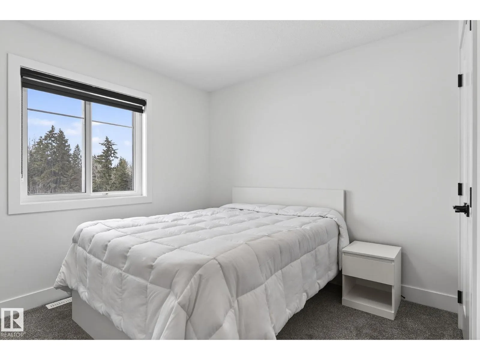 Welcome to this beautiful half duplex in Harvest Ridge, perfectly positioned backing onto mature trees. The main floor is thoughtfully designed with a bright, open-concept filled with natural light, which makes an immediate impression with its modern floor-to-ceiling feature wall and sleek electric fireplace. The kitchen is beautifully appointed with quartz countertops, soft-close cabinetry, and a walk-through pantry. Upstairs, a spacious bonus room offers flexible living space, while the primary suite offers a 4-piece ensuite and a generous walk-in closet that conveniently connects to the laundry room. Two additional bedrooms and a second 4-piece bath complete this level. Thoughtfully designed with MDF shelving throughout every closet, pantry, and mudroom, plus upgrades like a garage drain and BBQ gas line, blending style with function. A fully fenced backyard and an unfinished basement with a side entrance offer incredible future potential. This home is move-in ready and beautifully finished! (id:27476)
